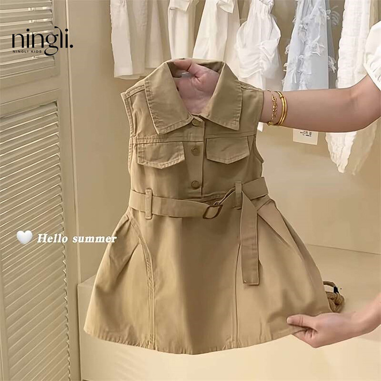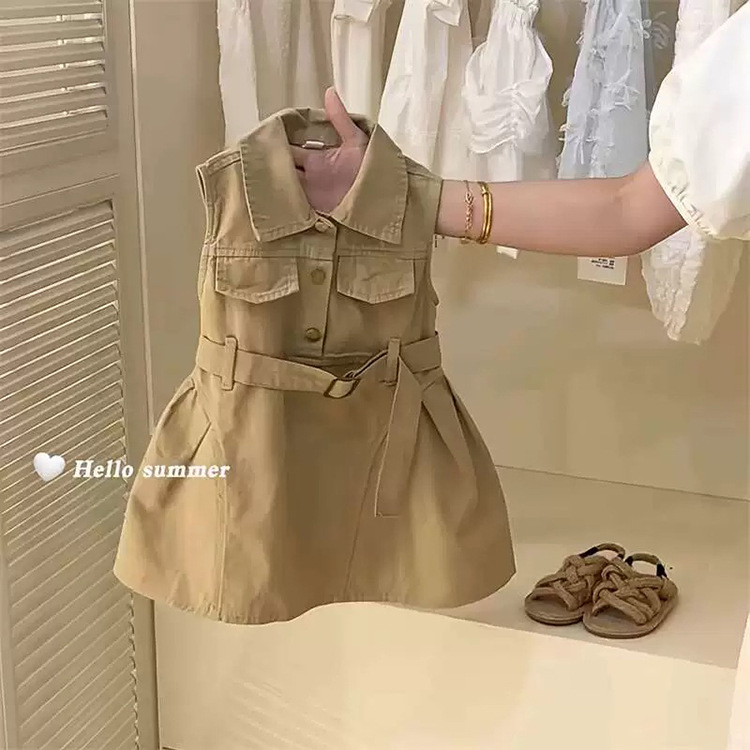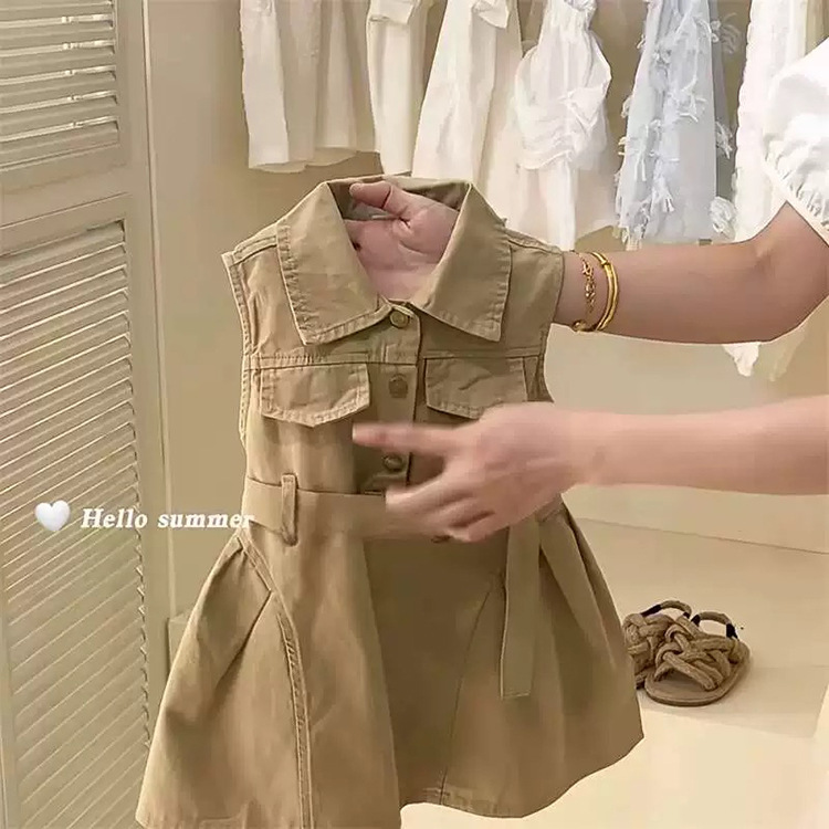 한국식 아동복 여름 새 여아 민소매 원피스 어린이 아기 패션 디자인 센스 툴링 빈 원피스 트렌디