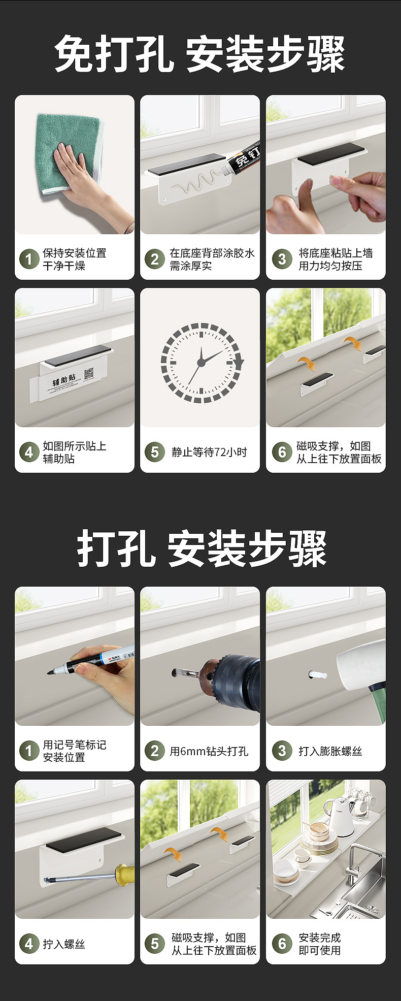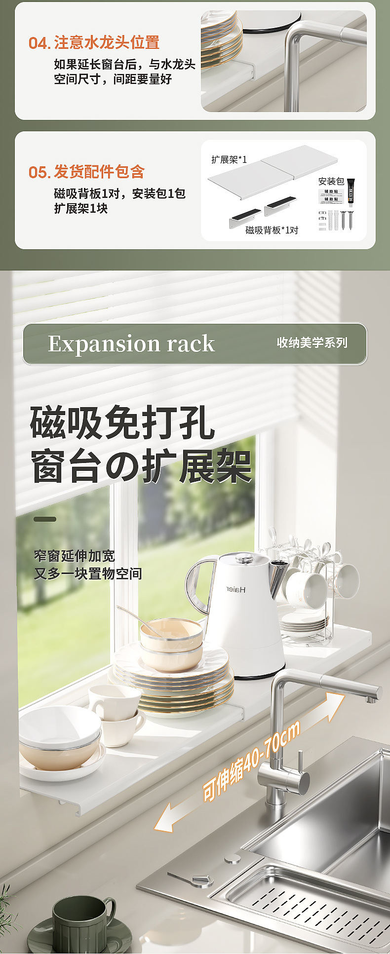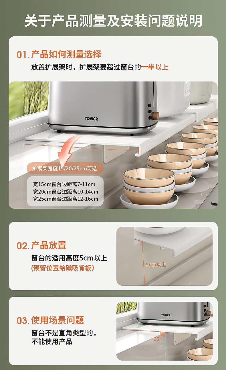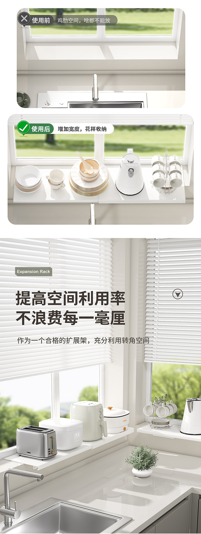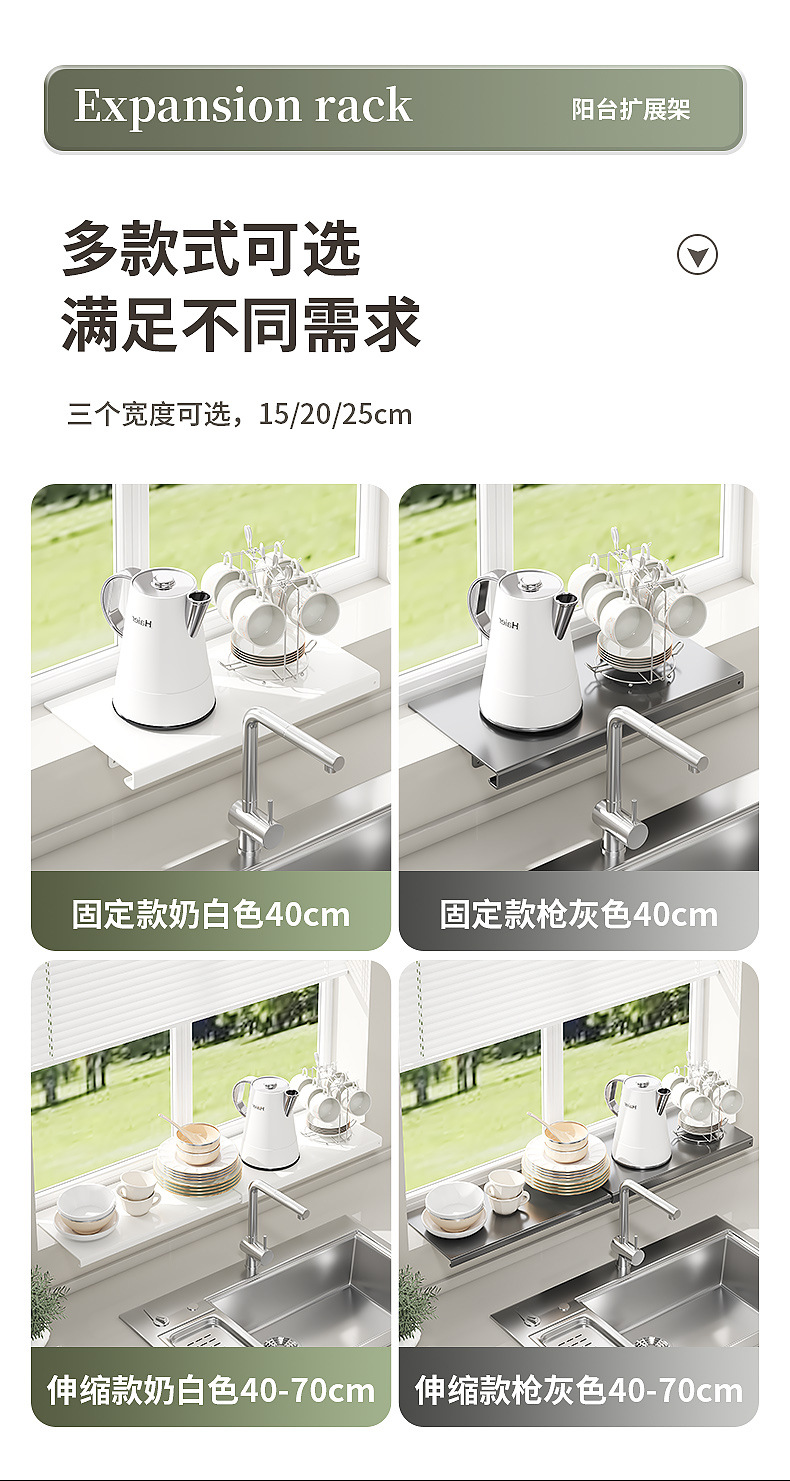 厨房置物架窗台延伸板台面加宽延长板置物架免打孔窗台延长神器