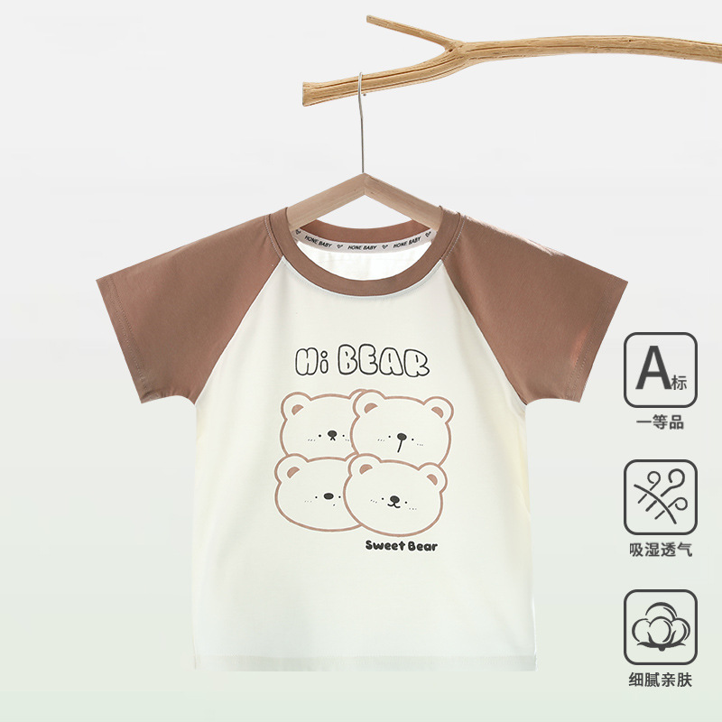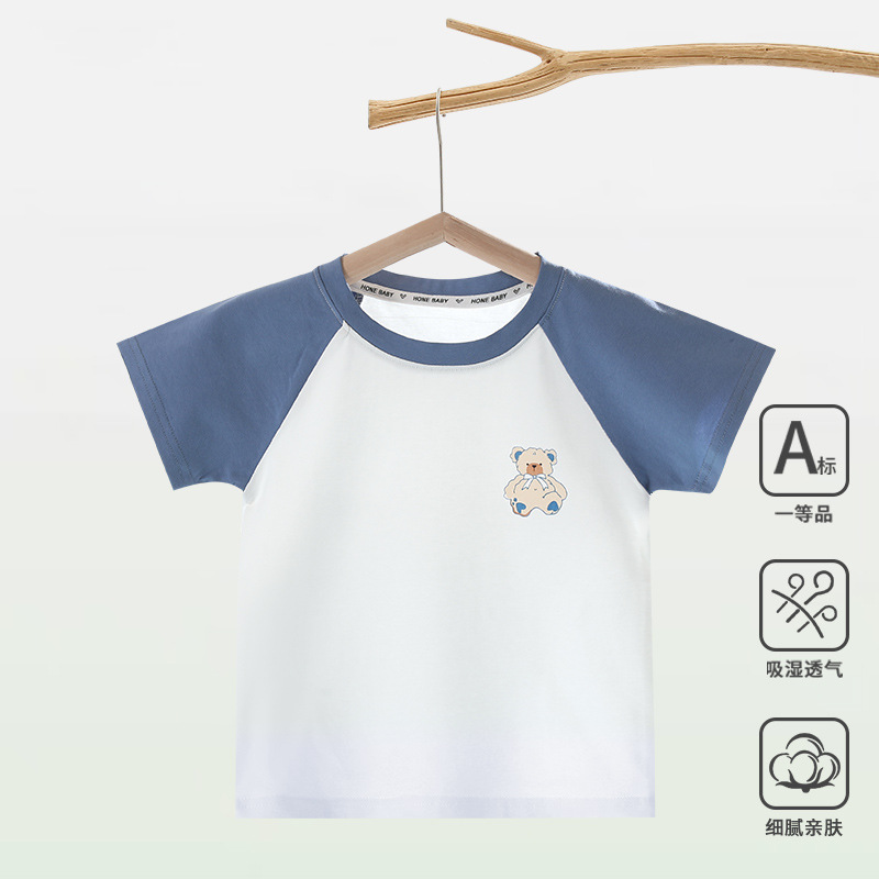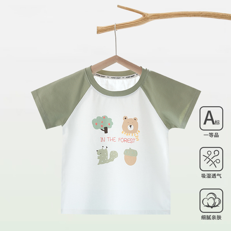 아기 반팔 티셔츠 소년 아기 반팔 탑 어린이 아이스 산소면 옷 여름 아동 의류 반팔 탑
