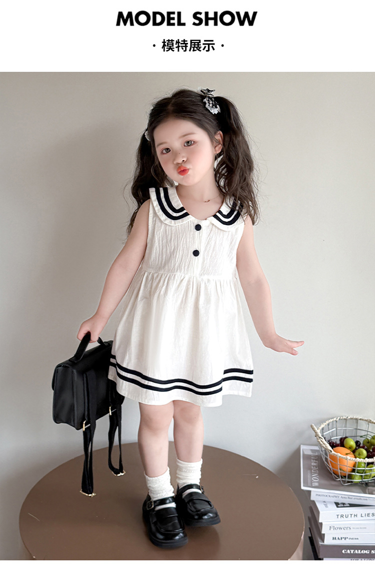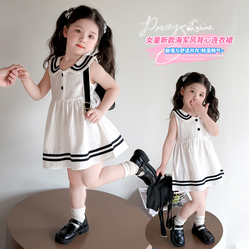 여자 드레스 2025 새로운 여름 드레스 어린이 대학 스타일 스커트 아기 소녀 민소매 공주 드레스 유행스토어 가기