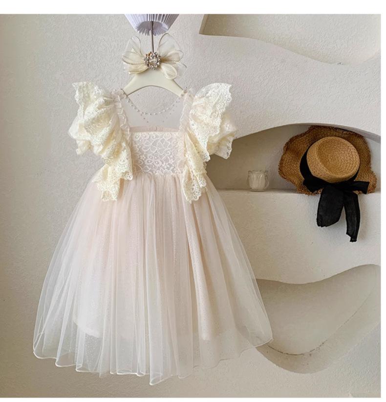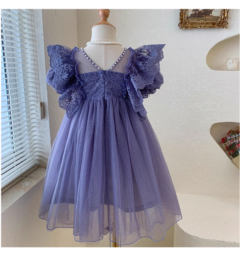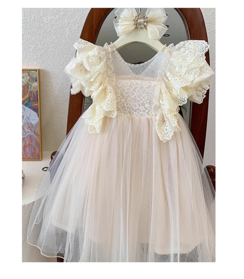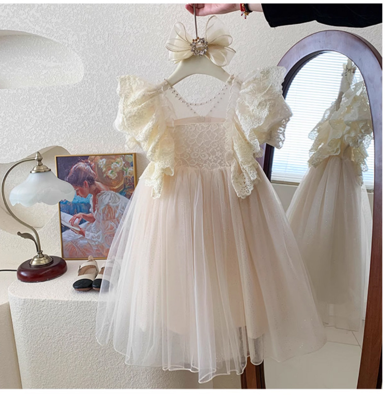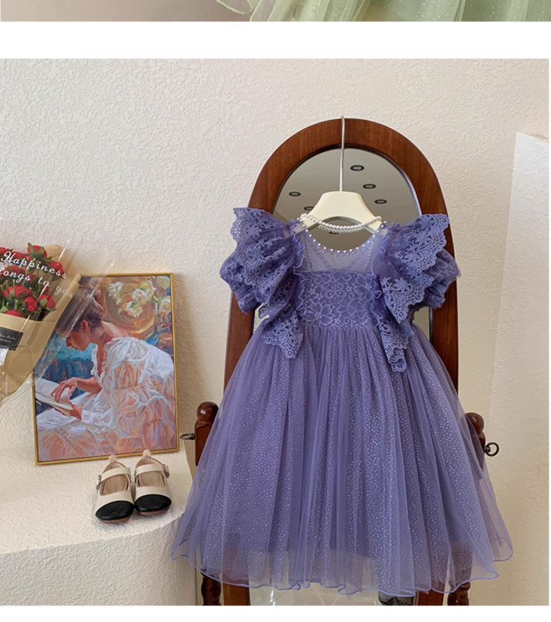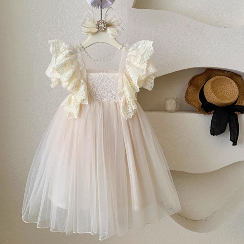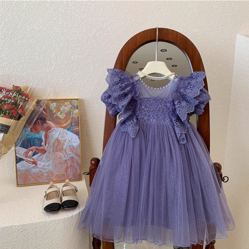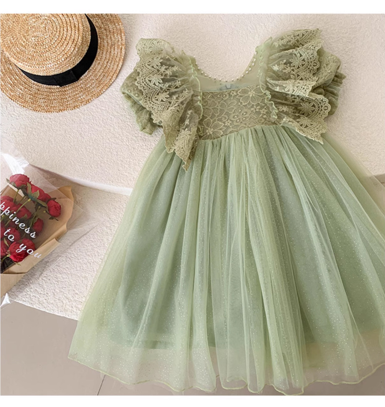 한국 소녀 드레스 여름 어린 소녀 녹색 메쉬 요정 드레스 아기 유행 레이스 푹신한 공주 드레스
