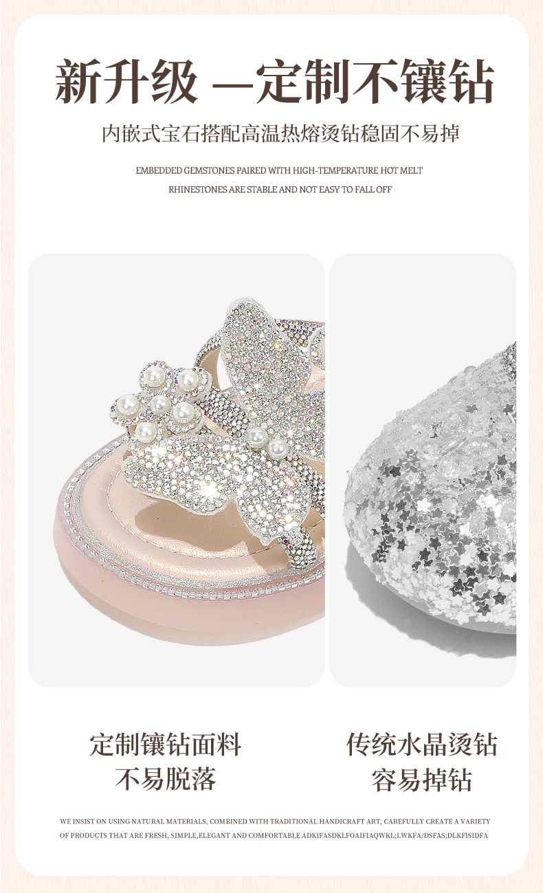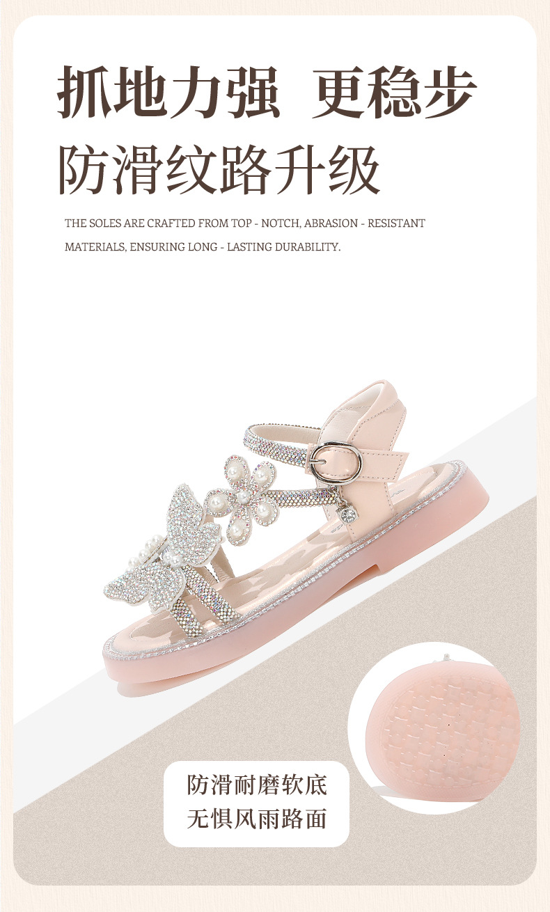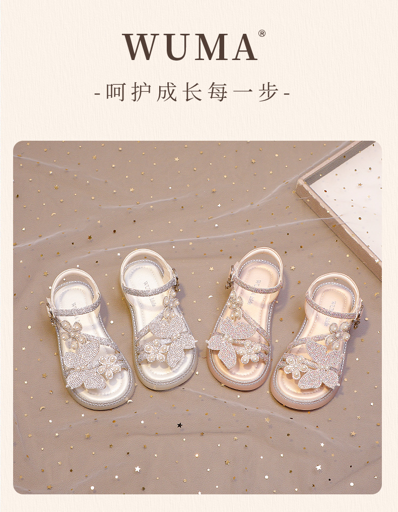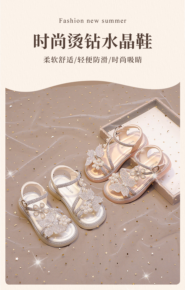 마우마 소녀 샌들 어린이 신발 2025 새로운 여름 작은 소녀 진주 나비 오픈 발가락 크리스탈 공주 신발스토어 가기