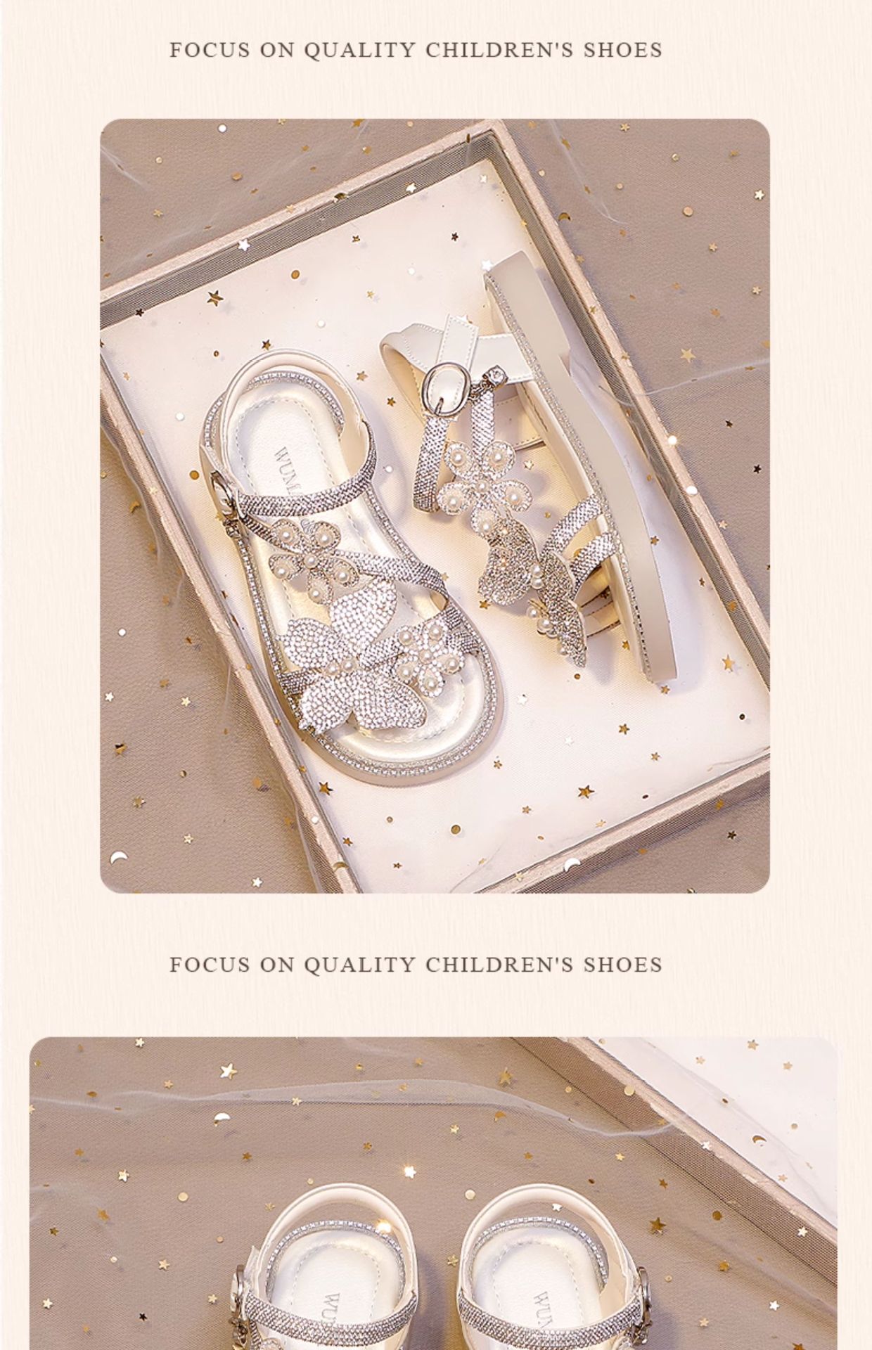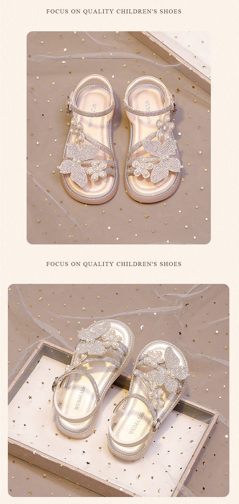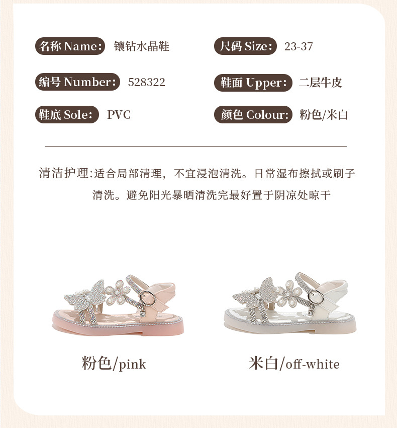 마우마 소녀 샌들 어린이 신발 2025 새로운 여름 작은 소녀 진주 나비 오픈 발가락 크리스탈 공주 신발스토어 가기