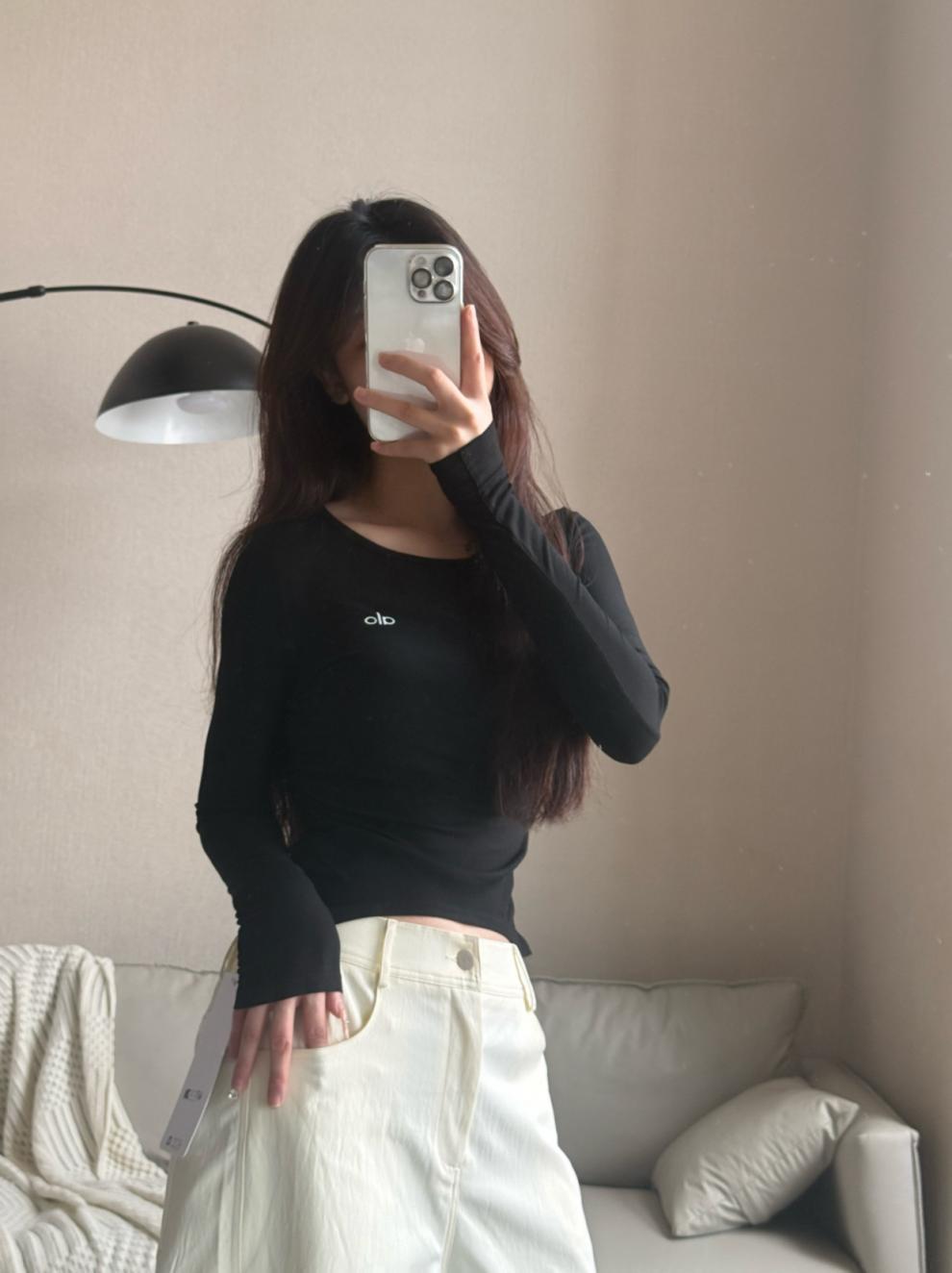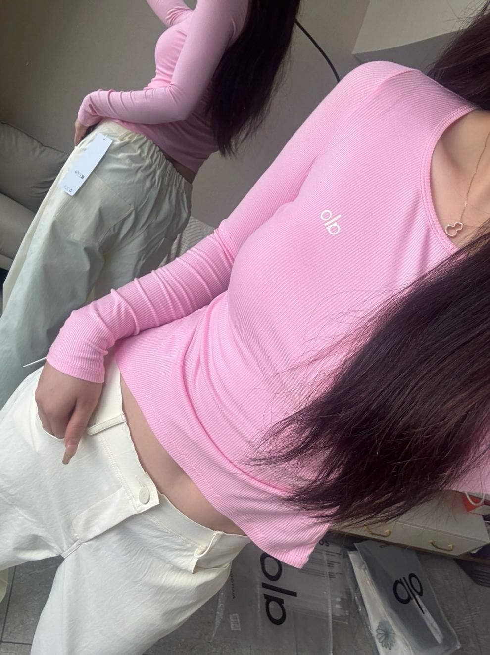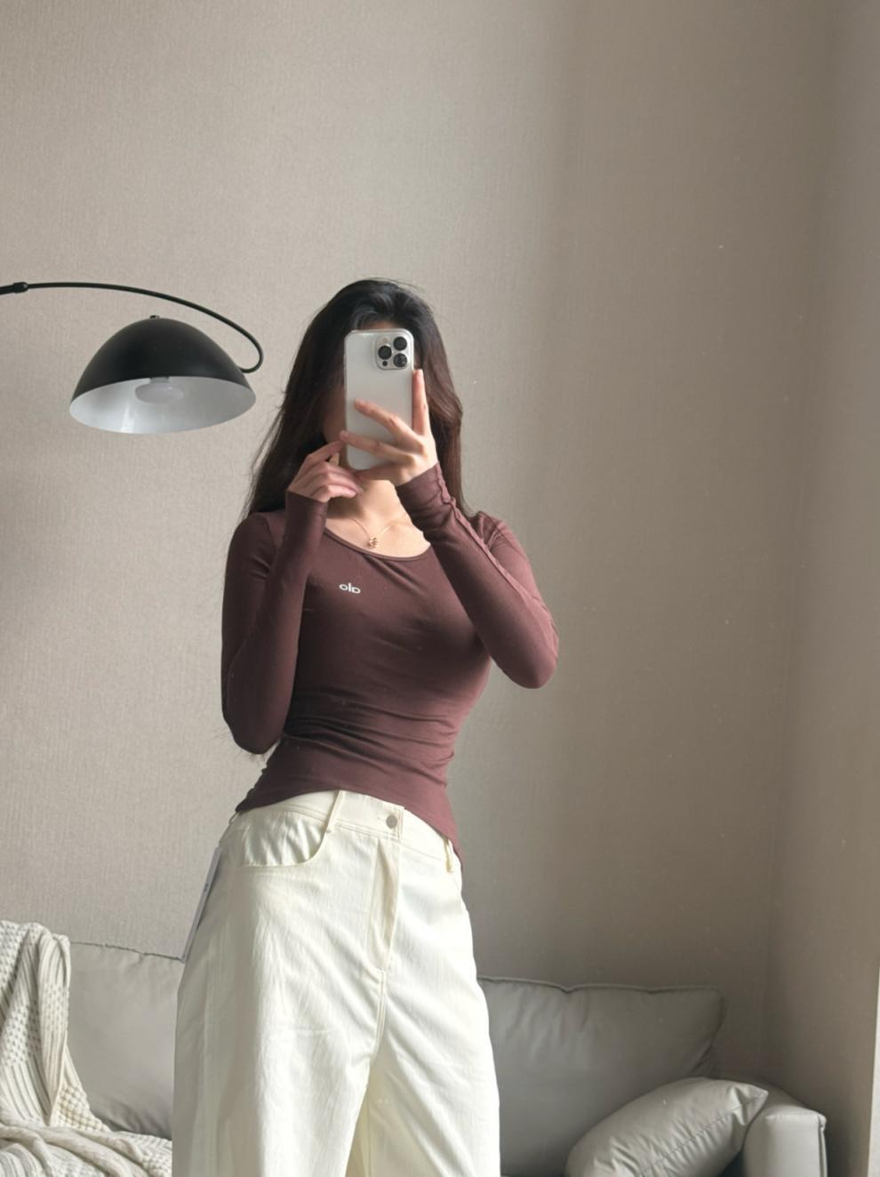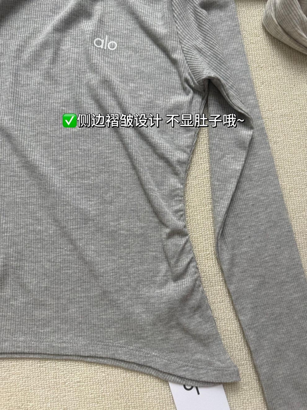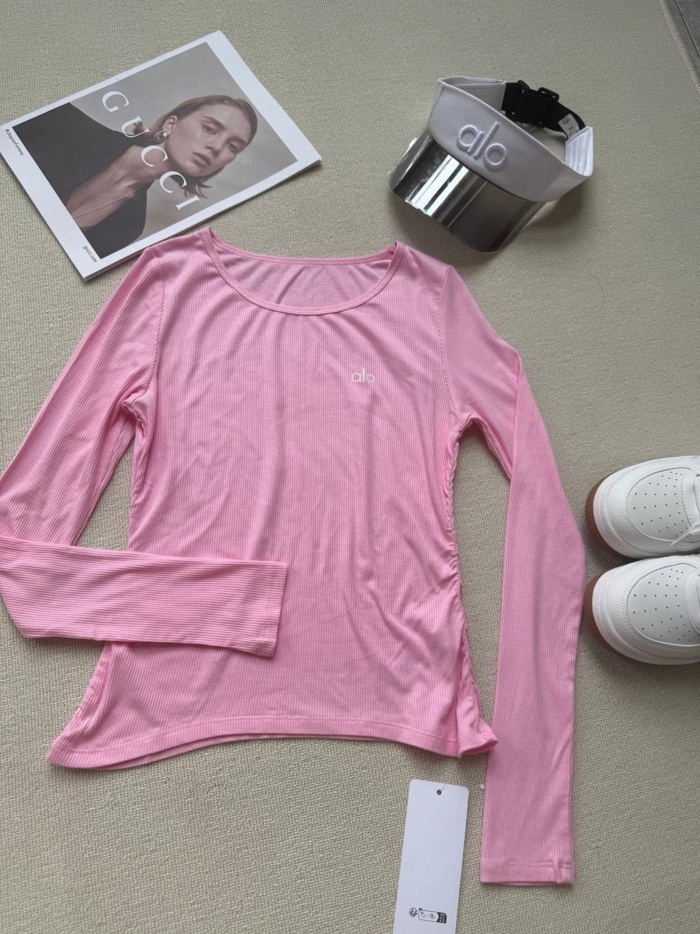 Alo 요가 의류 요가 가을과 겨울 벌거 벗은 갈비뼈 플리츠 슬림 핏 크루 넥 스포츠 여성 피트니스 스포츠 긴 소매 탑스토어 가기