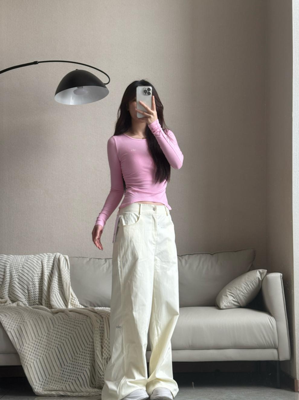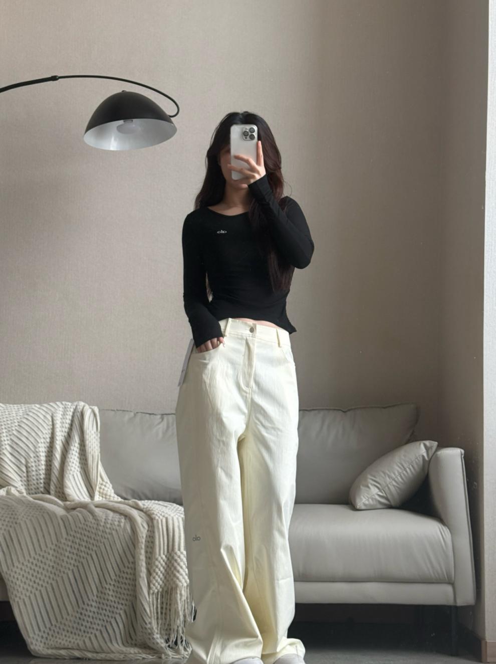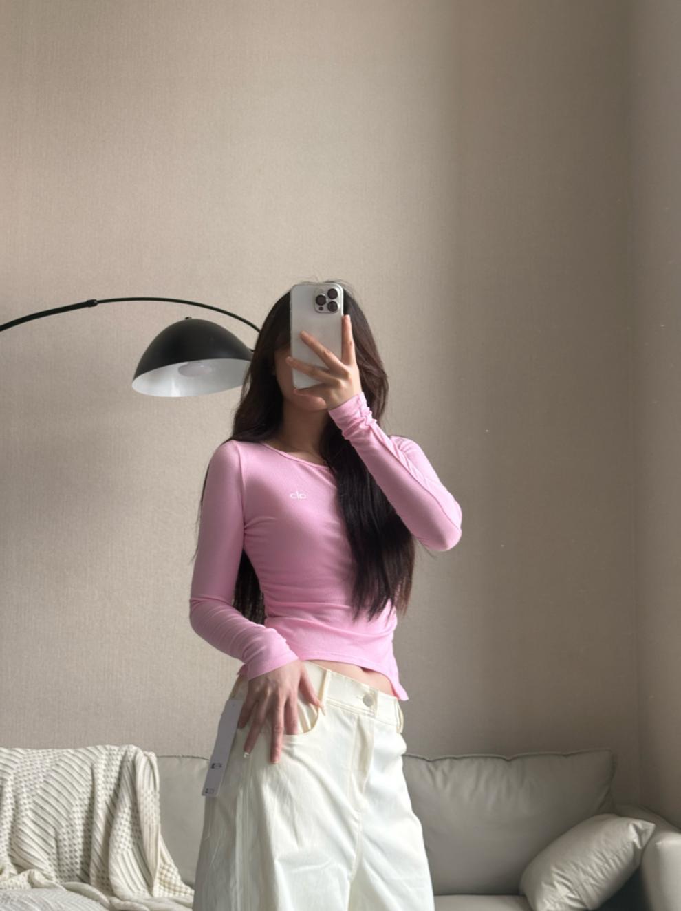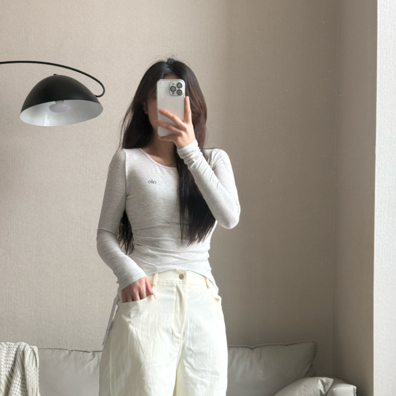 Alo 요가 의류 요가 가을과 겨울 벌거 벗은 갈비뼈 플리츠 슬림 핏 크루 넥 스포츠 여성 피트니스 스포츠 긴 소매 탑스토어 가기