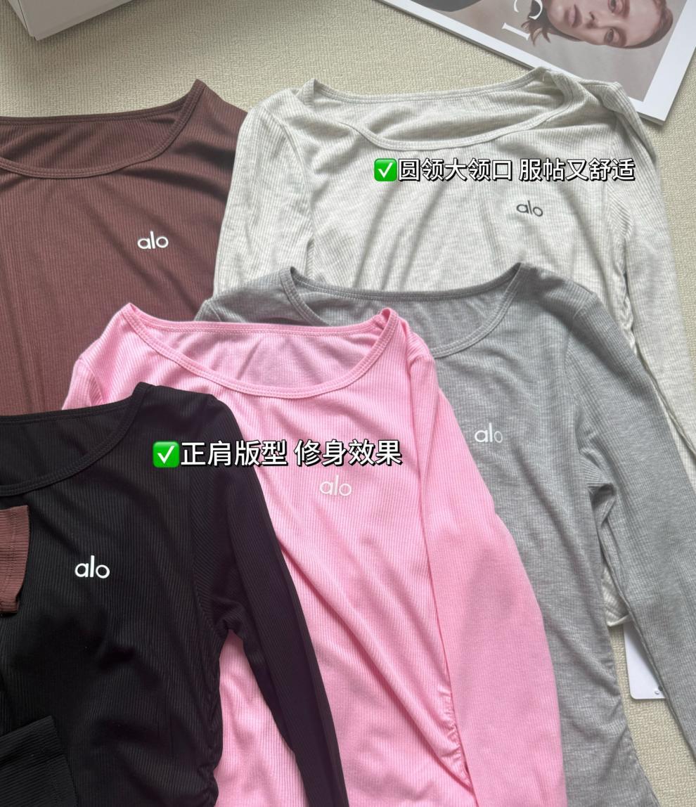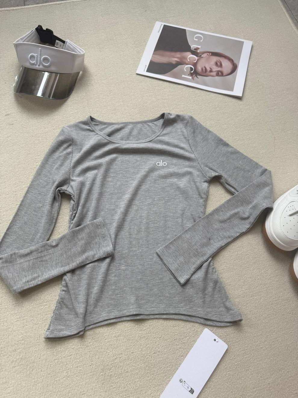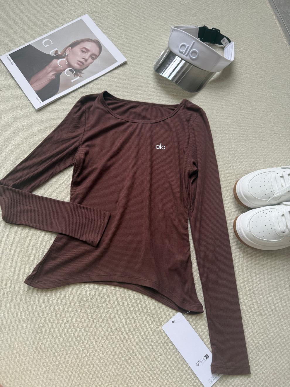 Alo 요가 의류 요가 가을과 겨울 벌거 벗은 갈비뼈 플리츠 슬림 핏 크루 넥 스포츠 여성 피트니스 스포츠 긴 소매 탑