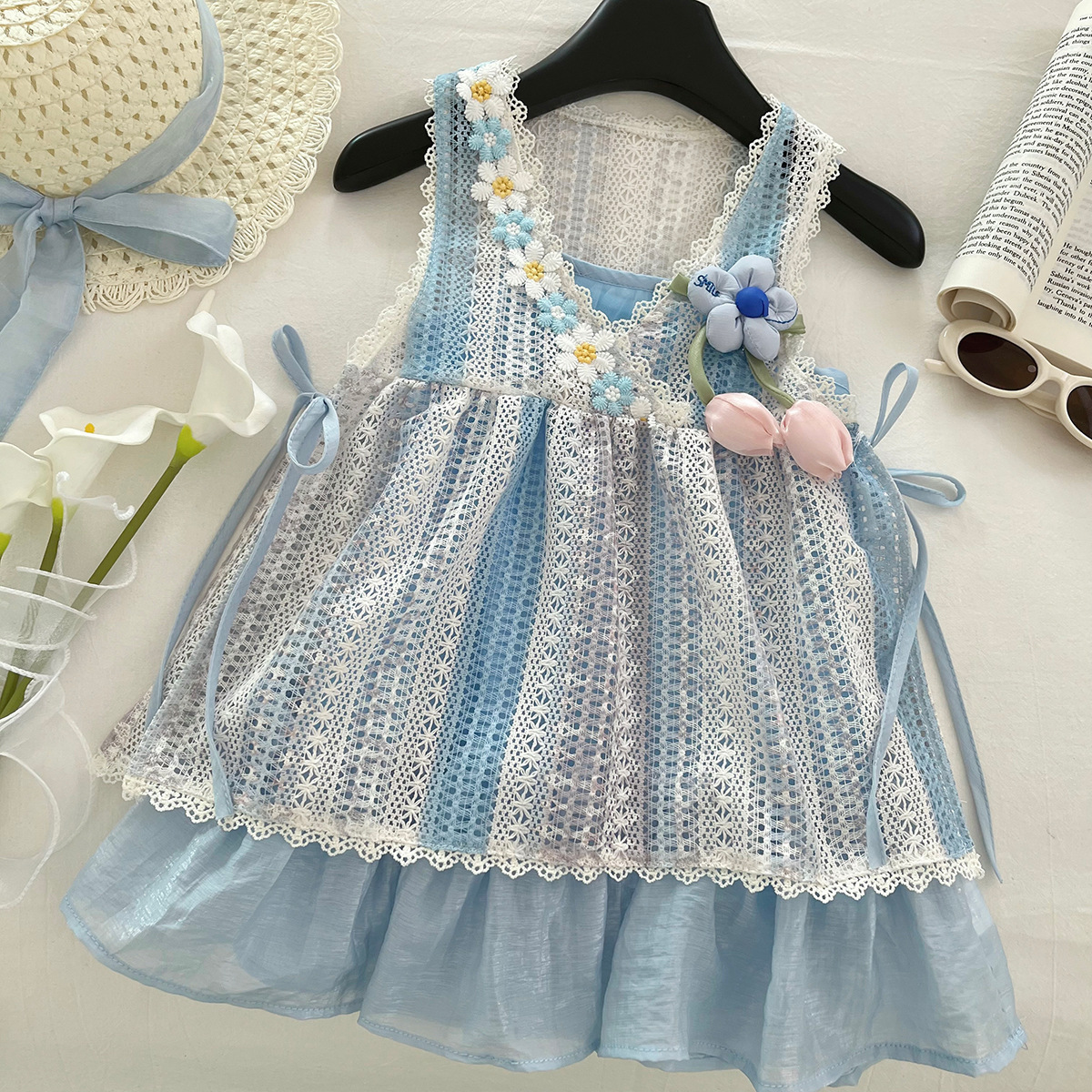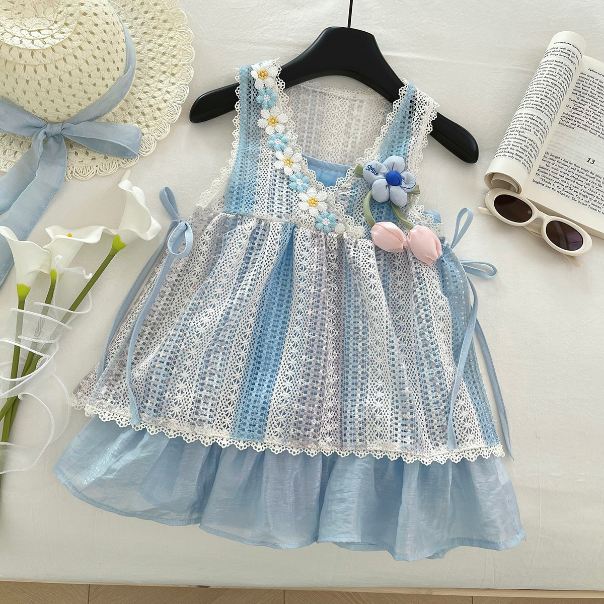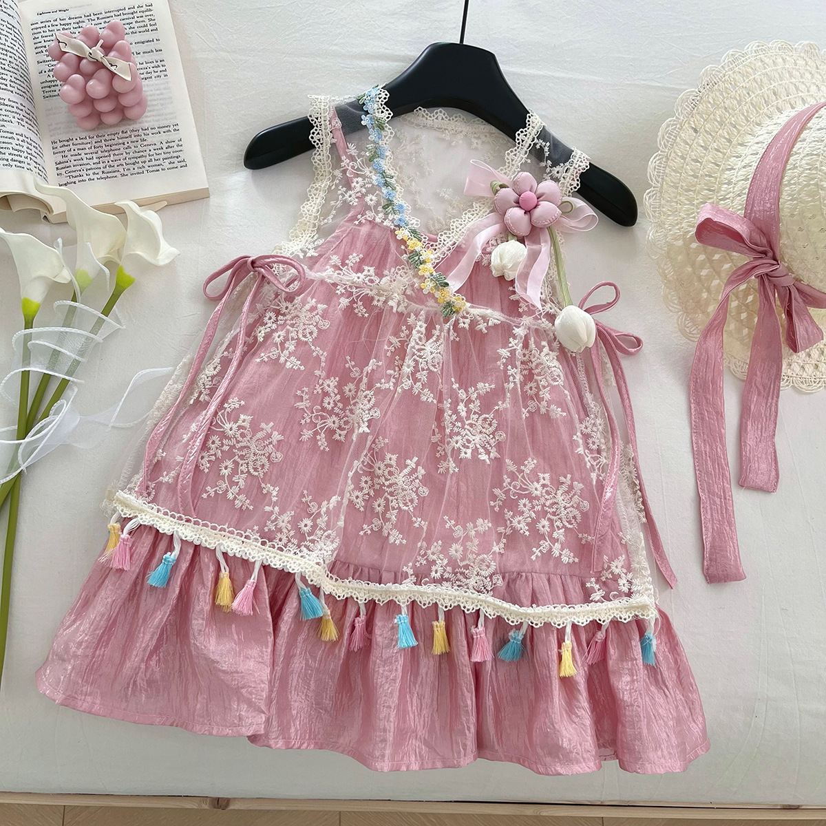 2025 여름 새 스타일 서스펜더 스커트 소녀 다목적 비치 스커트 어린이 여름 드레스 소녀 드레스 유행