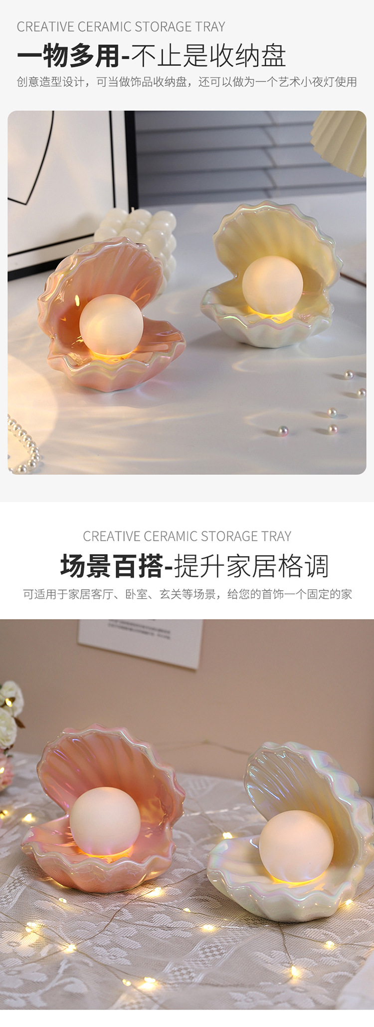 창의적인 조개 모양 야간 조명 데스크탑 발광 장식품 침실 침대 옆 수면등 화장대 귀걸이 보석 보관함