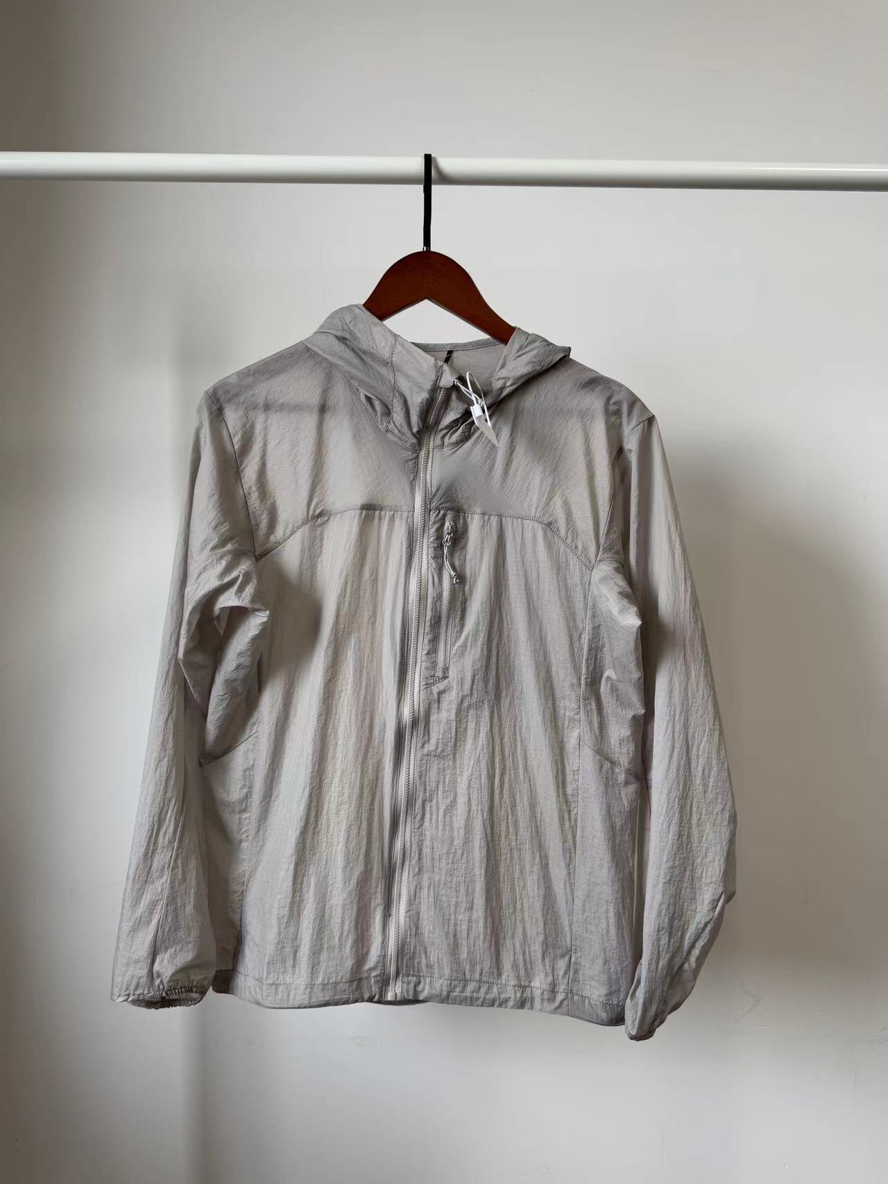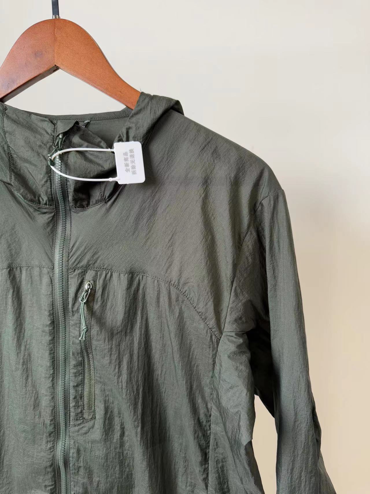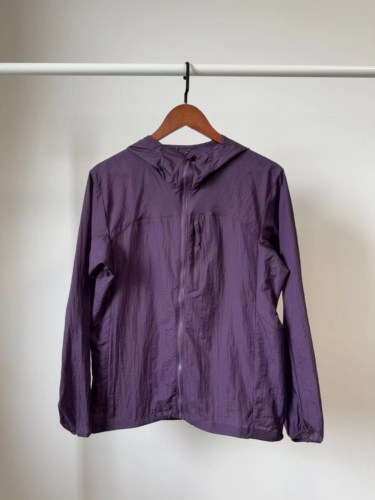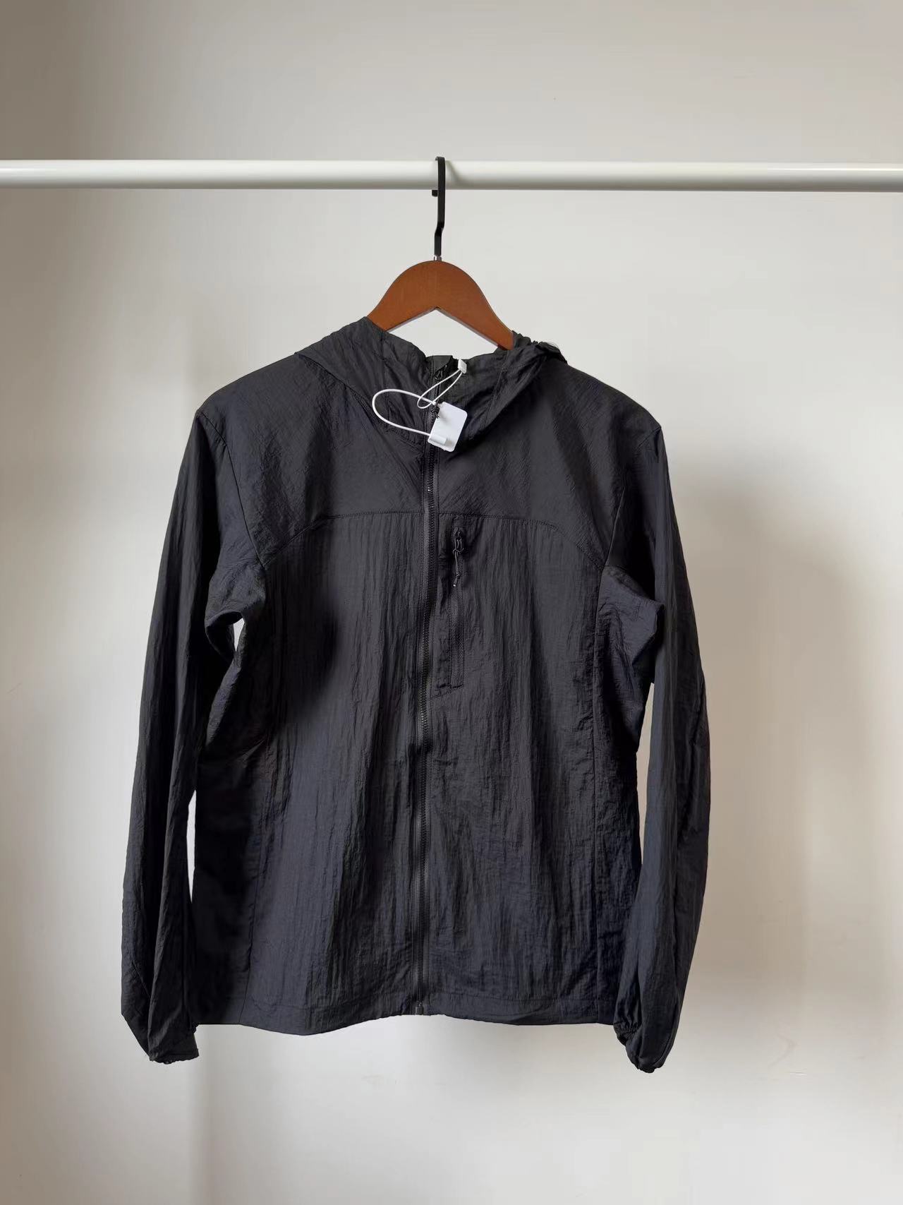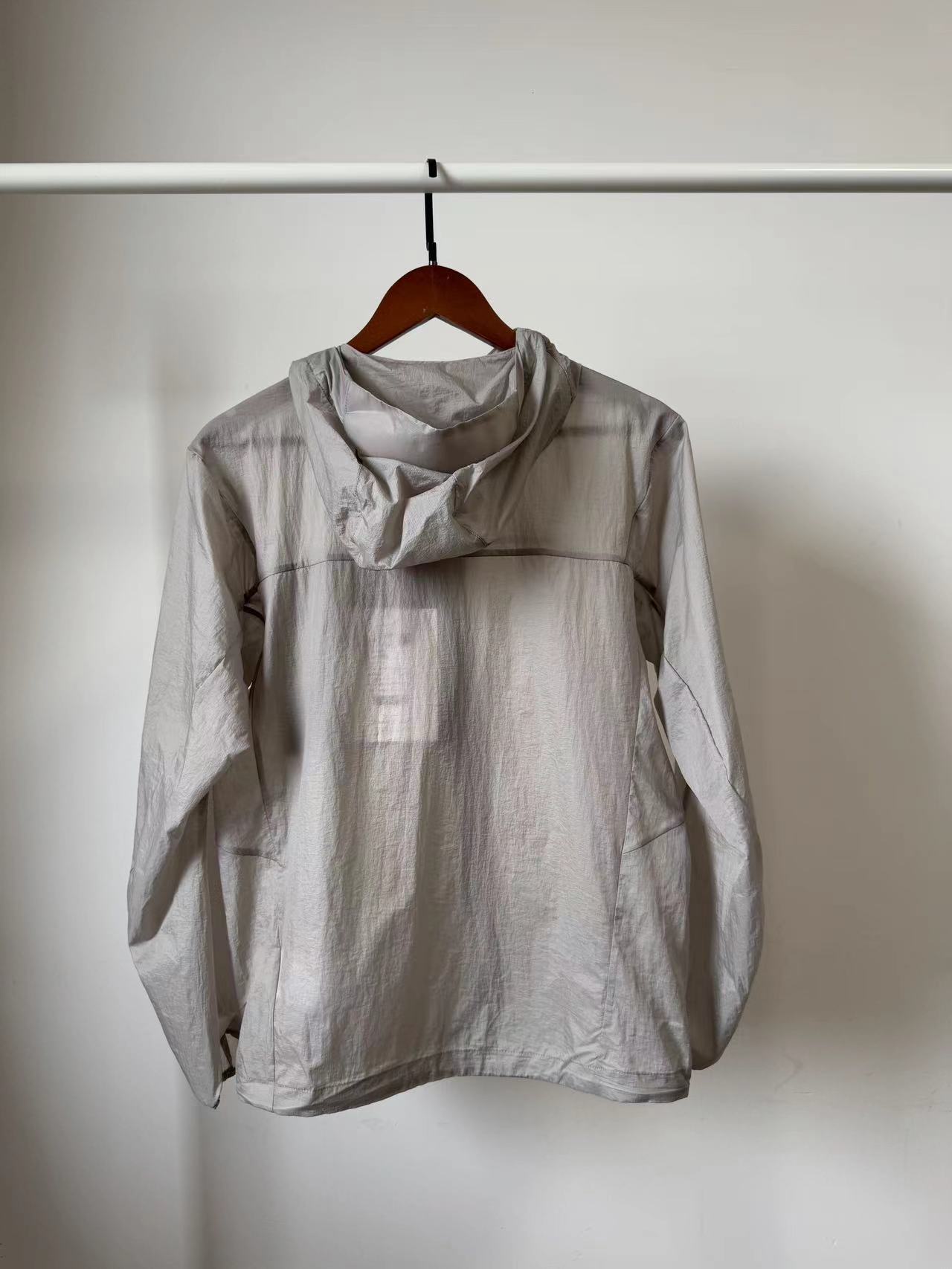 轻薄具有的结构:可调节兜帽、拉链、下摆双侧调节扣,可收纳于自身胸袋,因此可轻松放入背包或挂在带上。