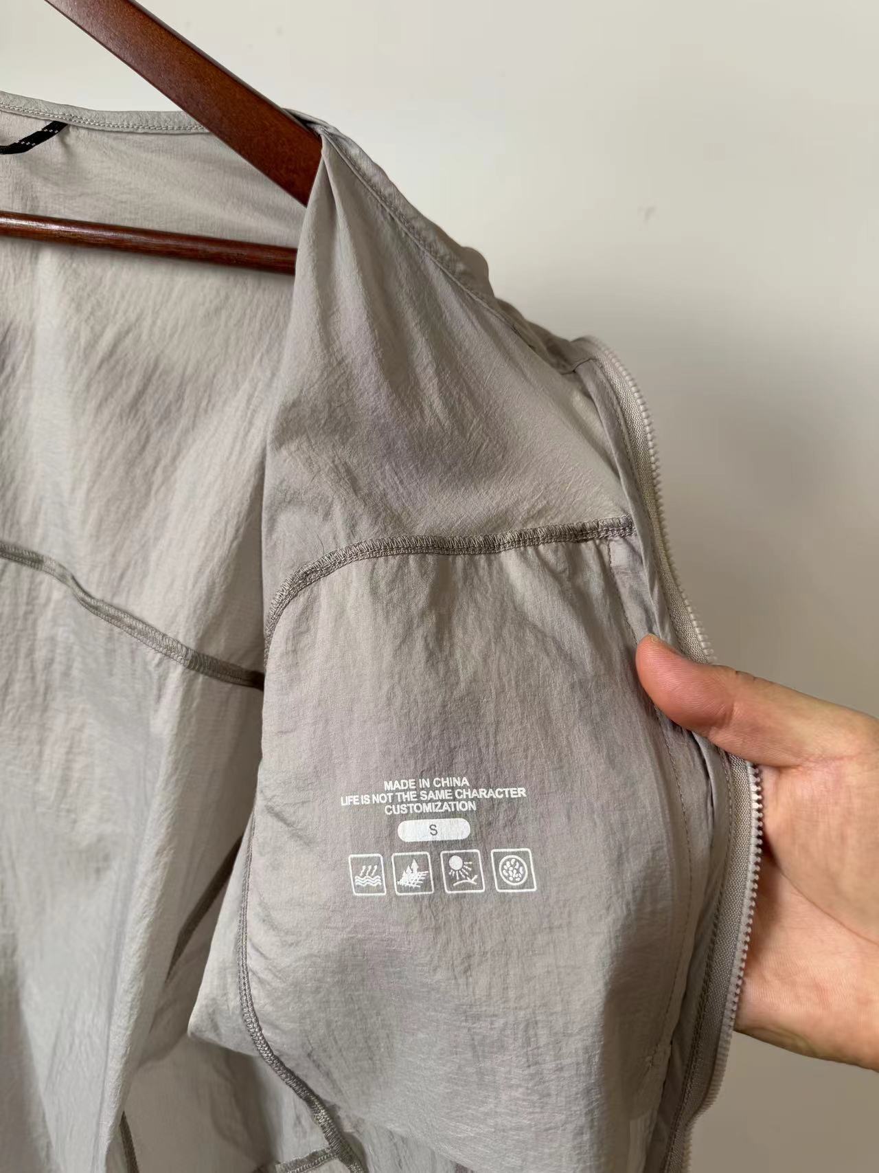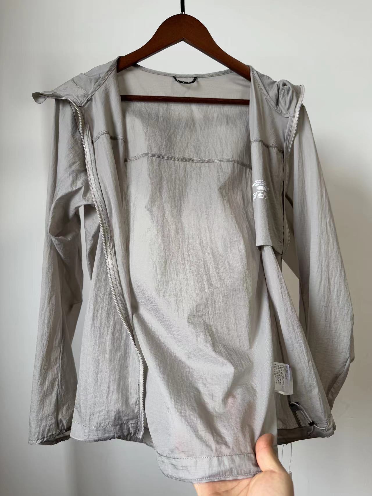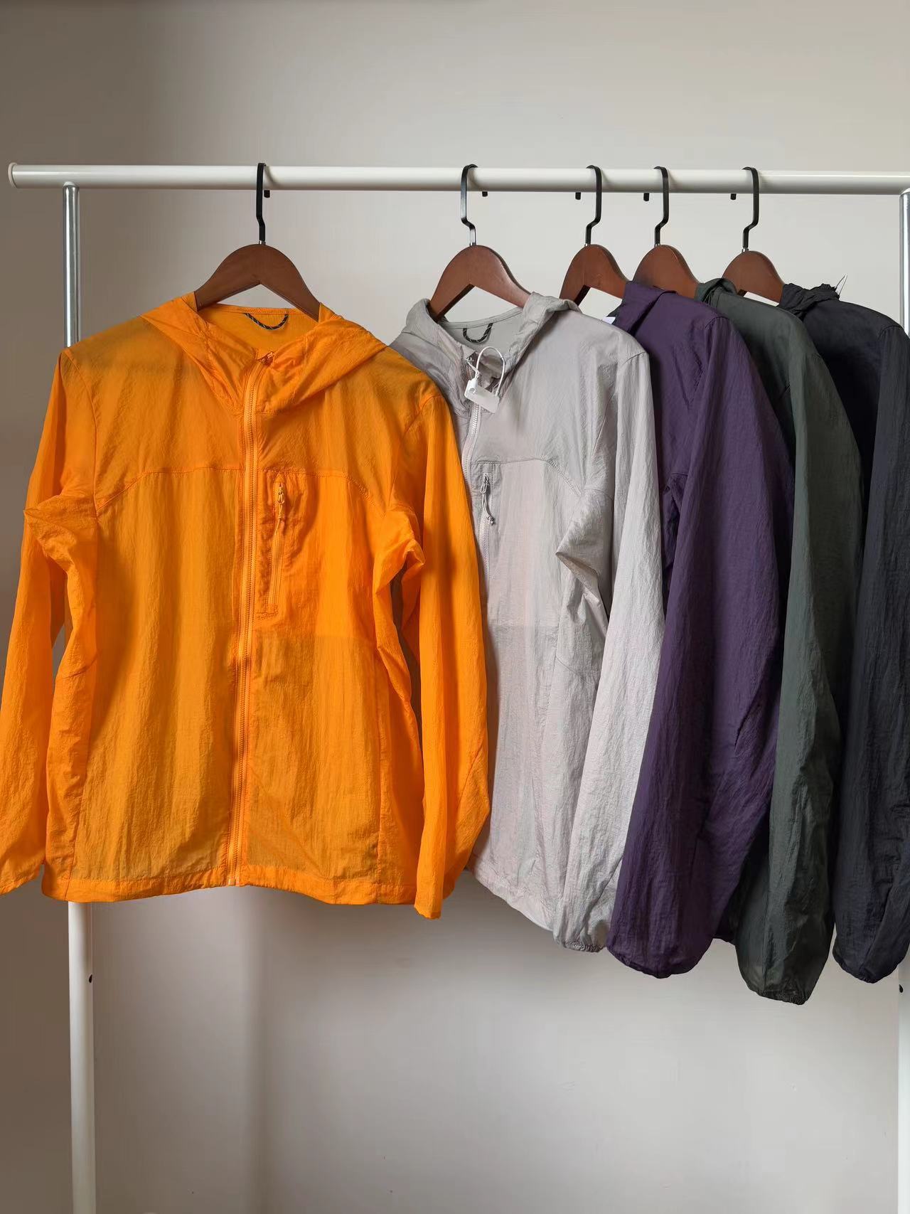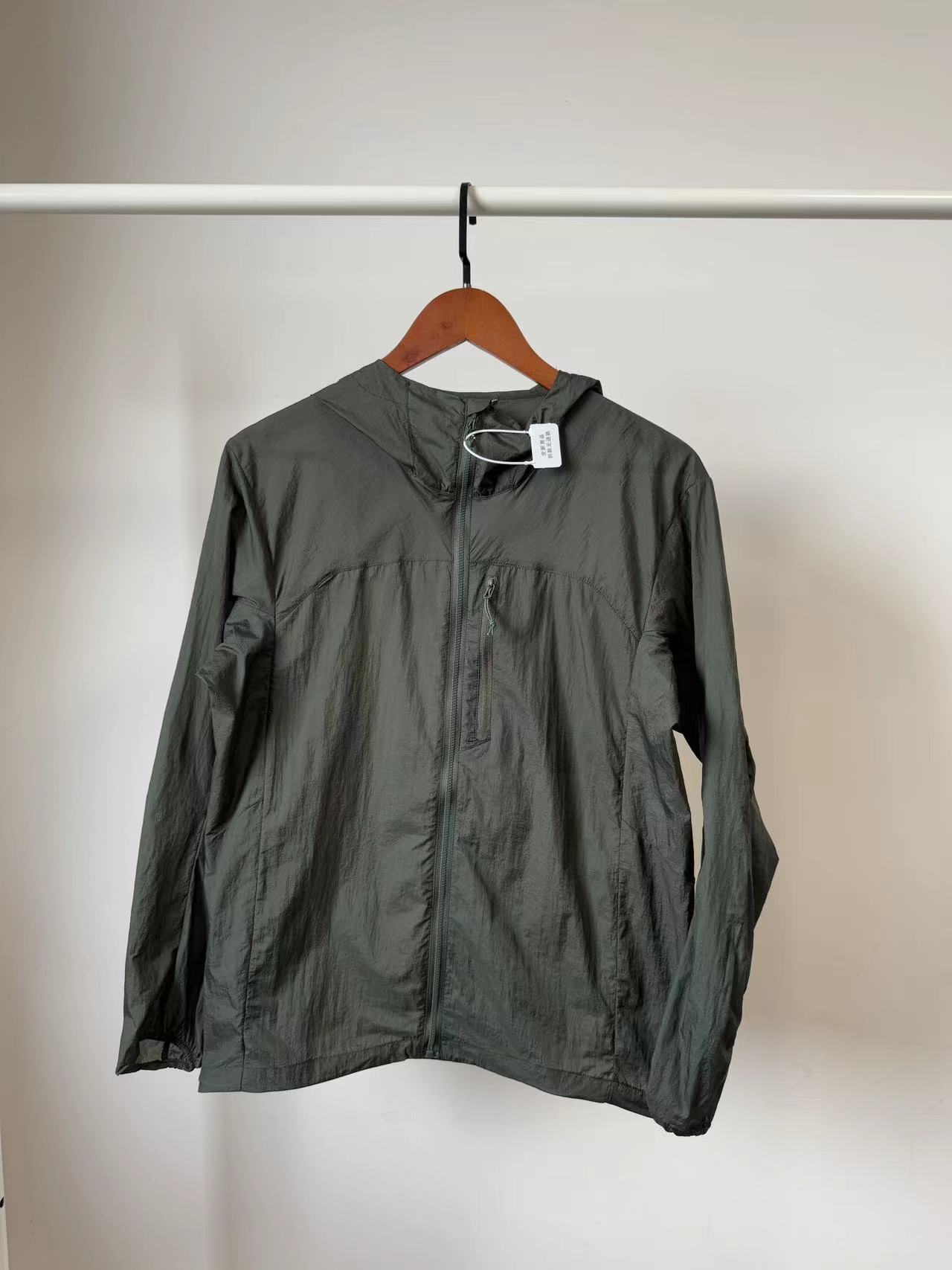 轻薄具有的结构:可调节兜帽、拉链、下摆双侧调节扣,可收纳于自身胸袋,因此可轻松放入背包或挂在带上。