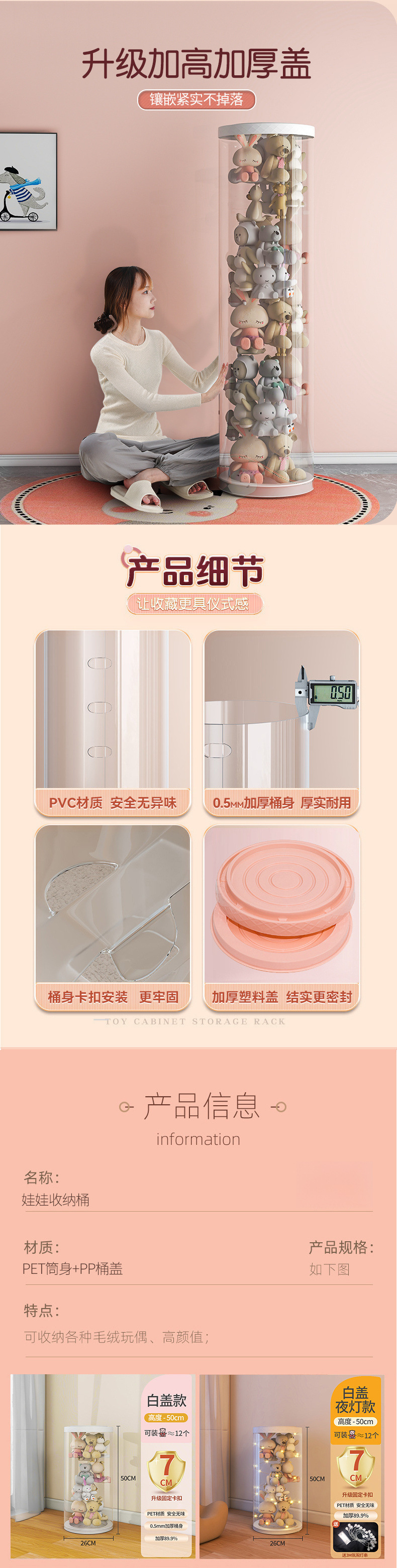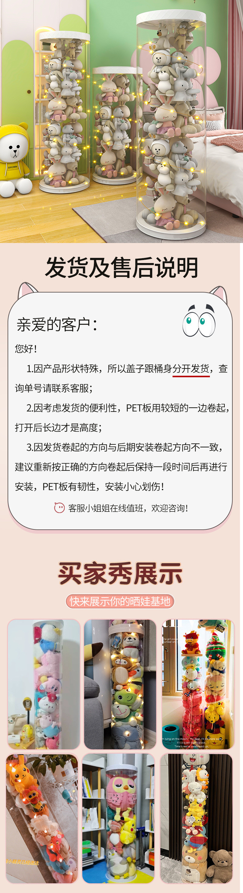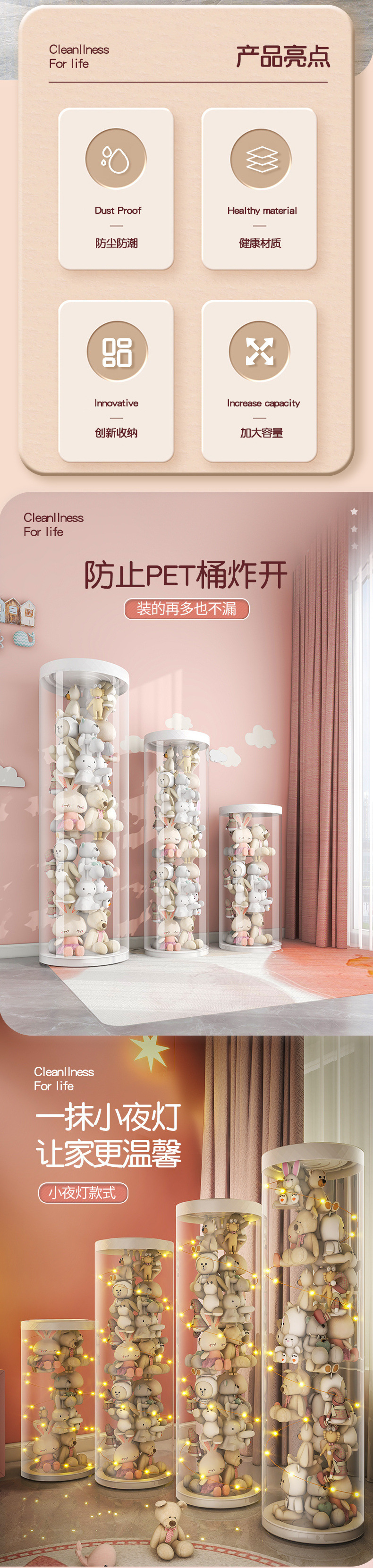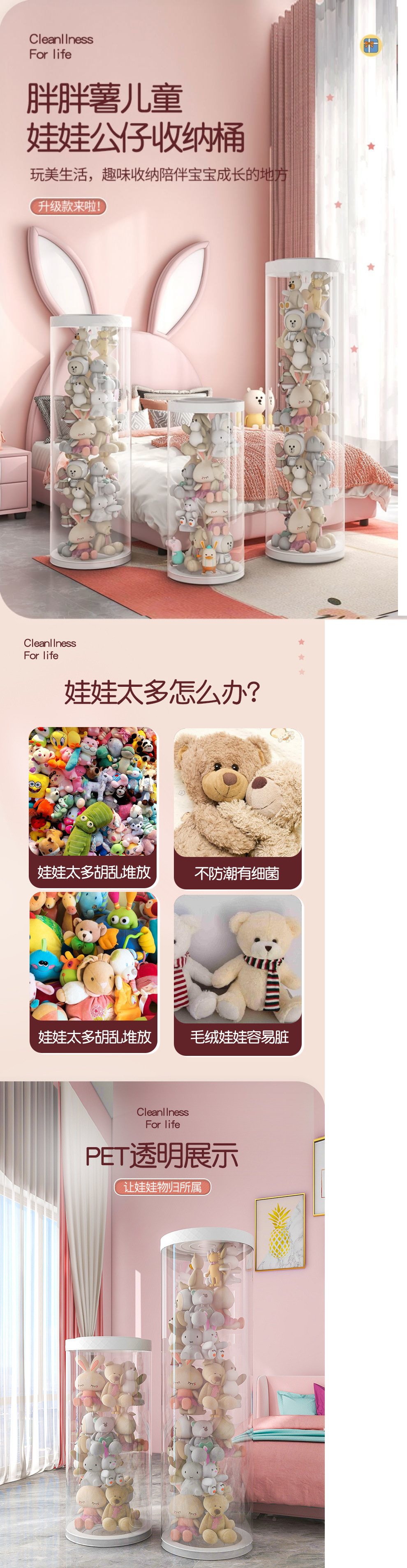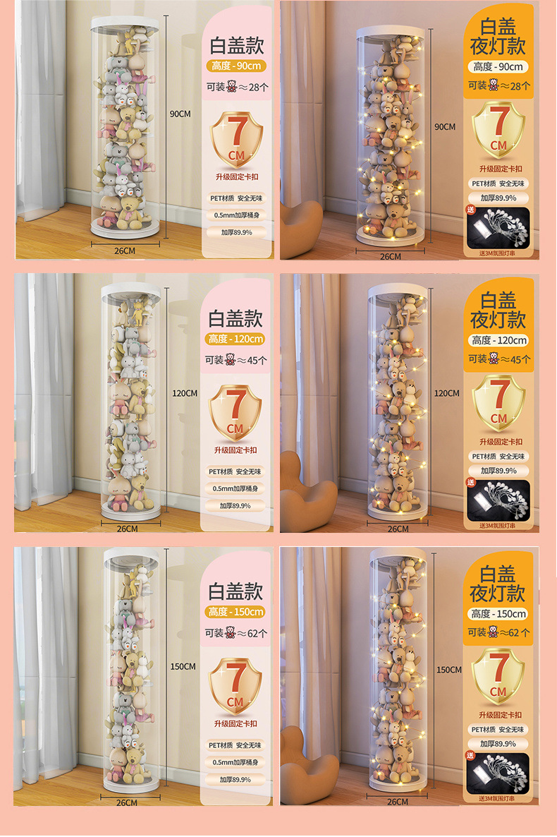 봉제 인형 보관 상자, 인형 보관통, 투명 원통형 튜브, 인터넷 연예인 어린이 인형 보관 유물스토어 가기