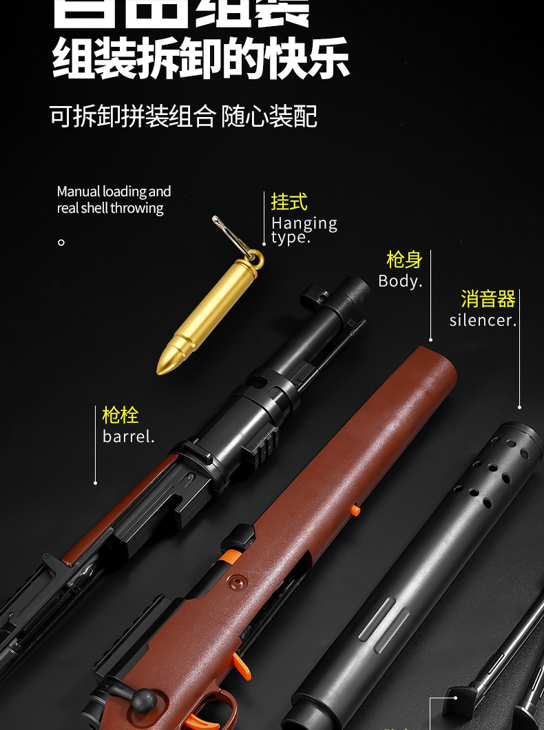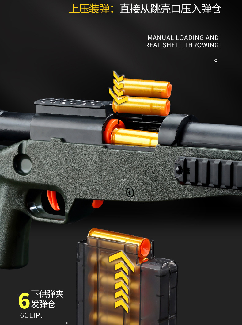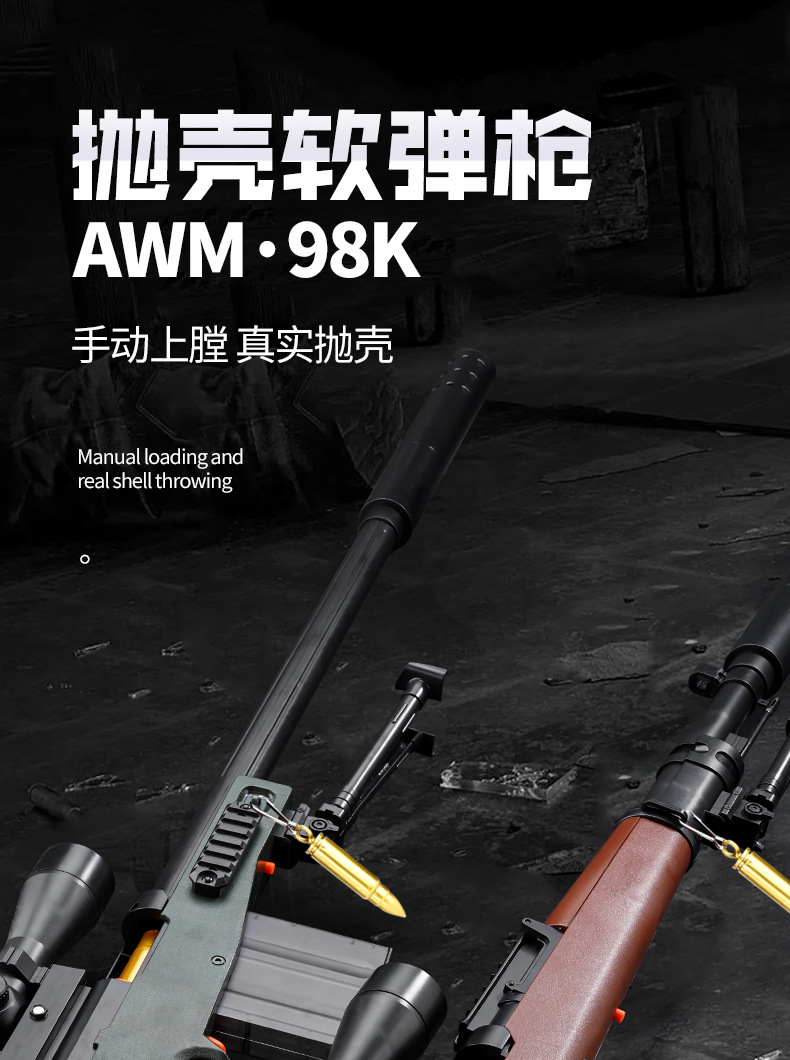 Awm 쉘 던지는 장난감 총 수동 풀 볼트 시뮬레이션 저격 로봇 어린이 소년은 대형 98k 소프트 폭탄 장난감을 발사 할 수 있습니다스토어 가기