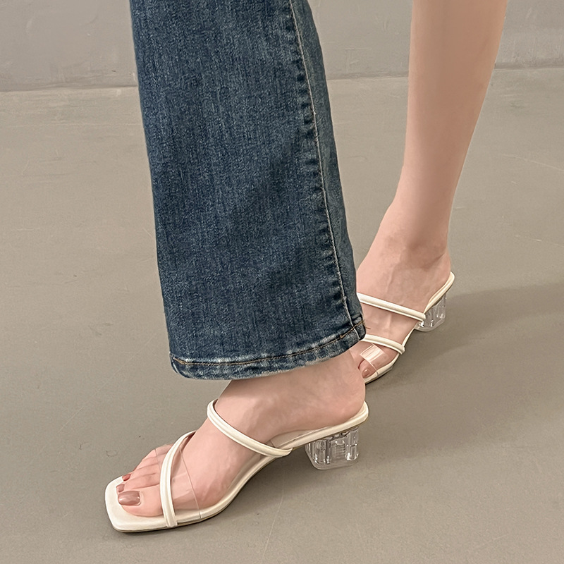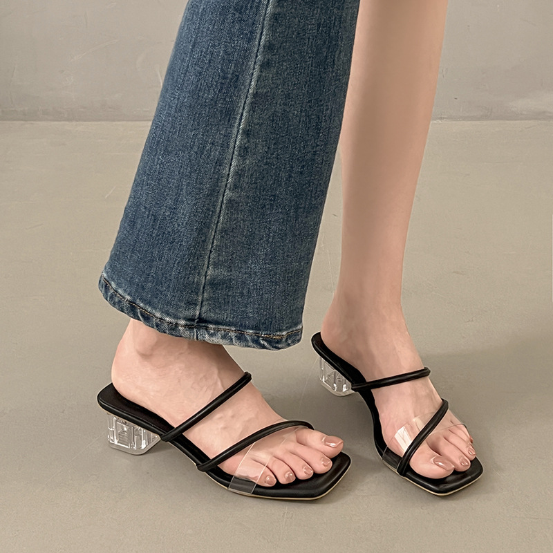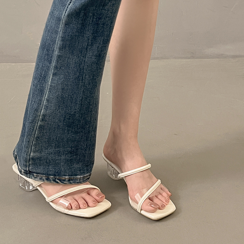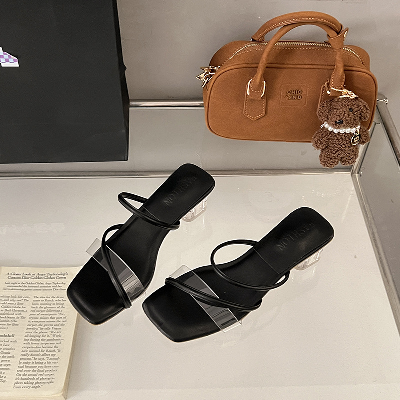 2025년 신상 여름 여성 여름 아우터 패셔너블한 두꺼운 굽 프렌치 하이엔드 크리스탈 원스트랩 캐주얼 샌들