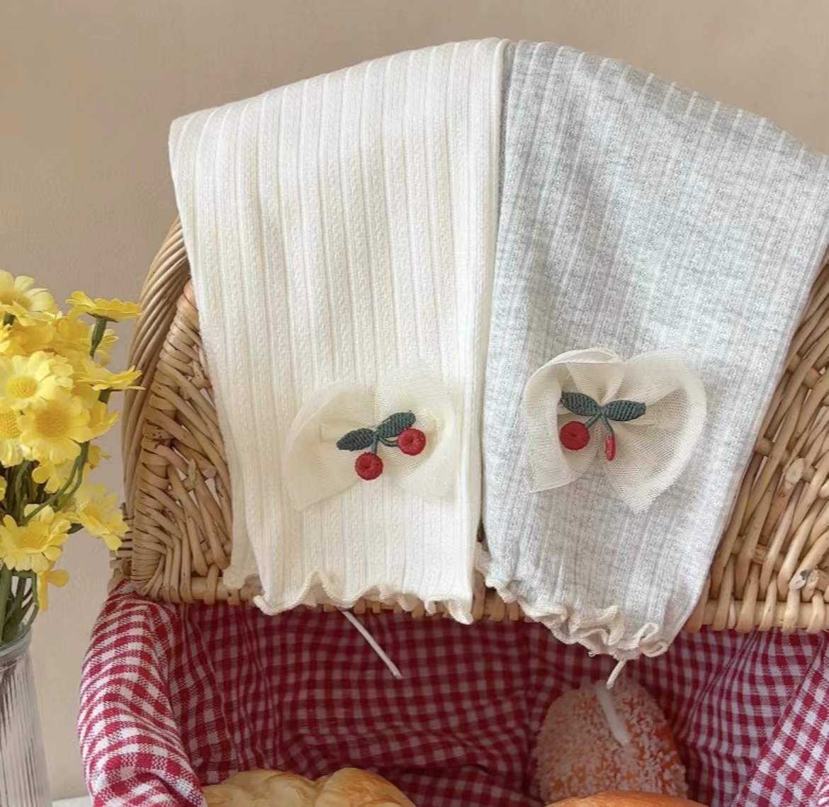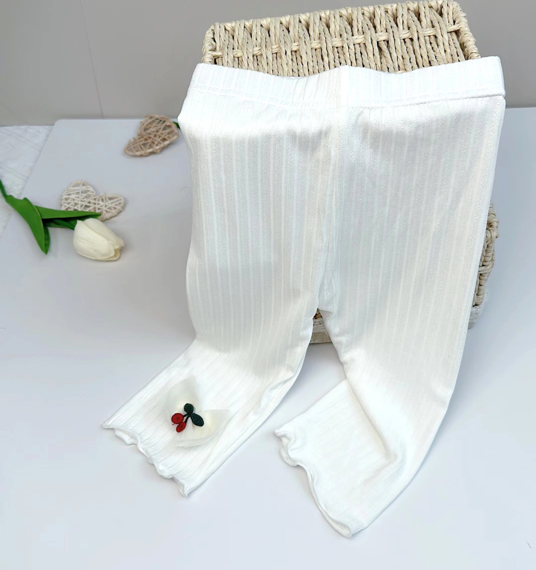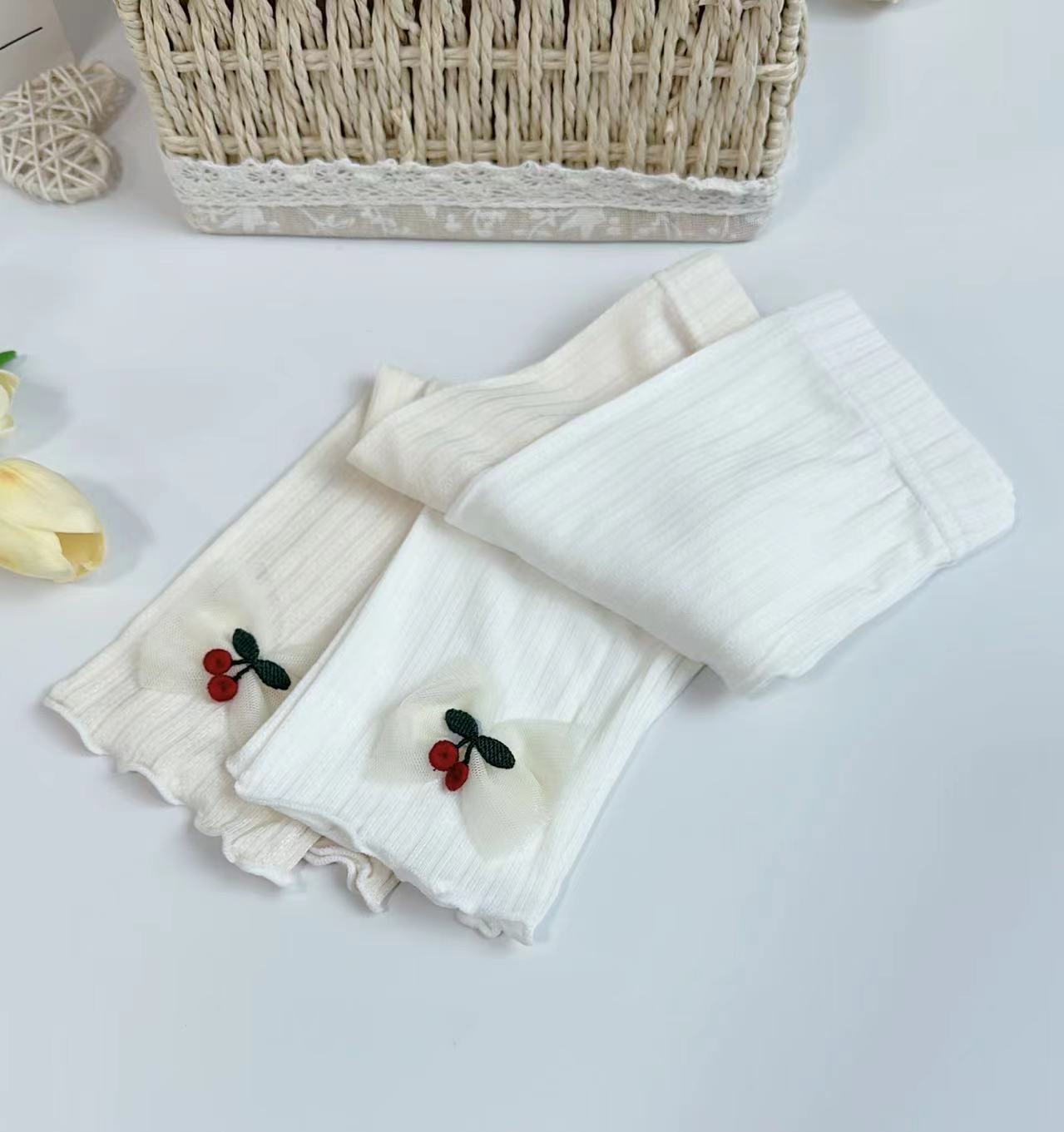여름용 얇은 칠부 바지, 메쉬 소재로 통기성이 좋은 여름용 여자 아기 패션 바지, 아기에게 부드럽고 편안한 체리 디자인