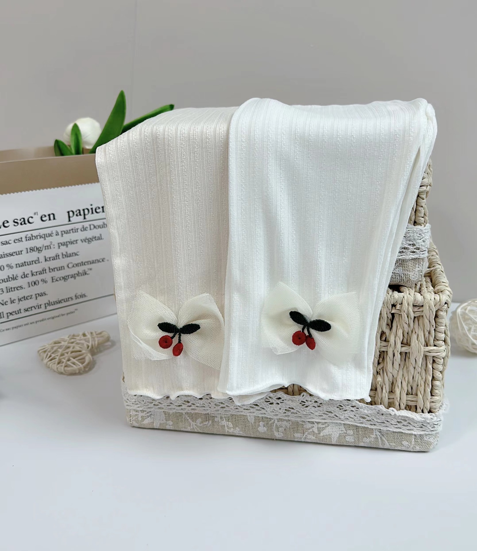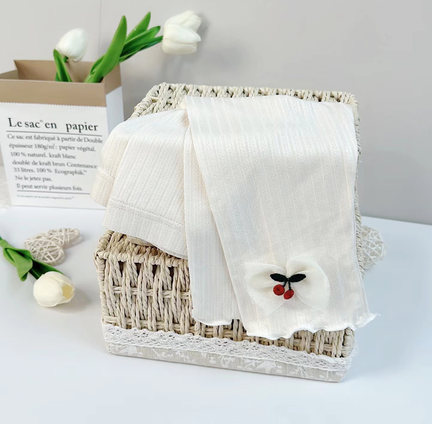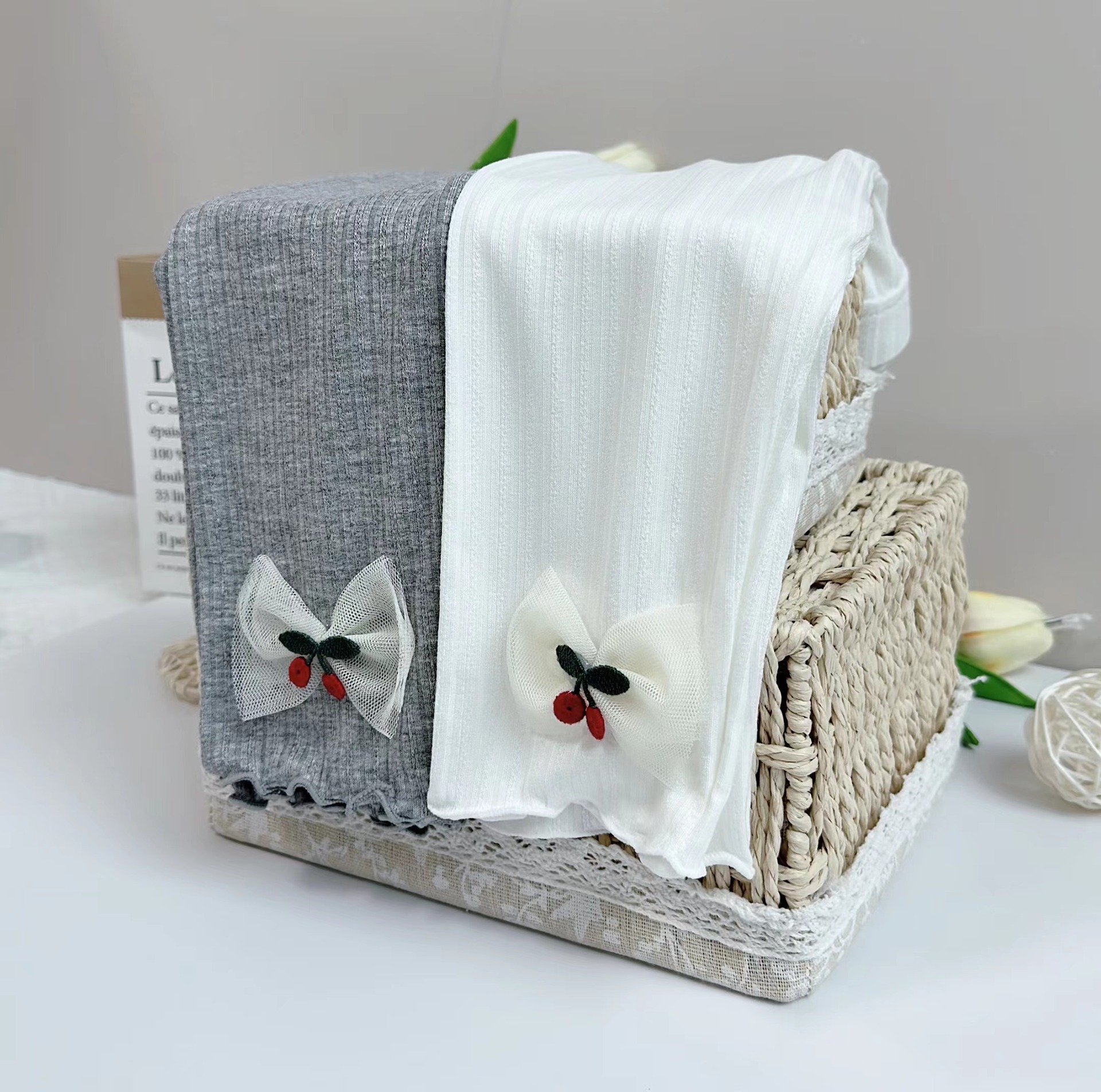 여름용 얇은 칠부 바지, 메쉬 소재로 통기성이 좋은 여름용 여자 아기 패션 바지, 아기에게 부드럽고 편안한 체리 디자인