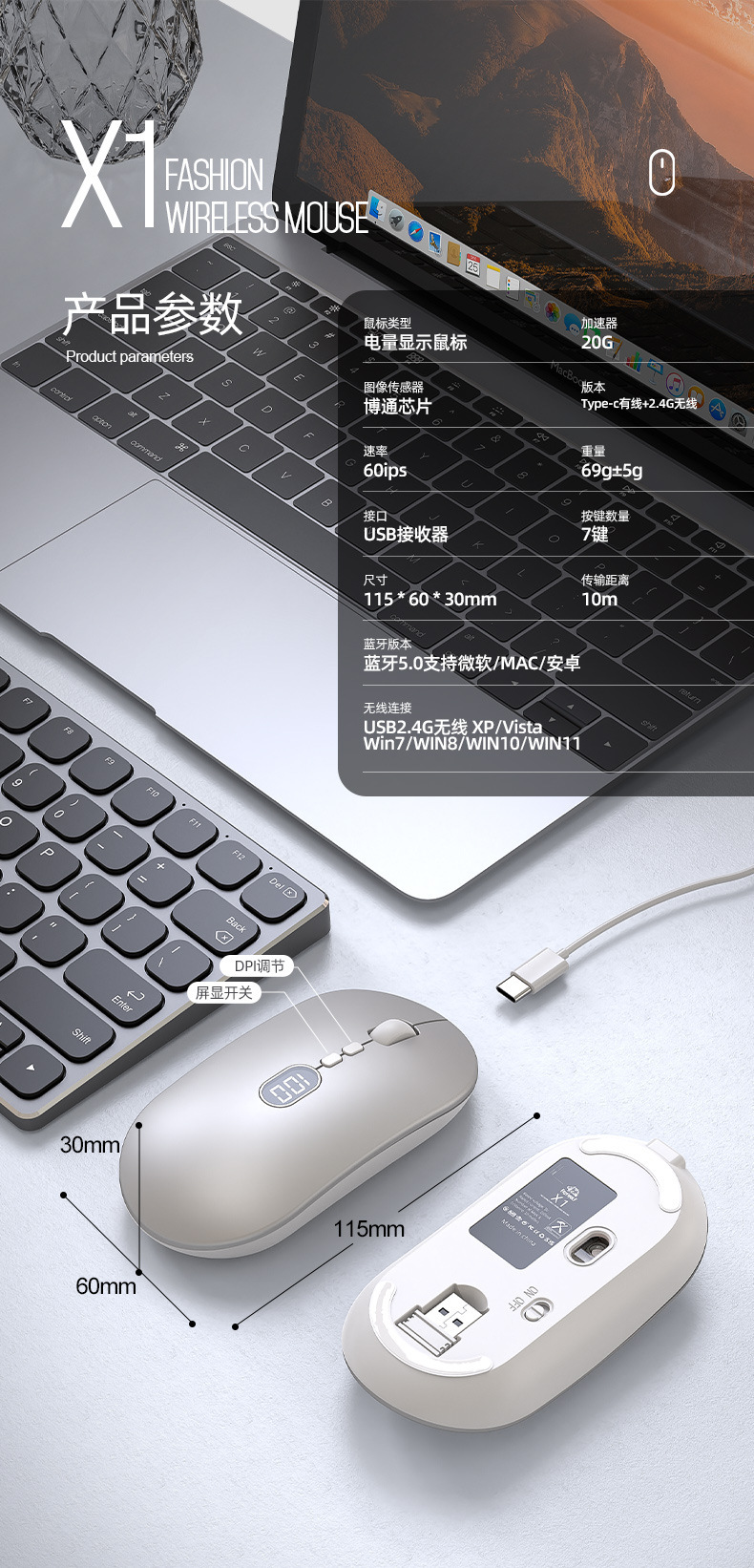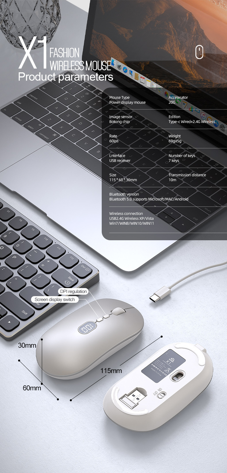 • 스크린 밀크티 화이트가 포함된 무료 Wolf X1 무선 마우스