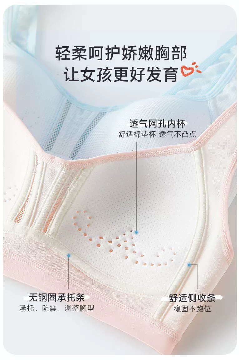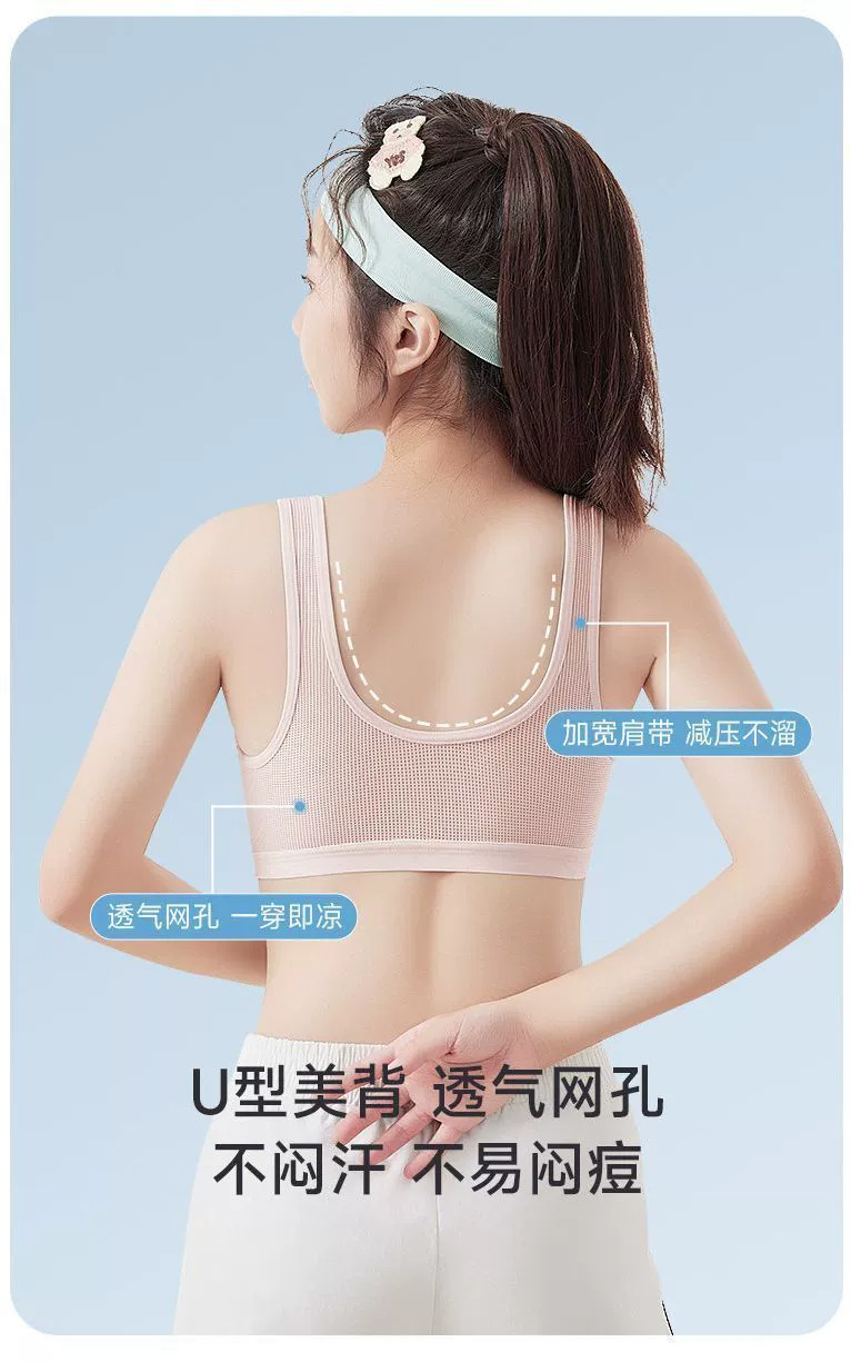 여아 속옷, 중학생 및 고등학생 발달기 12-18 통기성 브래지어 여름 스포츠 고정 충격 방지 조끼스토어 가기