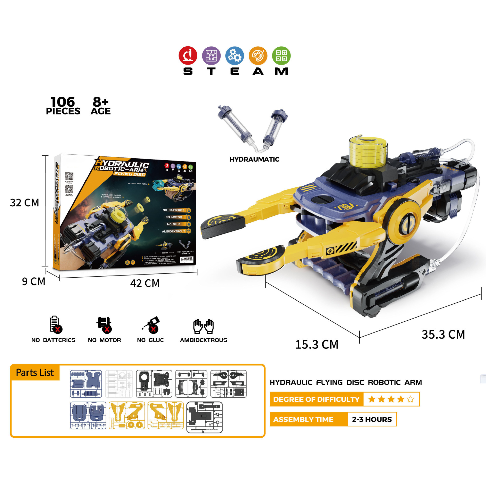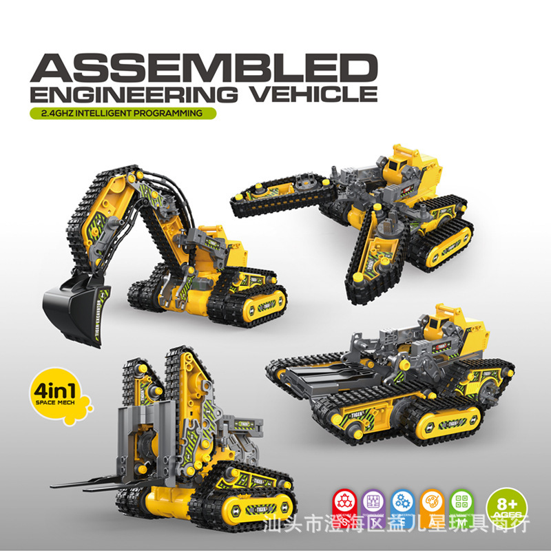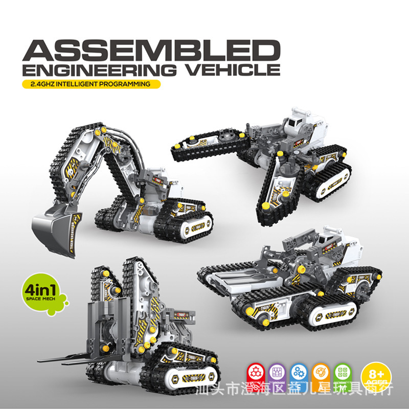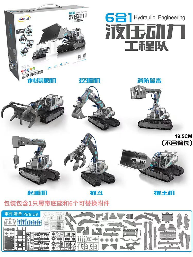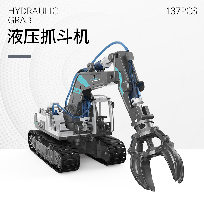 功能描述:自拼装STEAM玩具:220个配件3合1功能可自由变换工作头:抓钳、抓斗、吸盘,不需要电池与马达