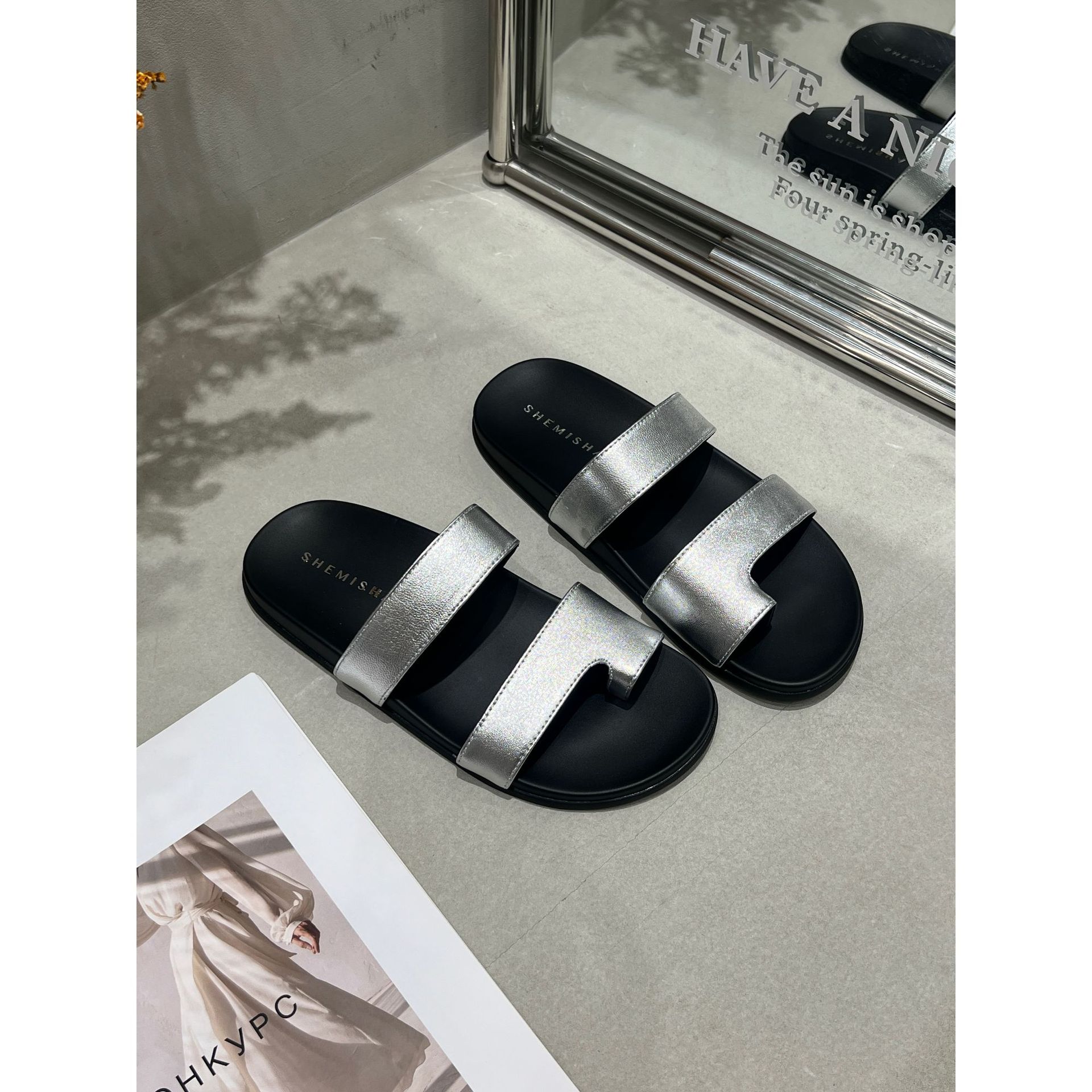 유럽과 미국의 고급 소파 플립 플롭 여성 2025 년 여름 새로운 두꺼운 밑창 캐주얼 한 단어 샌들 비치 샌들스토어 가기