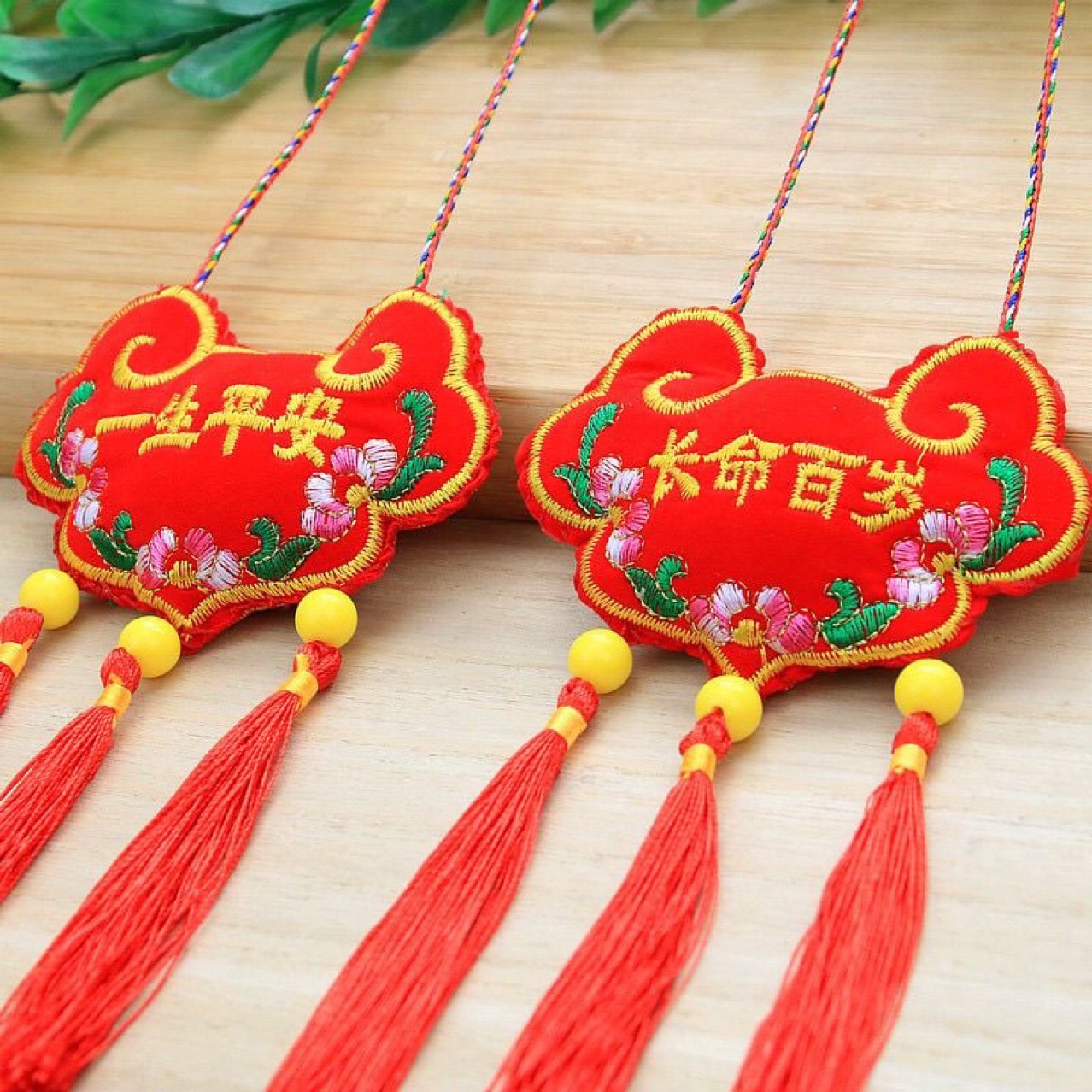 민족풍 자수 홀터넥 목걸이, 전통적인 붉은색 축제 핀치 소리 목걸이, 드래곤후날 향 주머니 펜던트