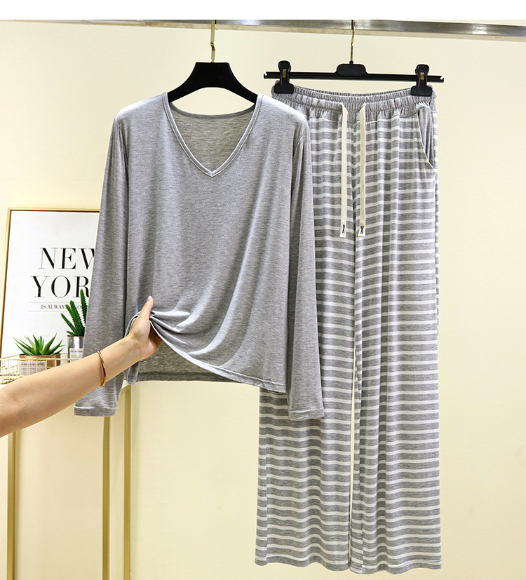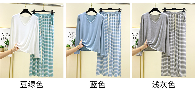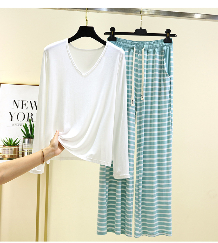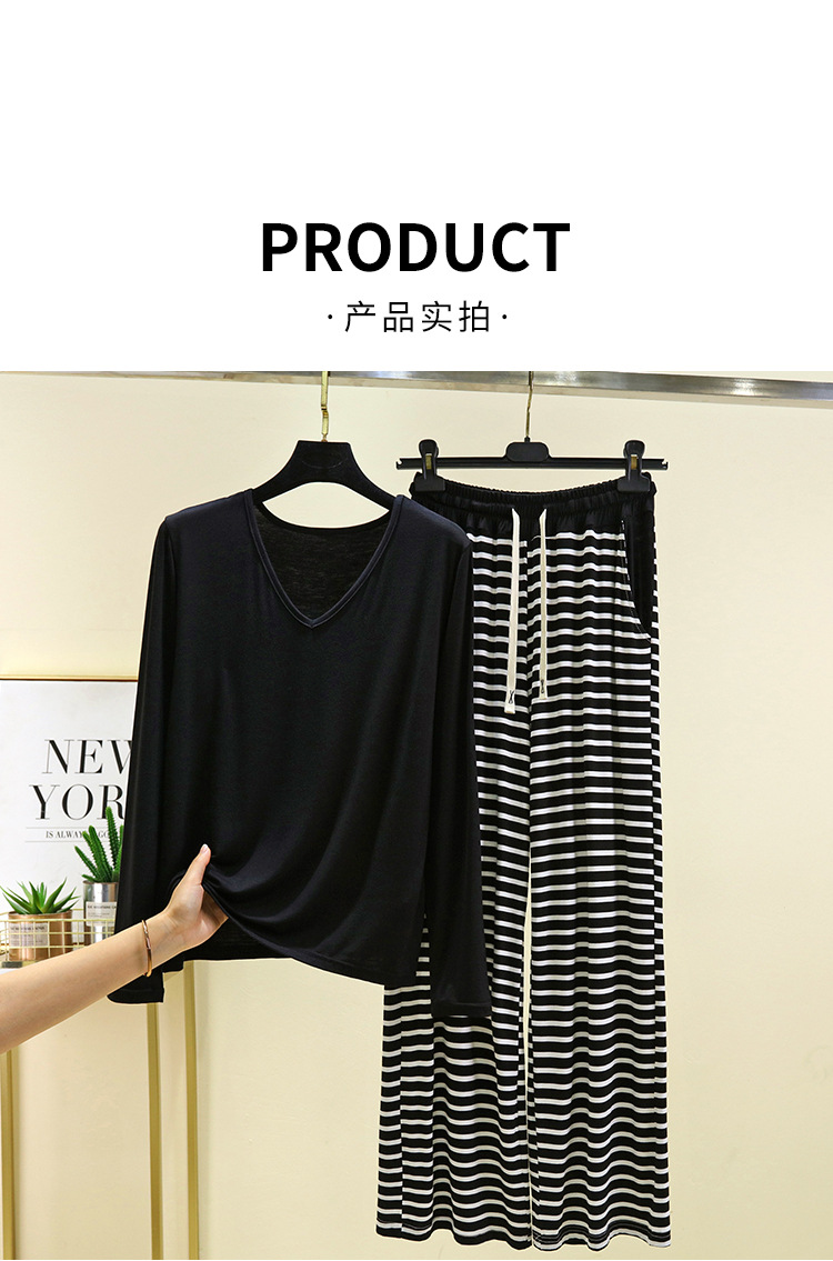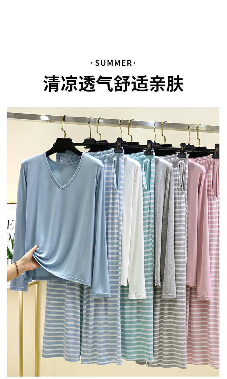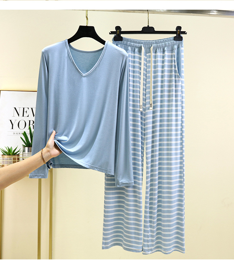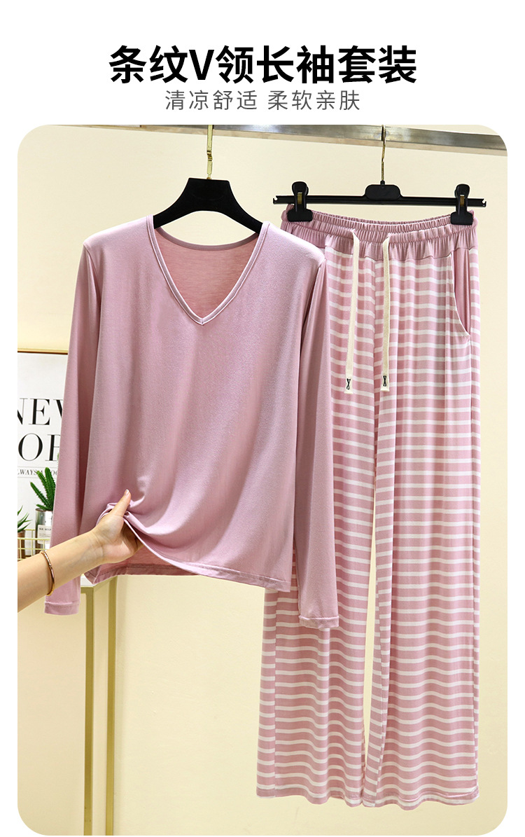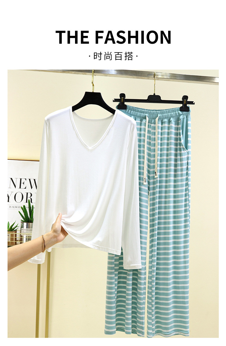 여성용 모달 긴팔 잠옷, 파자마, 봄, 가을 얇은 티셔츠, 바지, 홈웨어, 야외에서 착용 가능한 대형 캐주얼 슈트스토어 가기