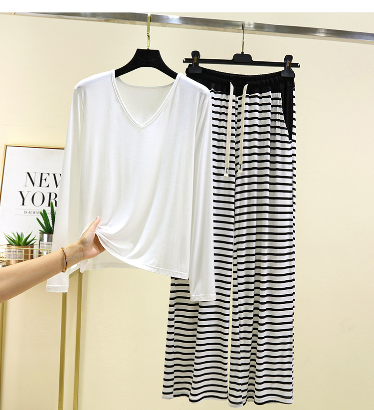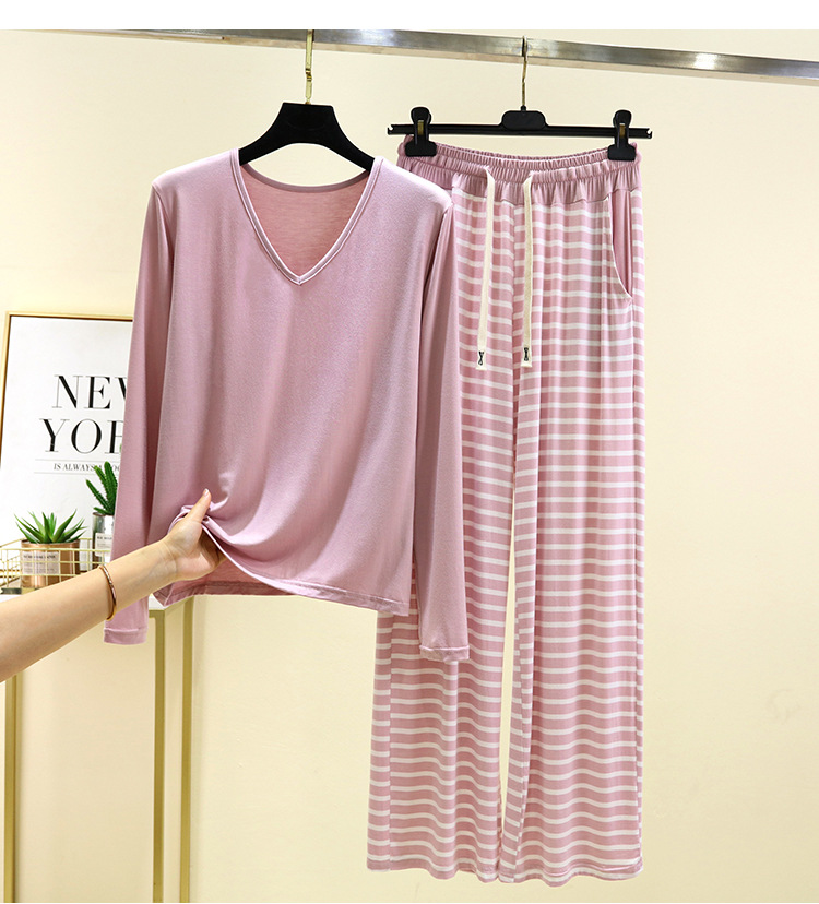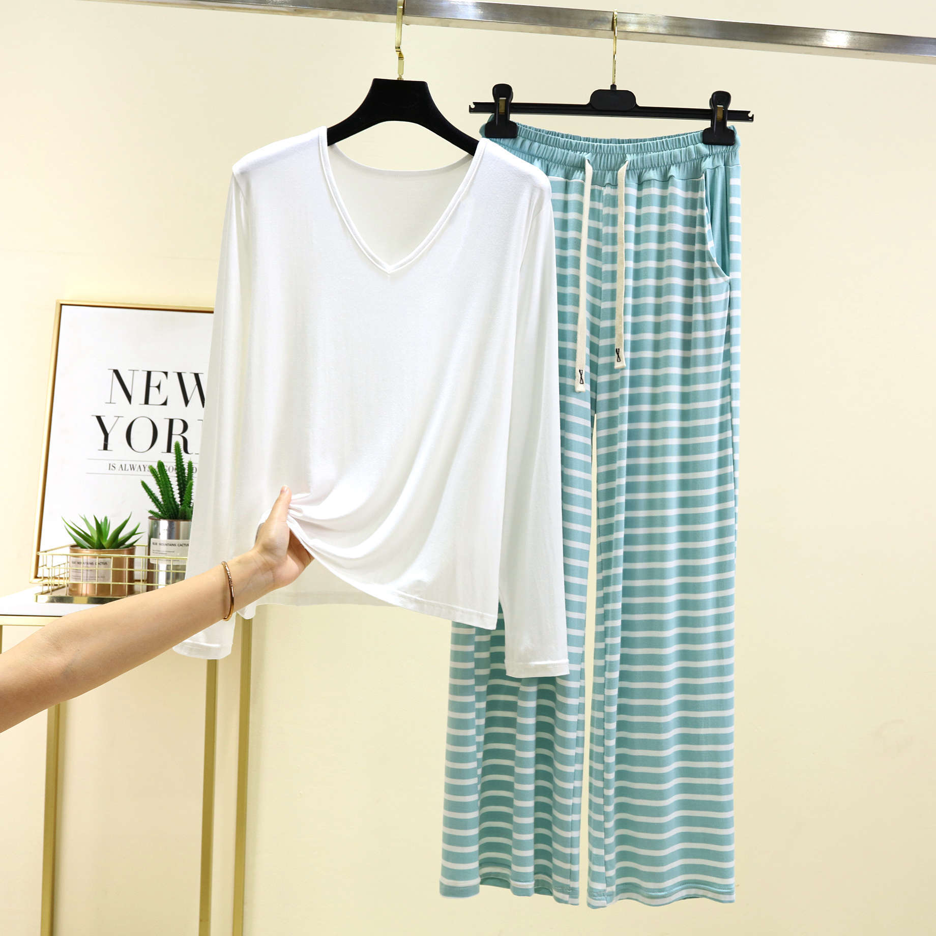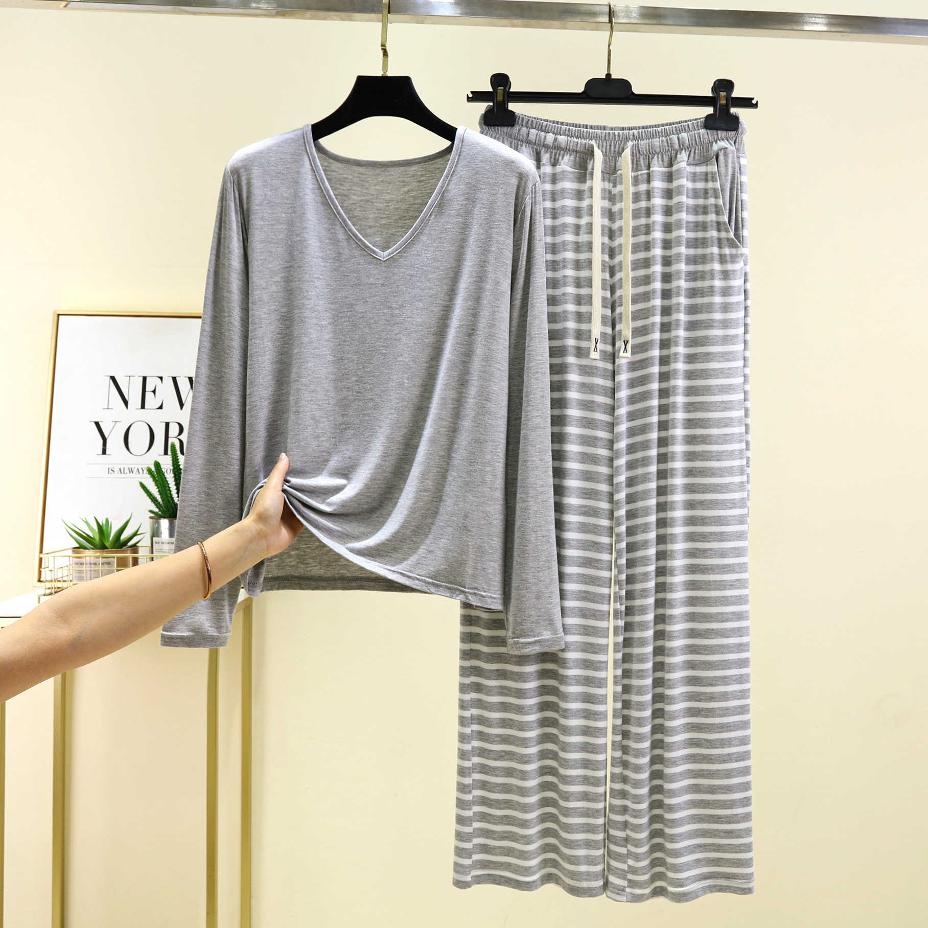 여성용 모달 긴팔 잠옷, 파자마, 봄, 가을 얇은 티셔츠, 바지, 홈웨어, 야외에서 착용 가능한 대형 캐주얼 슈트