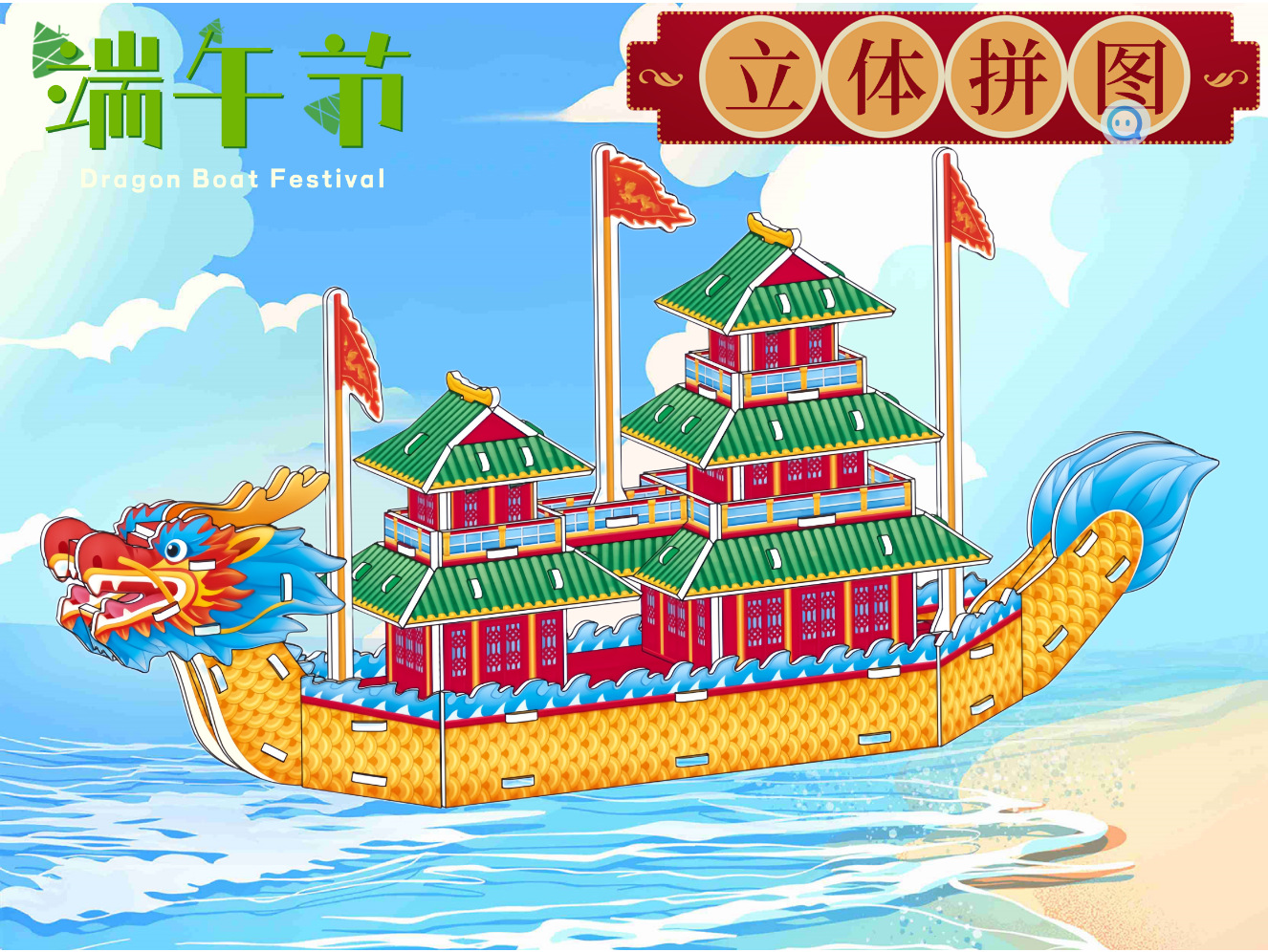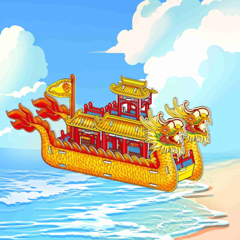 단오절 용선 DIY 입체 퍼즐, 물에 뜨는 용선, 단오절 어린이 수공예 모델 재료 조립스토어 가기
