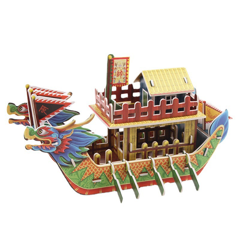 단오절 용선 DIY 입체 퍼즐, 물에 뜨는 용선, 단오절 어린이 수공예 모델 재료 조립
