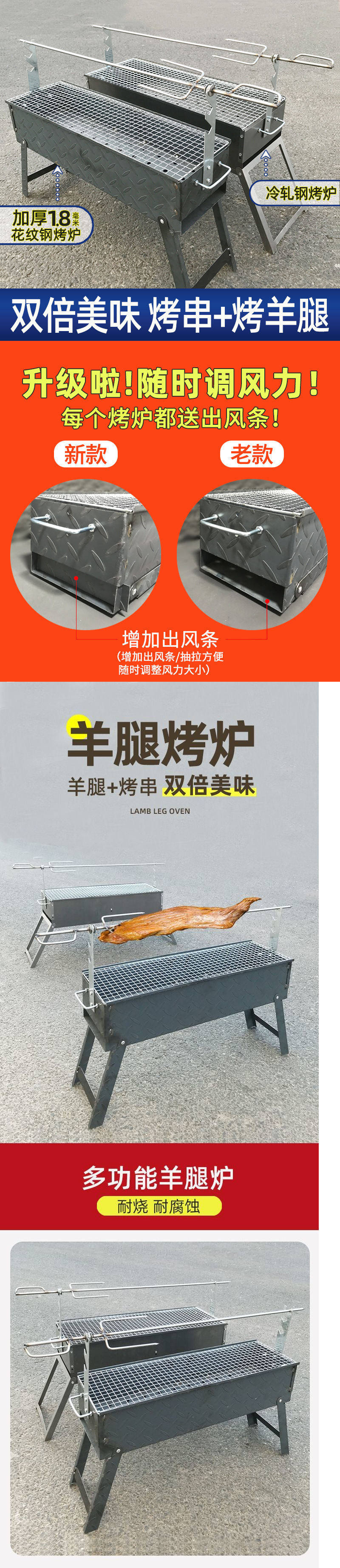 두꺼운 양고기 다리구이 스토브, 접이식 바베큐 그릴, 야외 양고기 꼬치, 상업용 숯불 그릴, 양갈비, 닭고기 및 토끼 바베큐 그릴스토어 가기