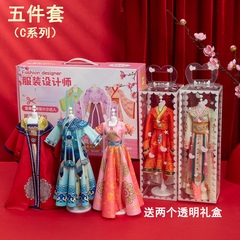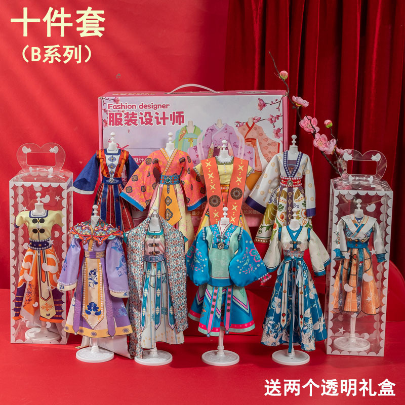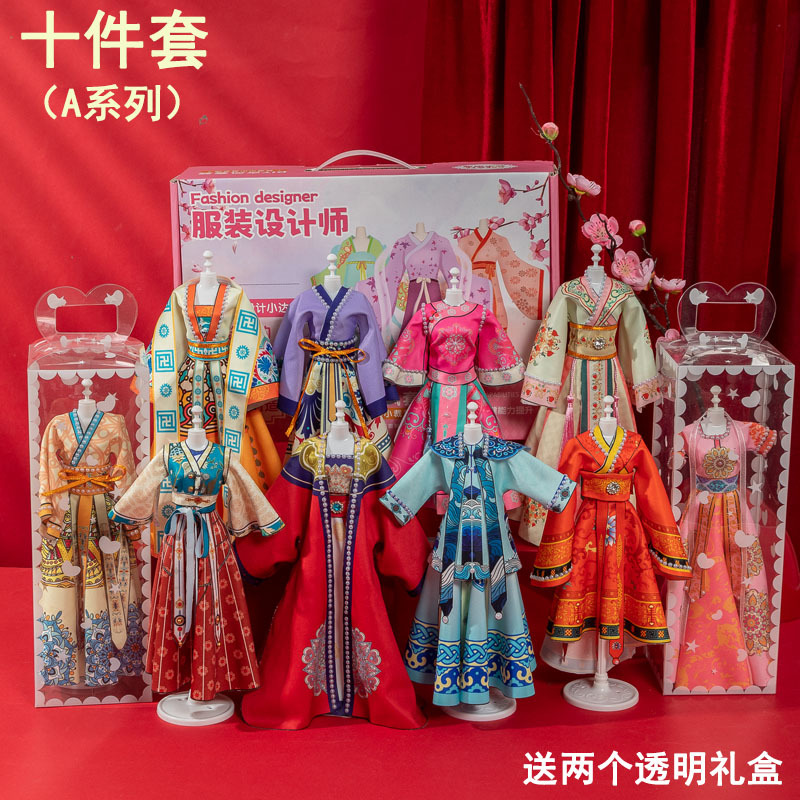소녀 생일 선물 의류 디자인 DIY 수제 어린이 한푸 장난감 7 원피스 인형 8 6 세 10 Guofeng 9스토어 가기