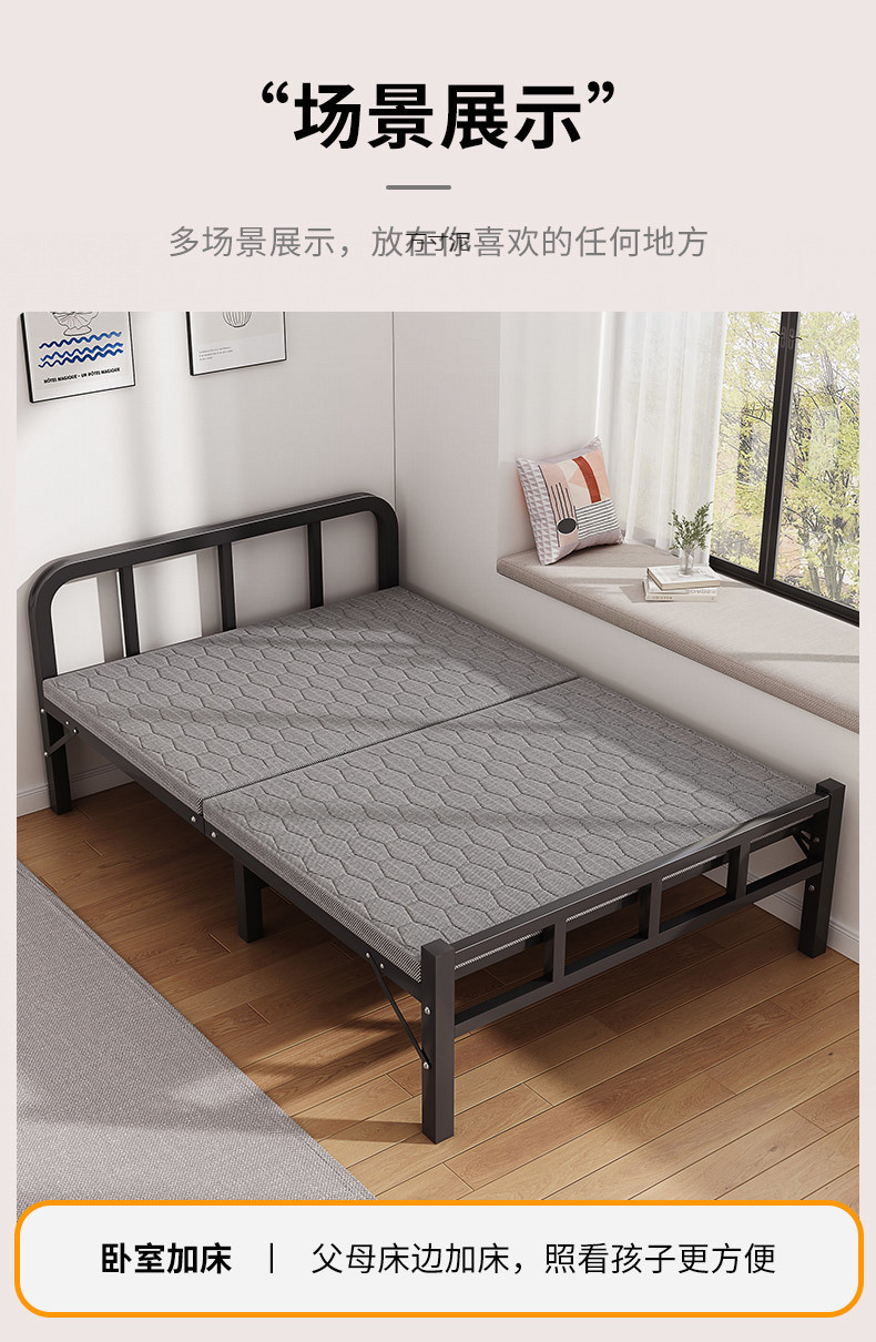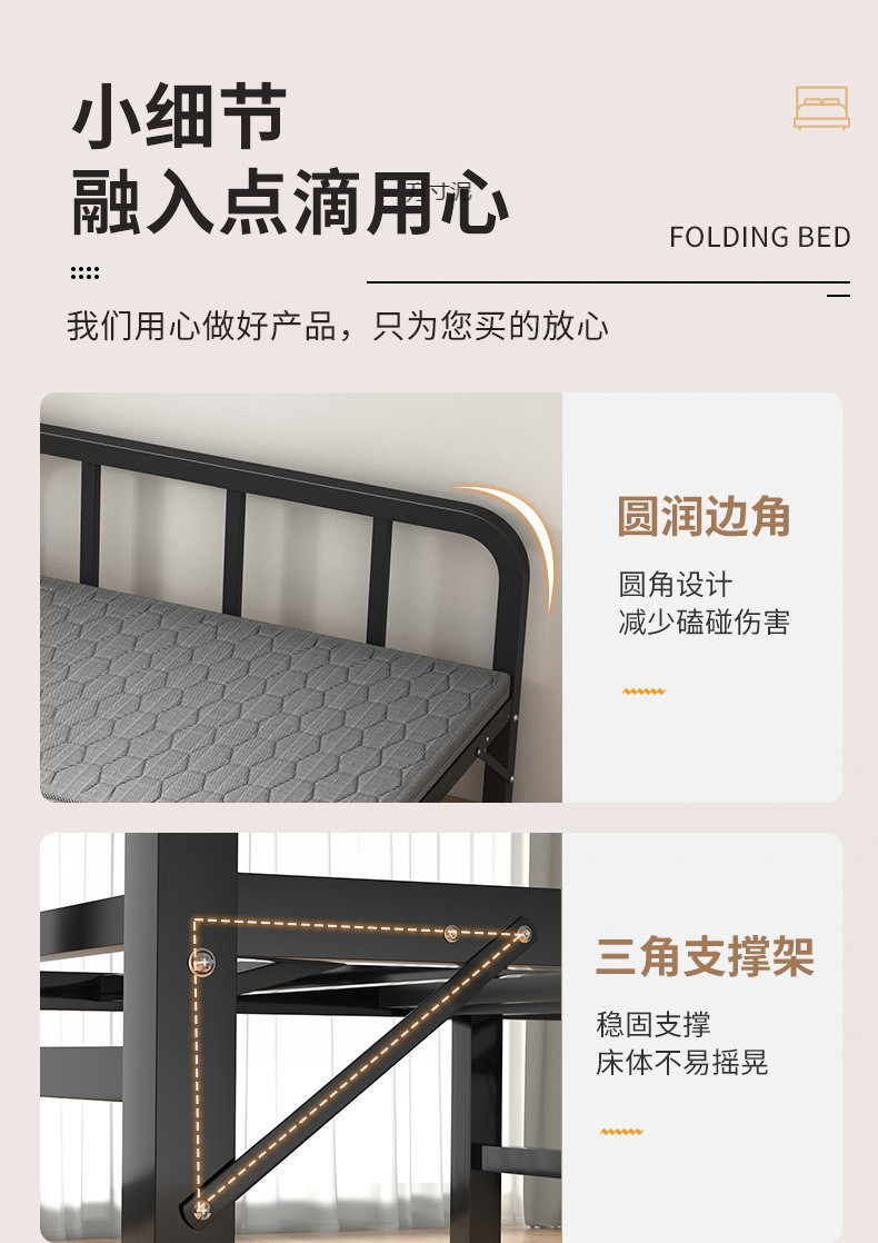 강화 접이식 싱글 침대 간이 나무 침대 점심 시간 사무실 홈 더블 하드 침대 임대실 성인 철제 침대