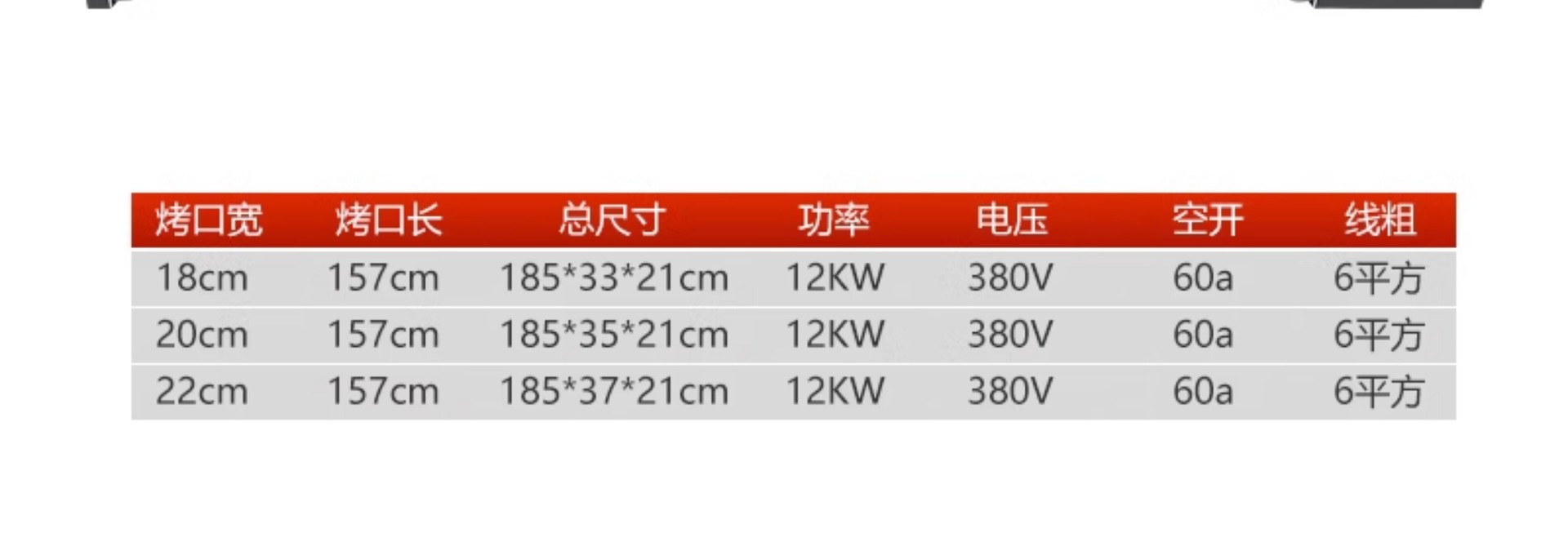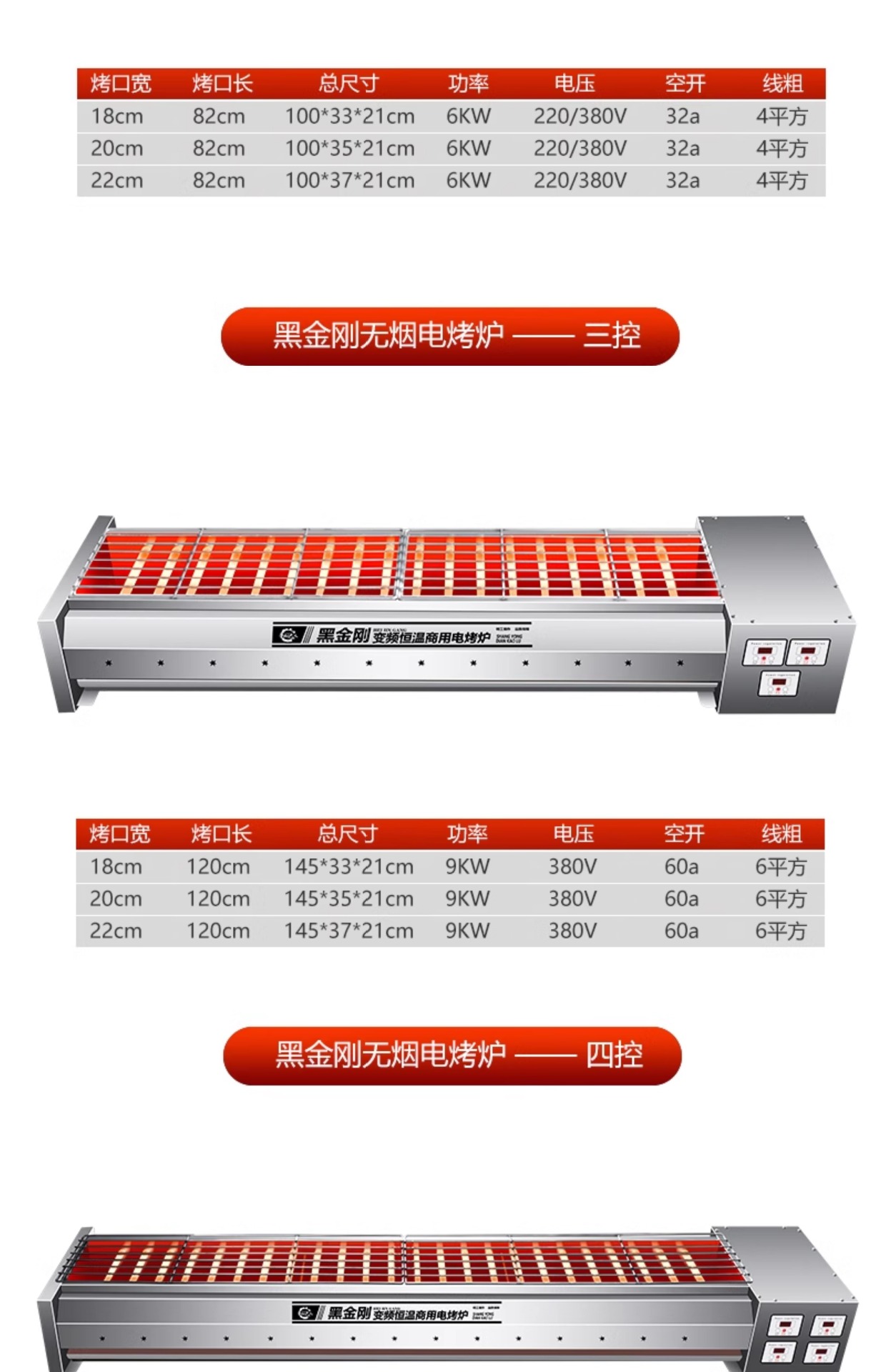 • [주파수 변환 항온] 제어 4개, 튜브 18개, 그릴 개구부 1.45m개, 120*24cm, 11.7KW (380V 연결 회로 차단기)