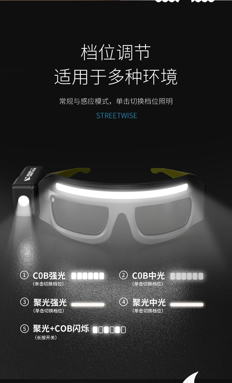국경 간 신제품 강한 빛 조명 안경 헤드 라이트 작업 조명 야외 사이클링 야간 낚시 안경 라이트 방풍 헤드 라이트