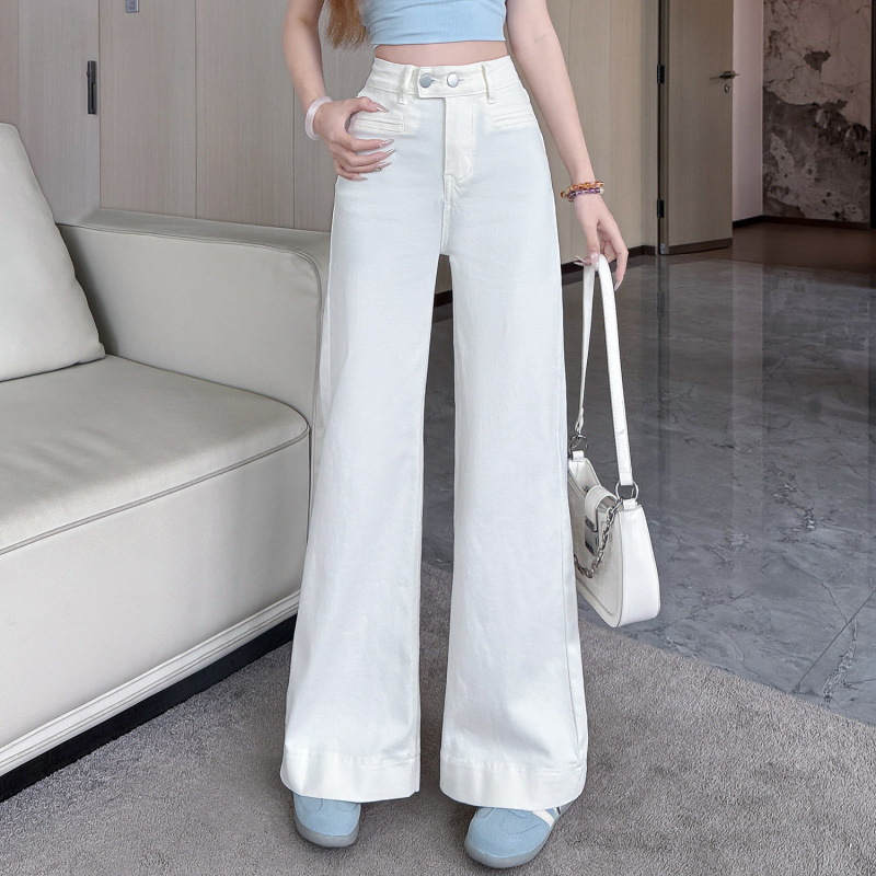 2025 여름 여성용 다용도 데님 고탄성 2버튼 다용도 마이크로 플레어 와이드 팬츠 145 소형