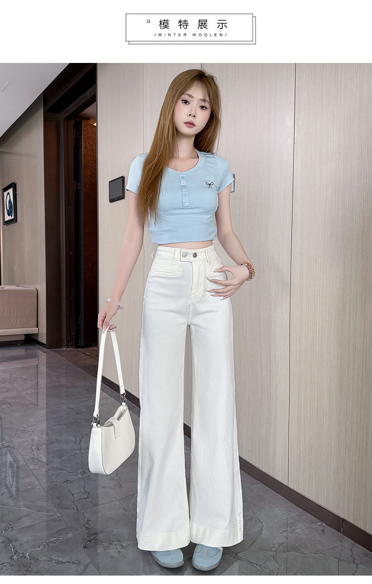 2025 여름 여성용 다용도 데님 고탄성 2버튼 다용도 마이크로 플레어 와이드 팬츠 145 소형스토어 가기