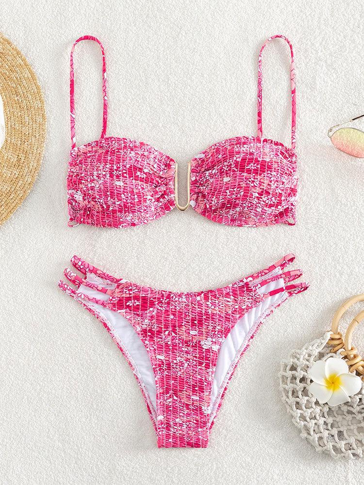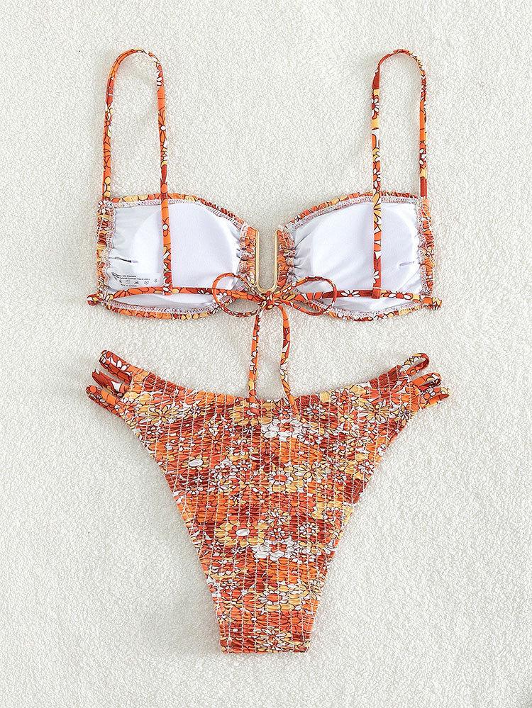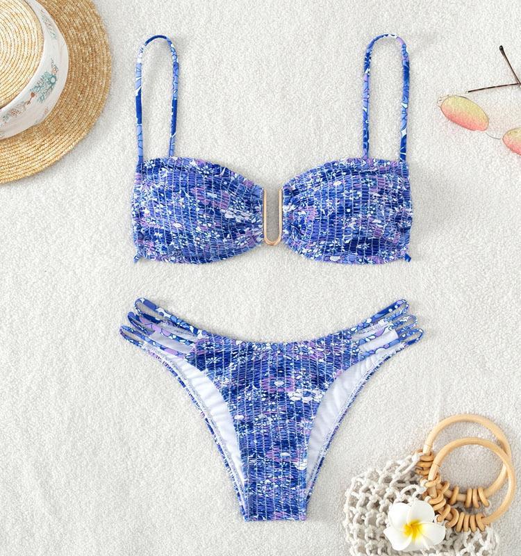 새로운 2025 꽃 패션 수영복 비키니 유럽과 미국 대외 무역 섹시한 U 자형 삼각형 분할 수영복 비키니