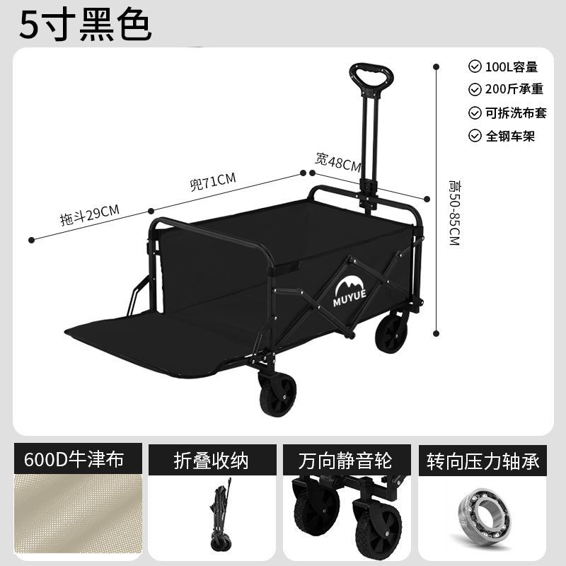 • 블랙 [이중 두꺼운 옥스포드 천] - 대형 / 8inch 오프로드 휠 / 더블 브레이크 / 티핑 버킷 스타일 + 블랙 테이블