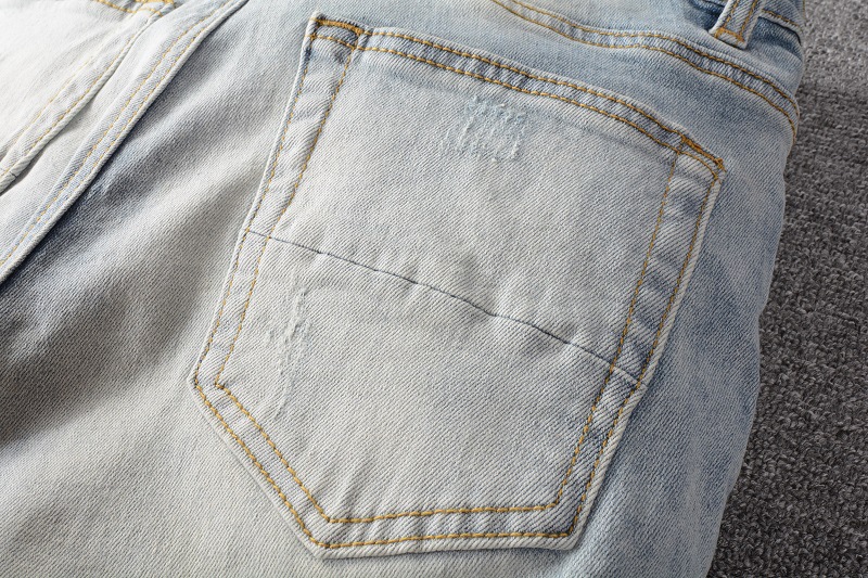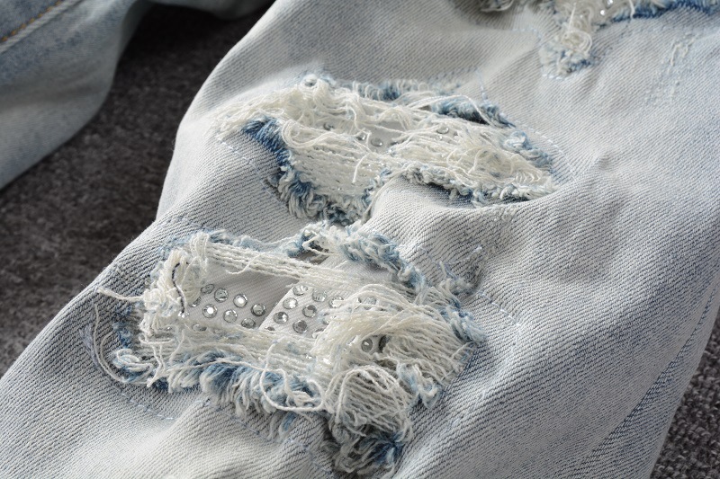 2025년 새로운 트렌디 브랜드 핫 다이아몬드 찢어진 패치 디자인 남성용 하이 스트리트 워싱 슬림핏 청바지스토어 가기