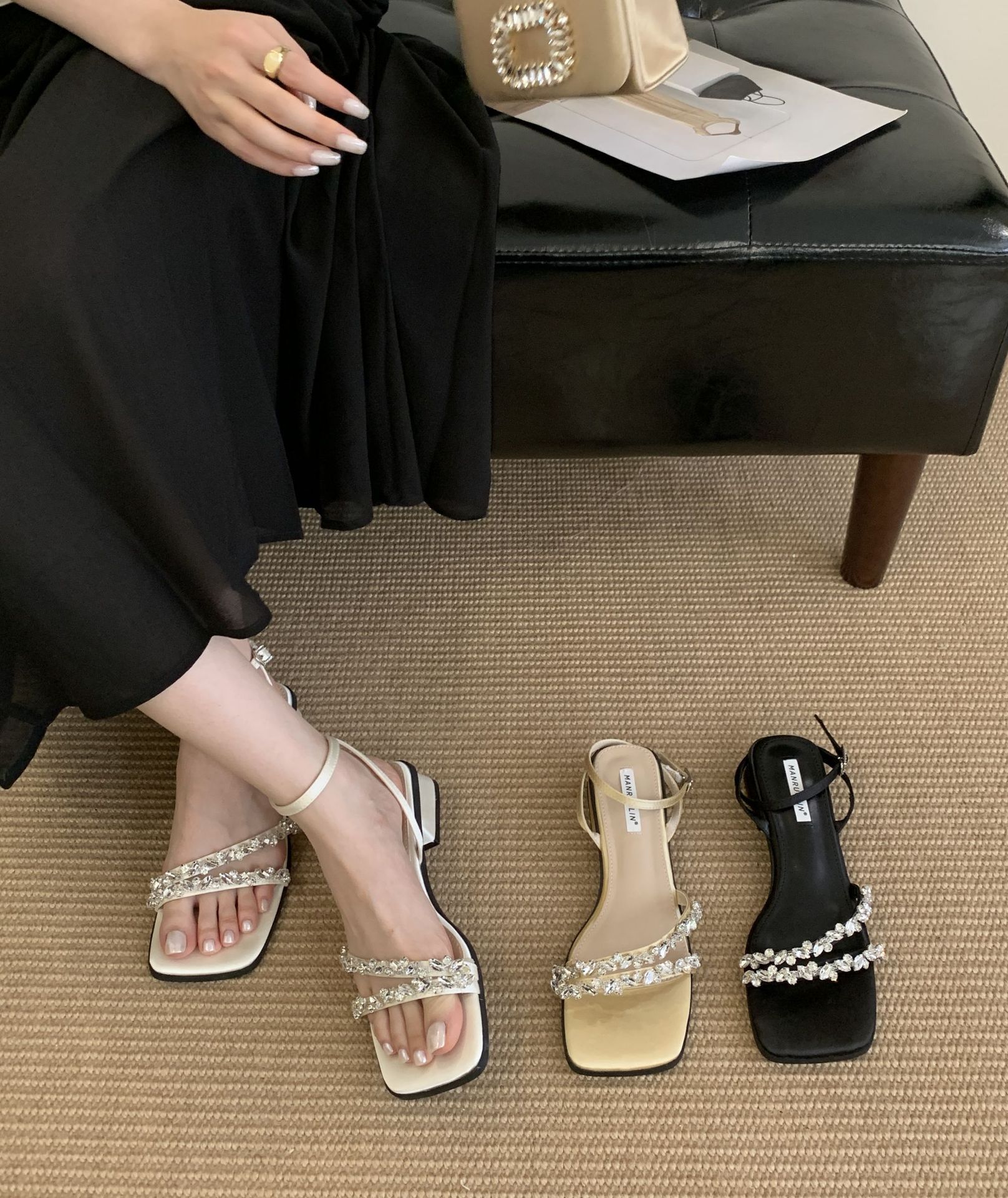 2025년 신상 여름 프렌치 스타일 여성스러운 요정 스타일 두꺼운 굽 다이아몬드 스트랩 여성 아우터 패셔너블하고 다재다능한 샌들