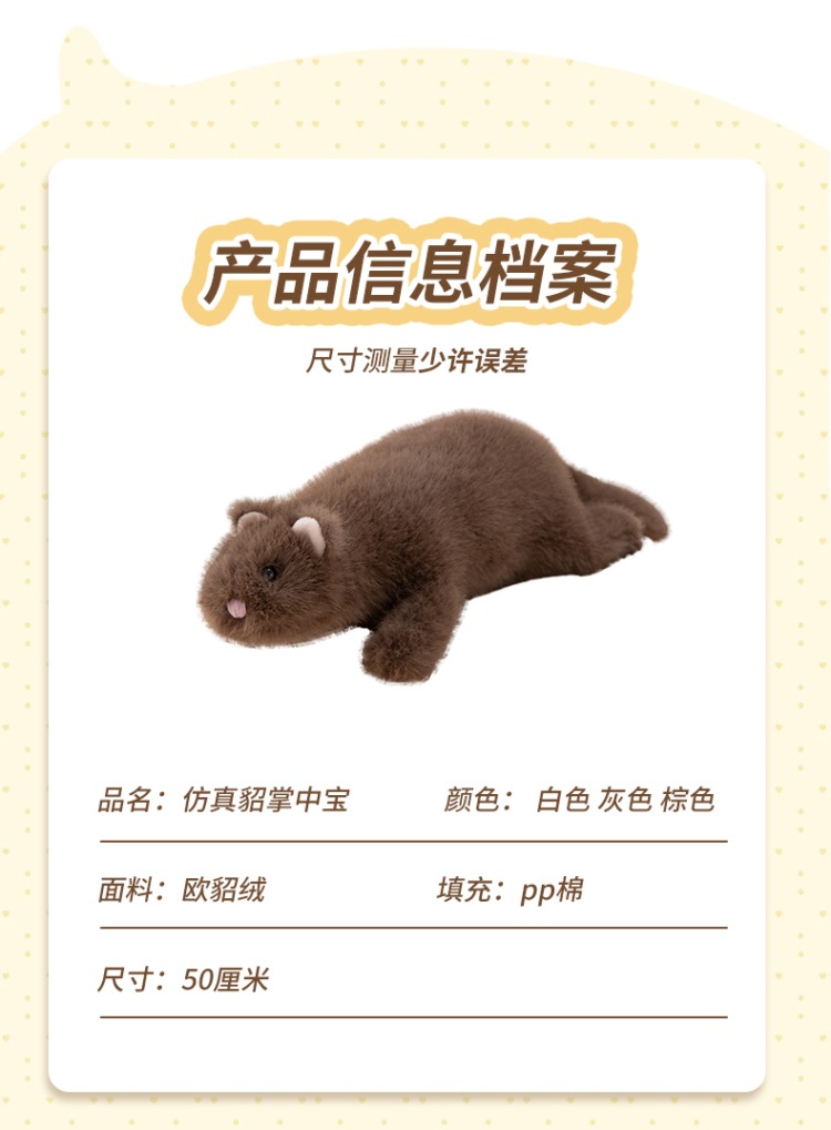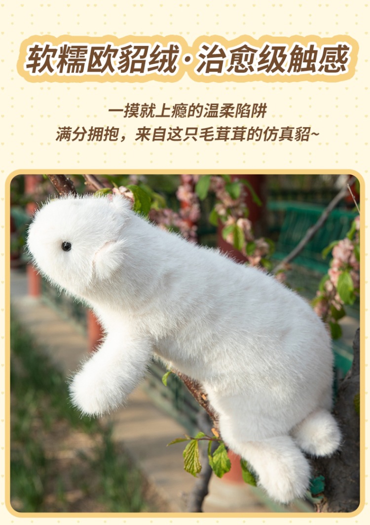 귀여운 시뮬레이션 흰 족제비 야자 보물 엎드린 인형 기계 교환 인형 핀치 음악 감압 교차 국경 장난감