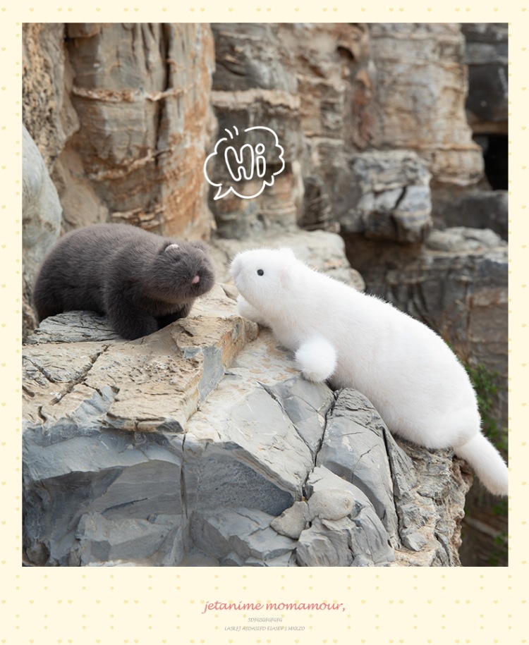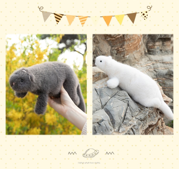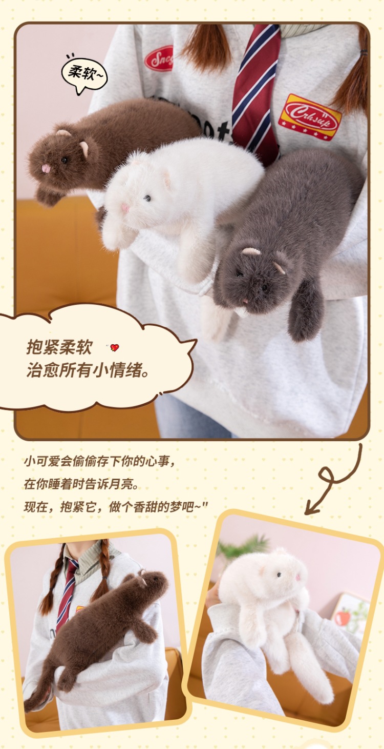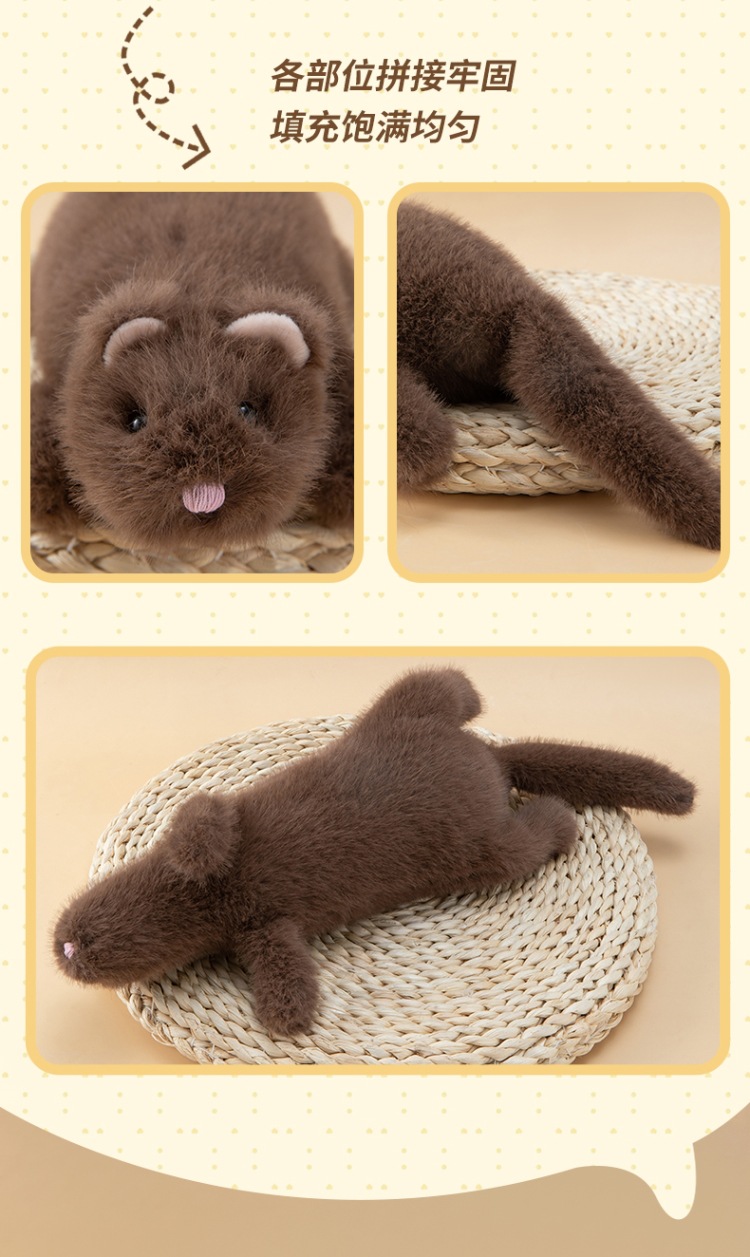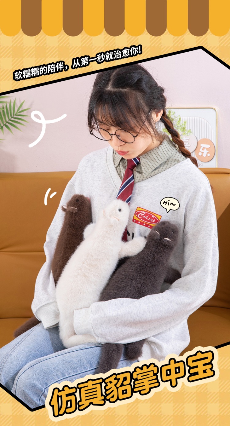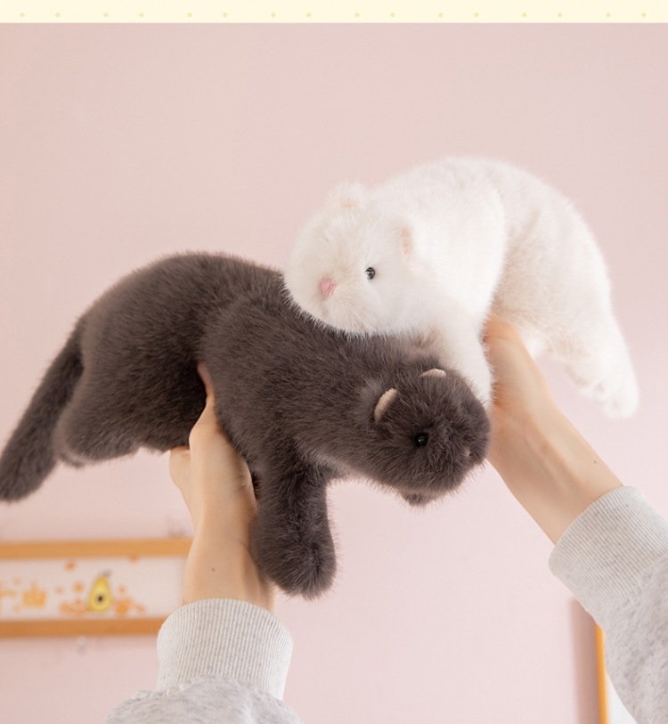 귀여운 시뮬레이션 흰 족제비 야자 보물 엎드린 인형 기계 교환 인형 핀치 음악 감압 교차 국경 장난감스토어 가기