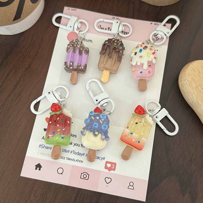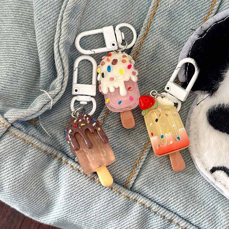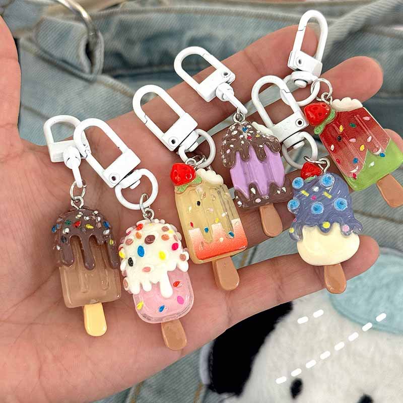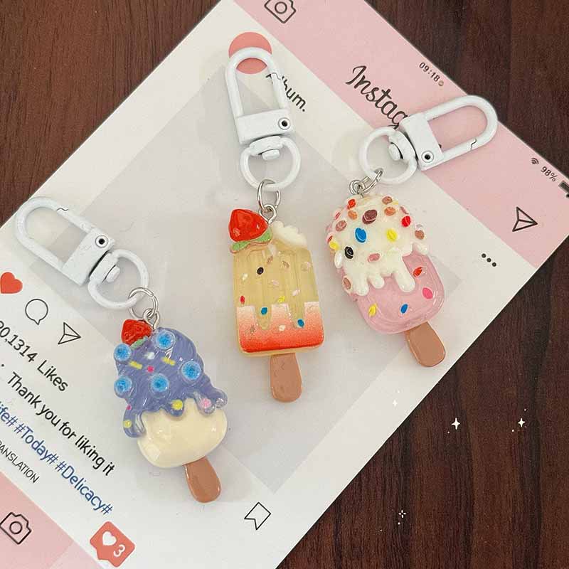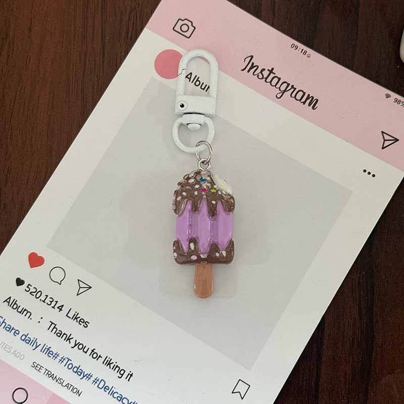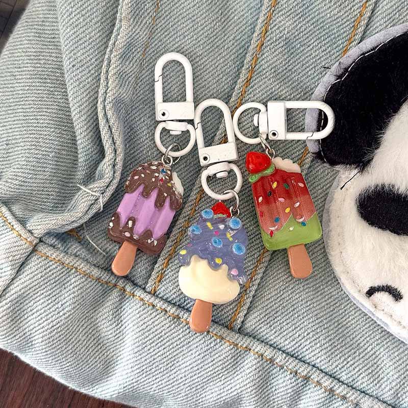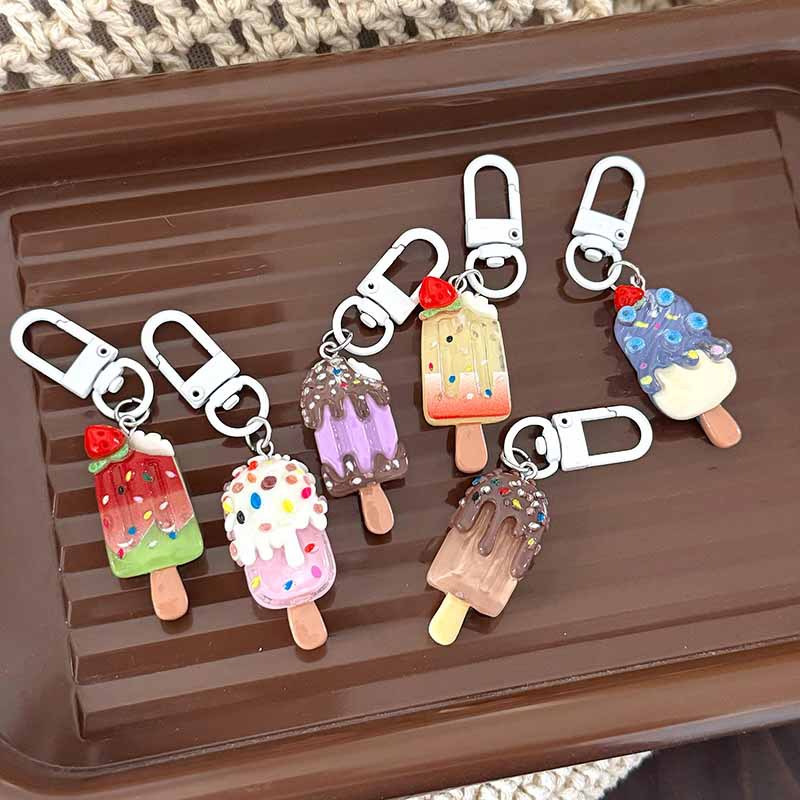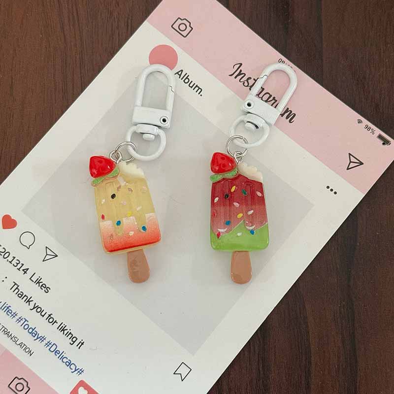시뮬레이션 딸기 초콜릿 아이스크림 아이스 캔디 키 체인 창조적 인 재미 펜던트 학생 가방 펜던트 여자 친구 선물