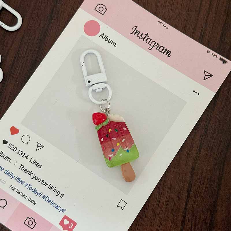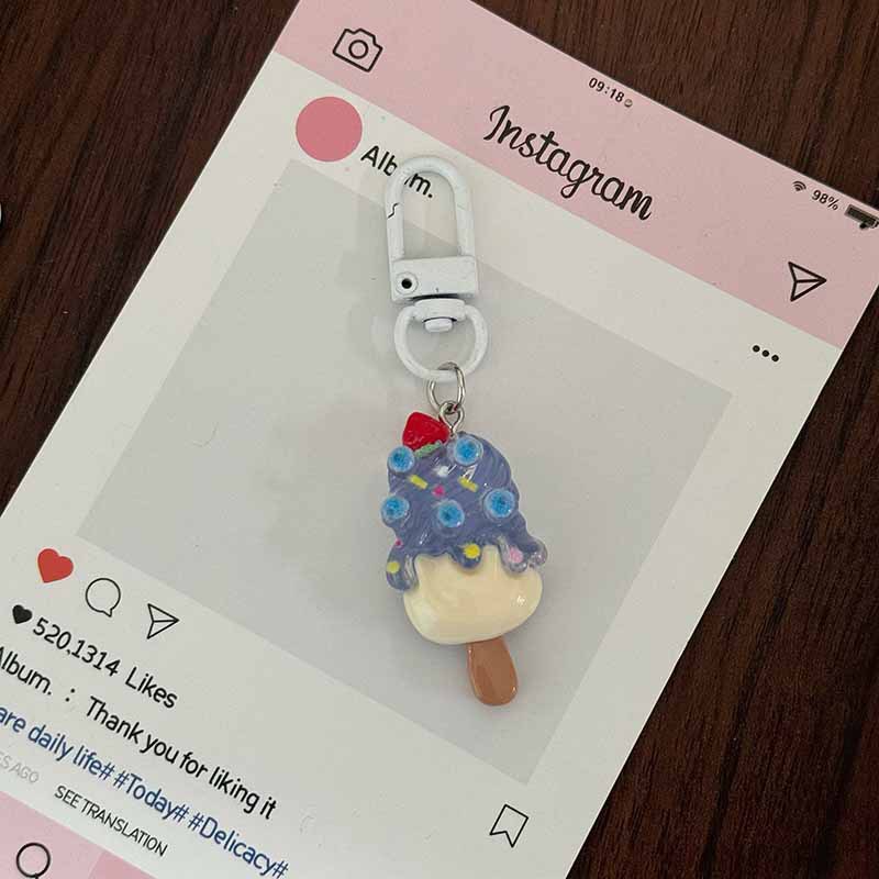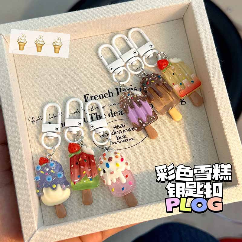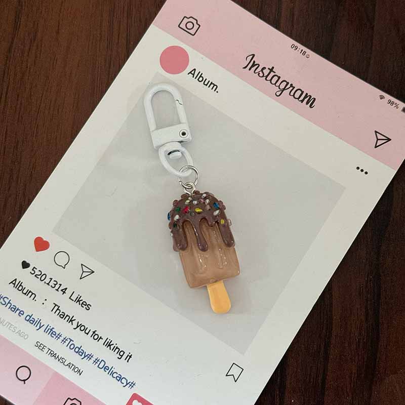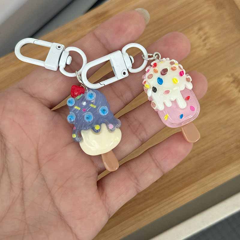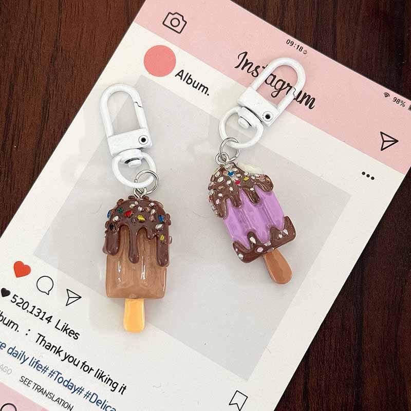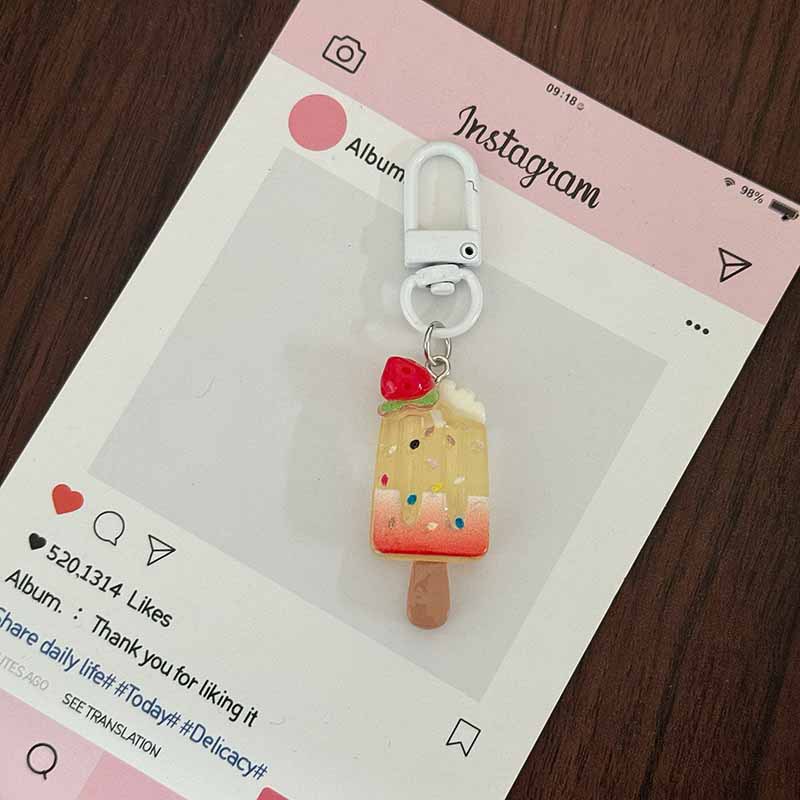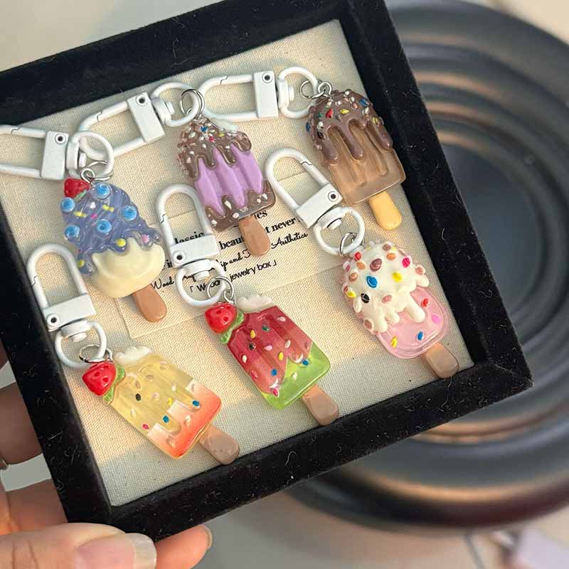 시뮬레이션 딸기 초콜릿 아이스크림 아이스 캔디 키 체인 창조적 인 재미 펜던트 학생 가방 펜던트 여자 친구 선물