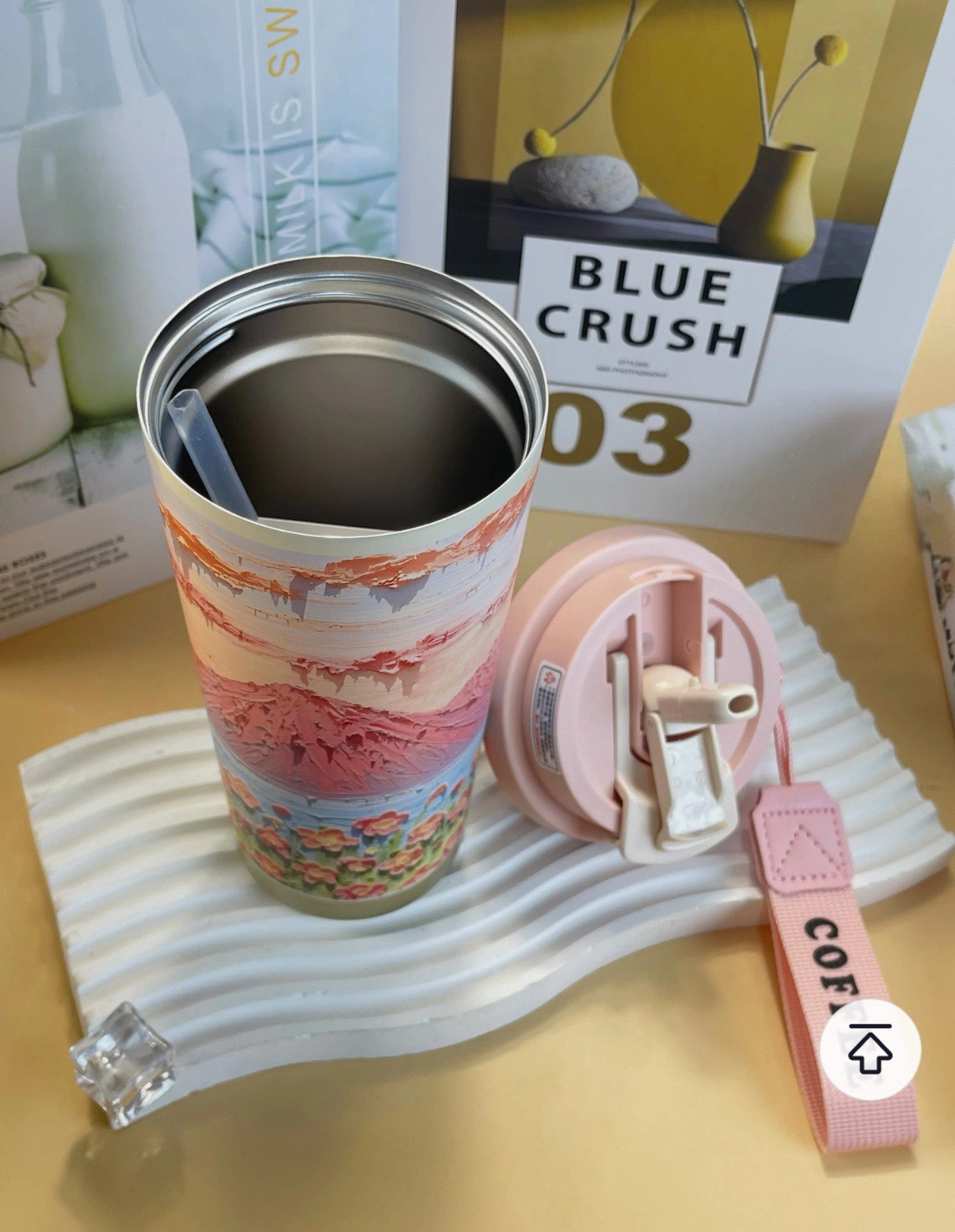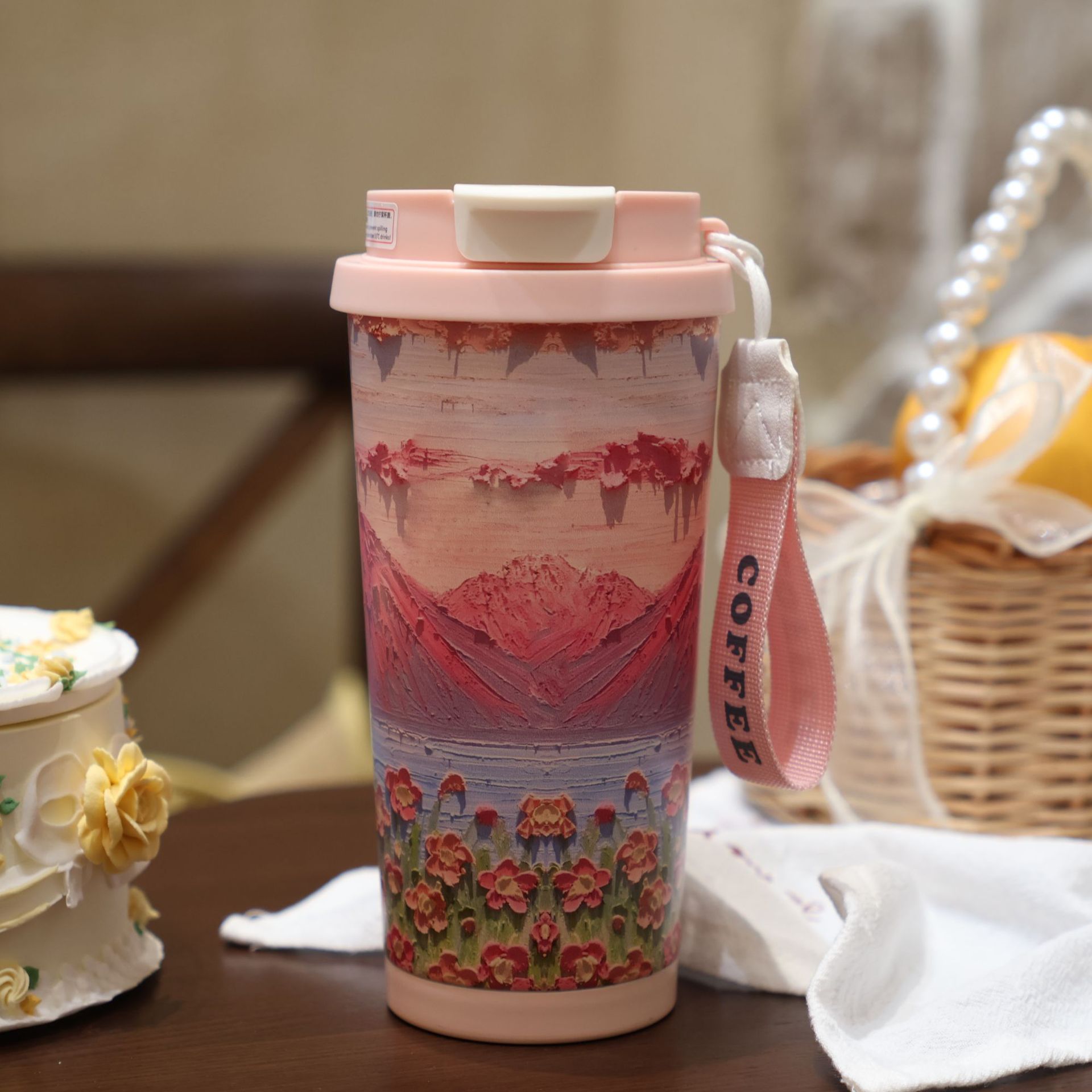 2025 새로운 고 가치 여성 316 스테인레스 스틸 보온병 컵 물 컵 대용량 빨대 학생 편리한 커피 컵스토어 가기