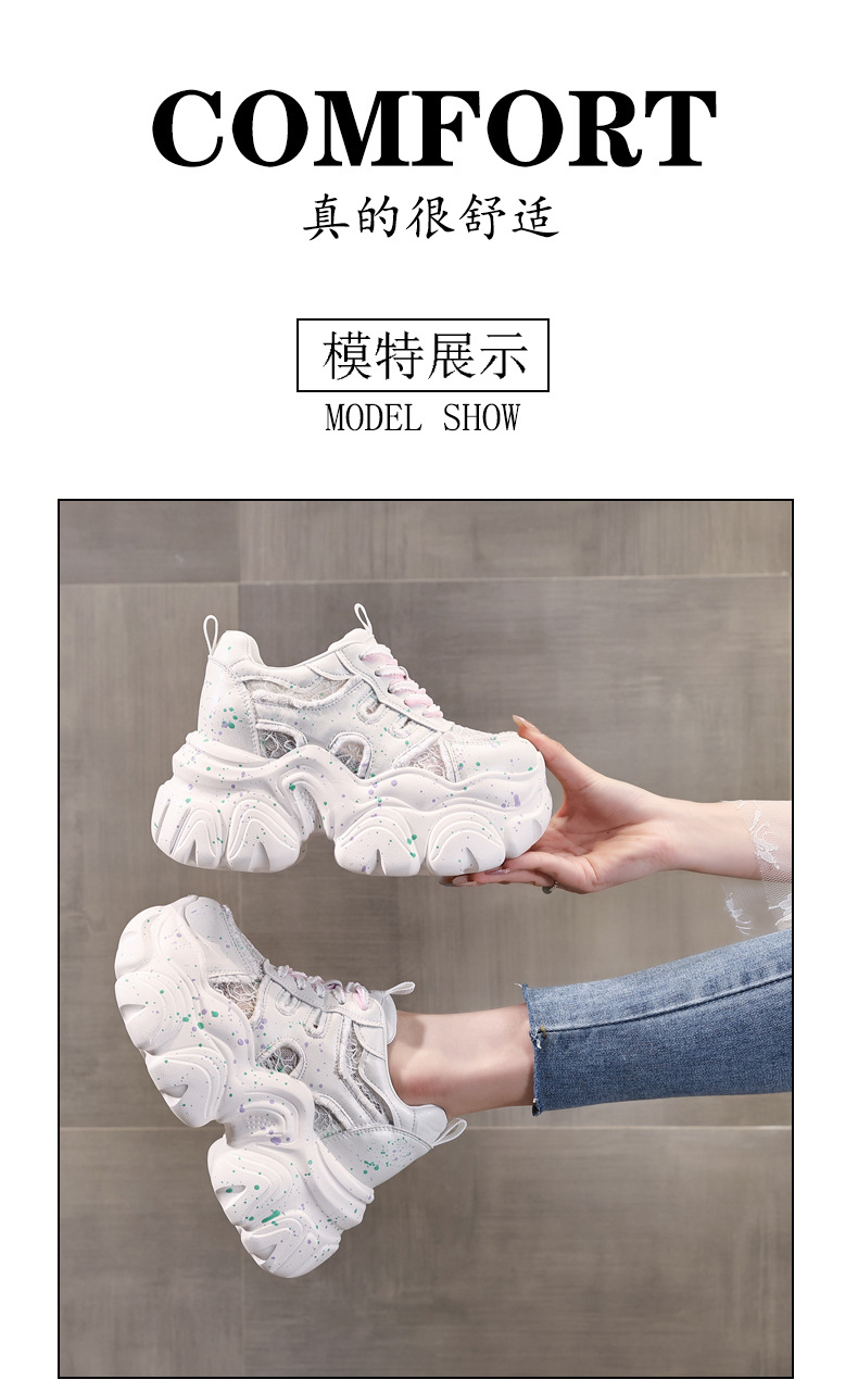HS569-66 두꺼운 밑창 높이 증가 메쉬 통기성 Puffin Torre 신발 여성의 2025 년 여름 새로운 스포츠 캐주얼 신발