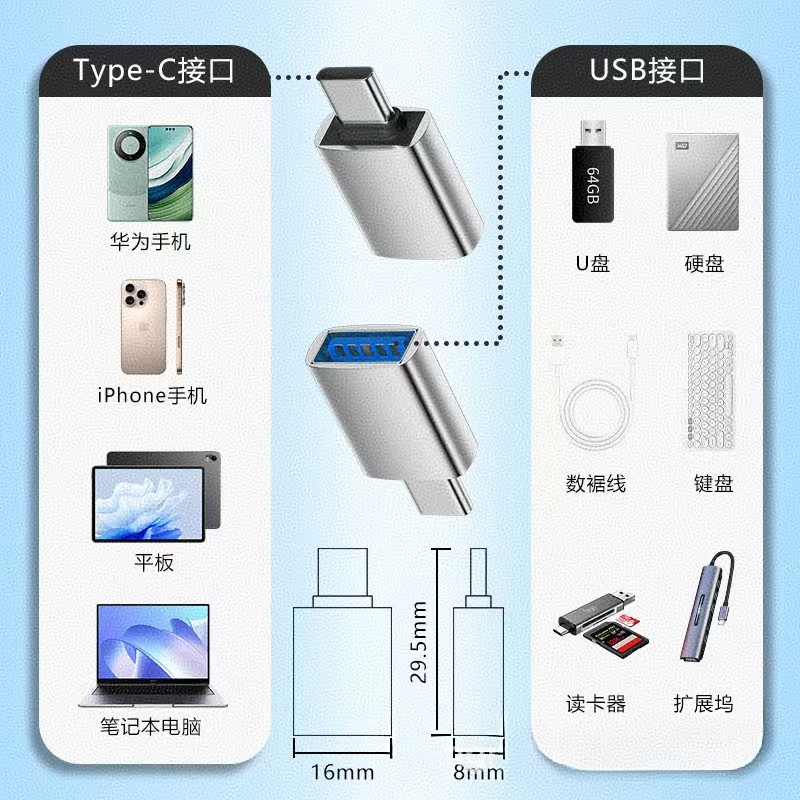 Apple iPad Huawei Samsung Google에 적합한 크로스보더 USB to typec 휴대폰 어댑터 otg 어댑터스토어 가기
