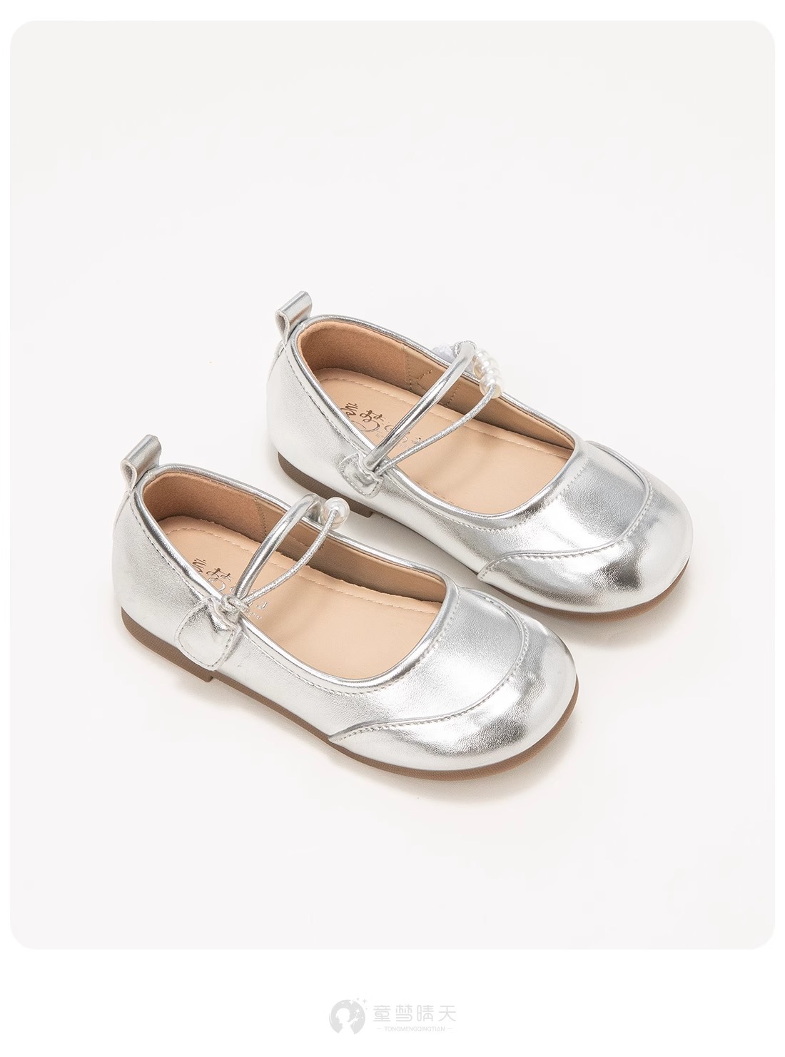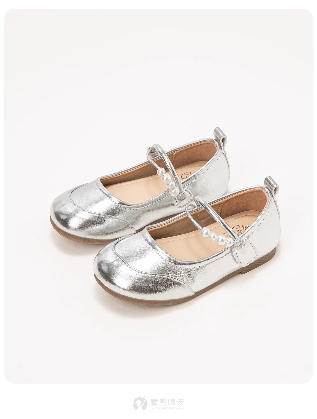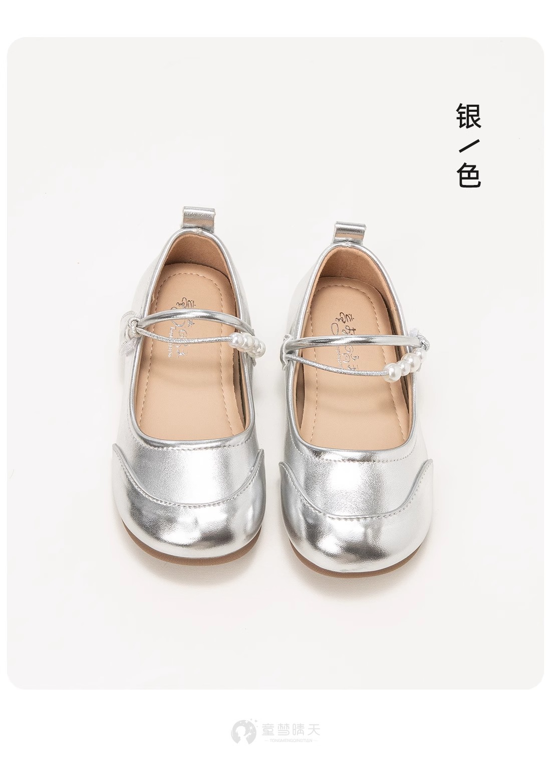 소녀 작은 가죽 신발 2025 여름 새로운 어린이 공주 신발 소프트 단독 소녀 실버 신발 여성 보물 신발 봄과 여름