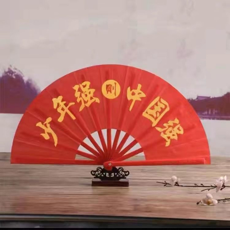 운동용 쿵푸 부채, 소리가 큰 빨간색 댄스 부채, 어린이 및 성인용 대나무 뼈 플라스틱 뼈 무술 부채, 배송