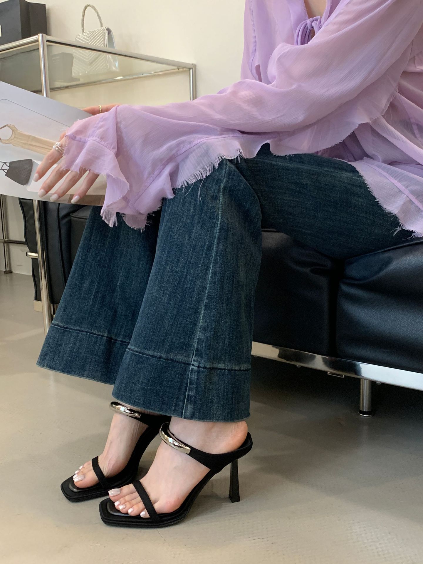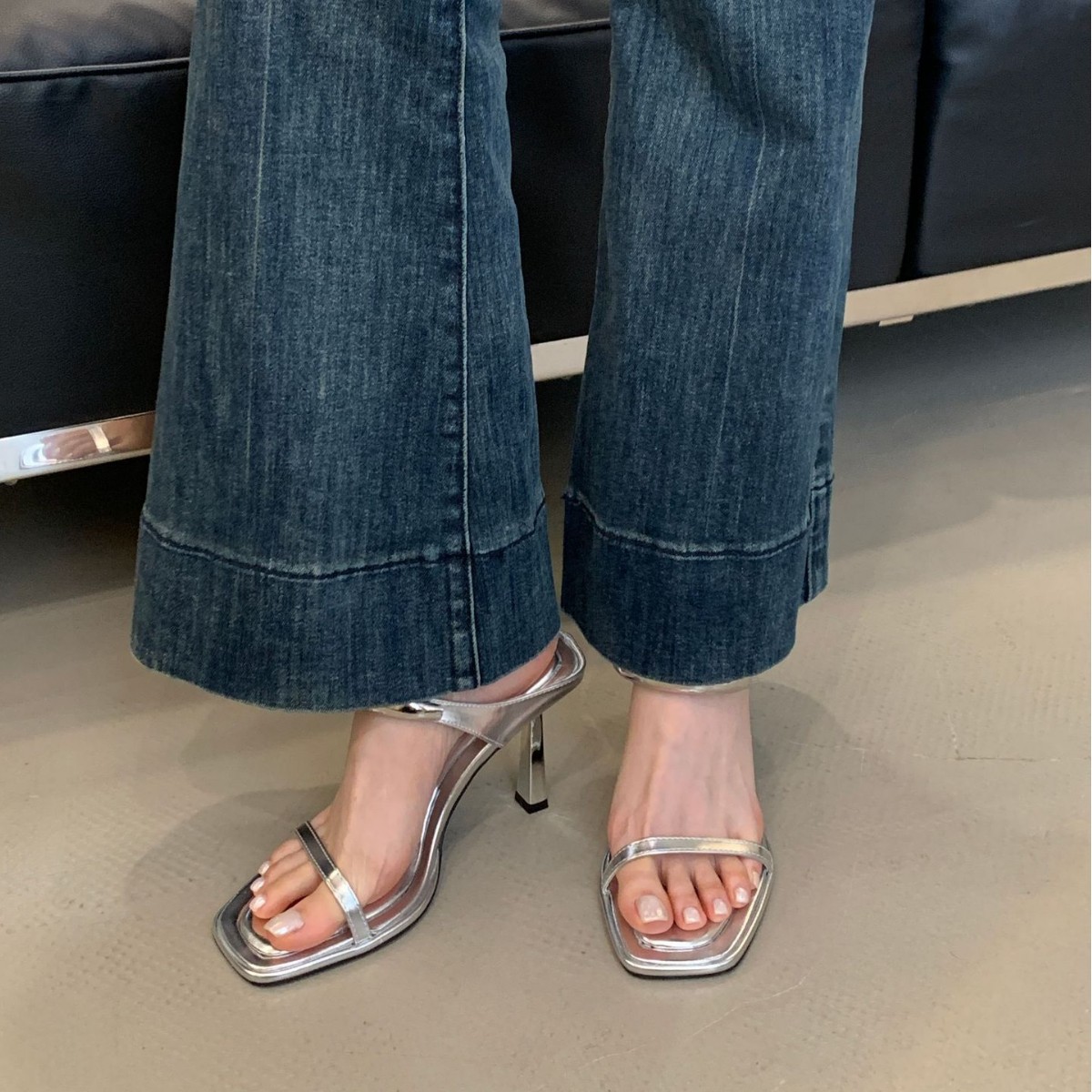 시원해요! 여성용 실버 원 스트랩 샌들 2025 여름 신상 스틸레토 힐스토어 가기