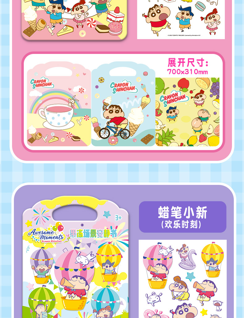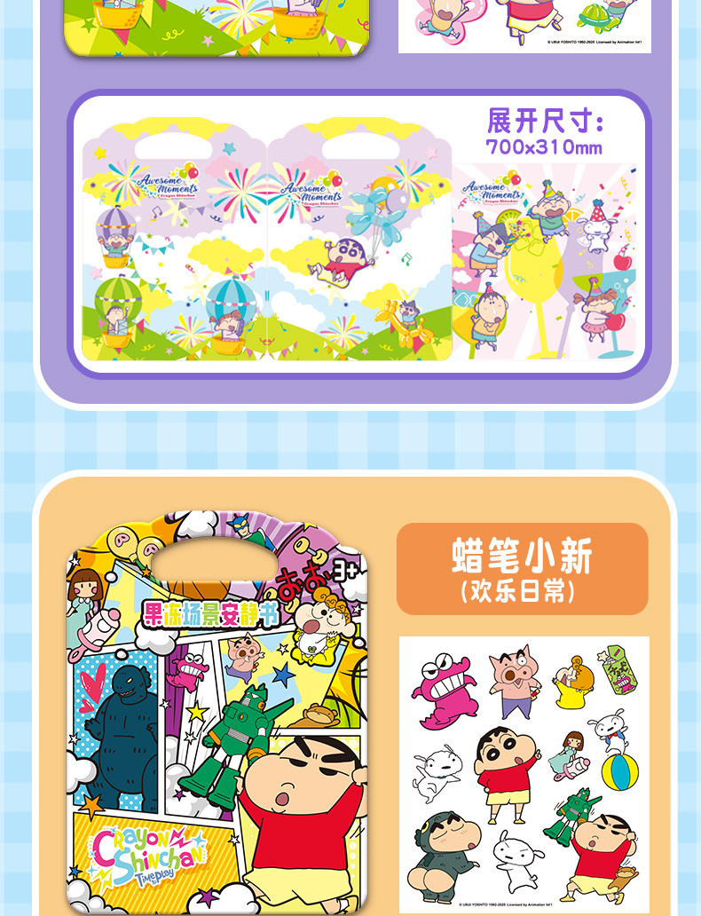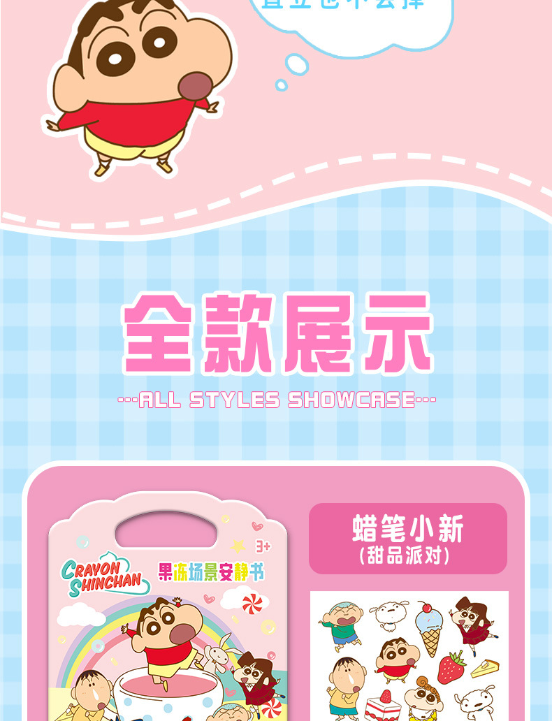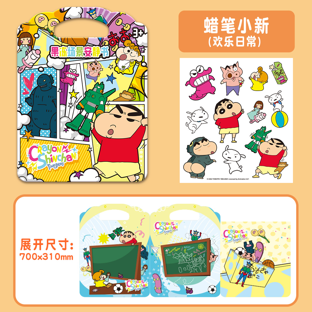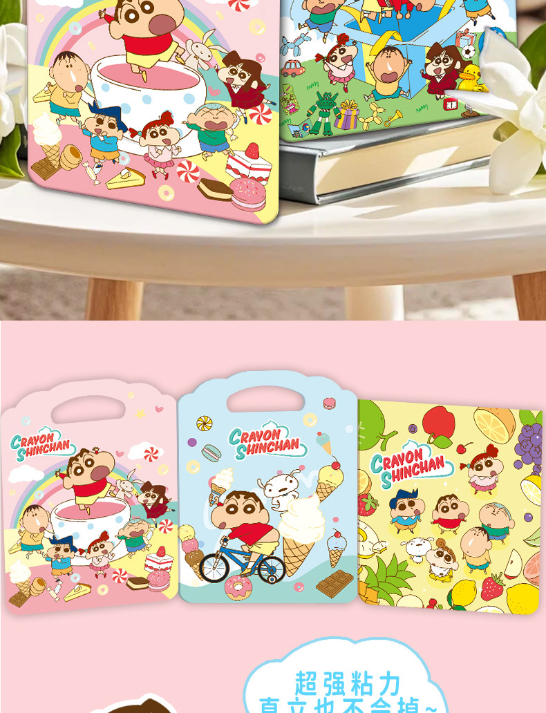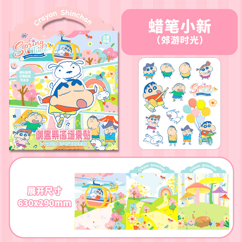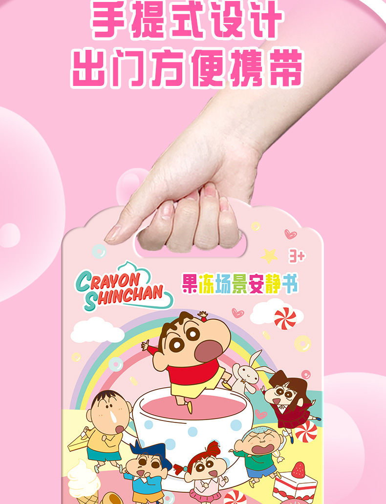 크레용 신짱 어린이 휴대용 젤리 스티커 책 반복 붙여 넣기 2-3 세 아기 스티커 조용한 책스토어 가기